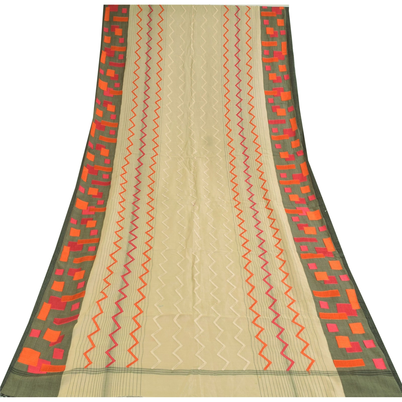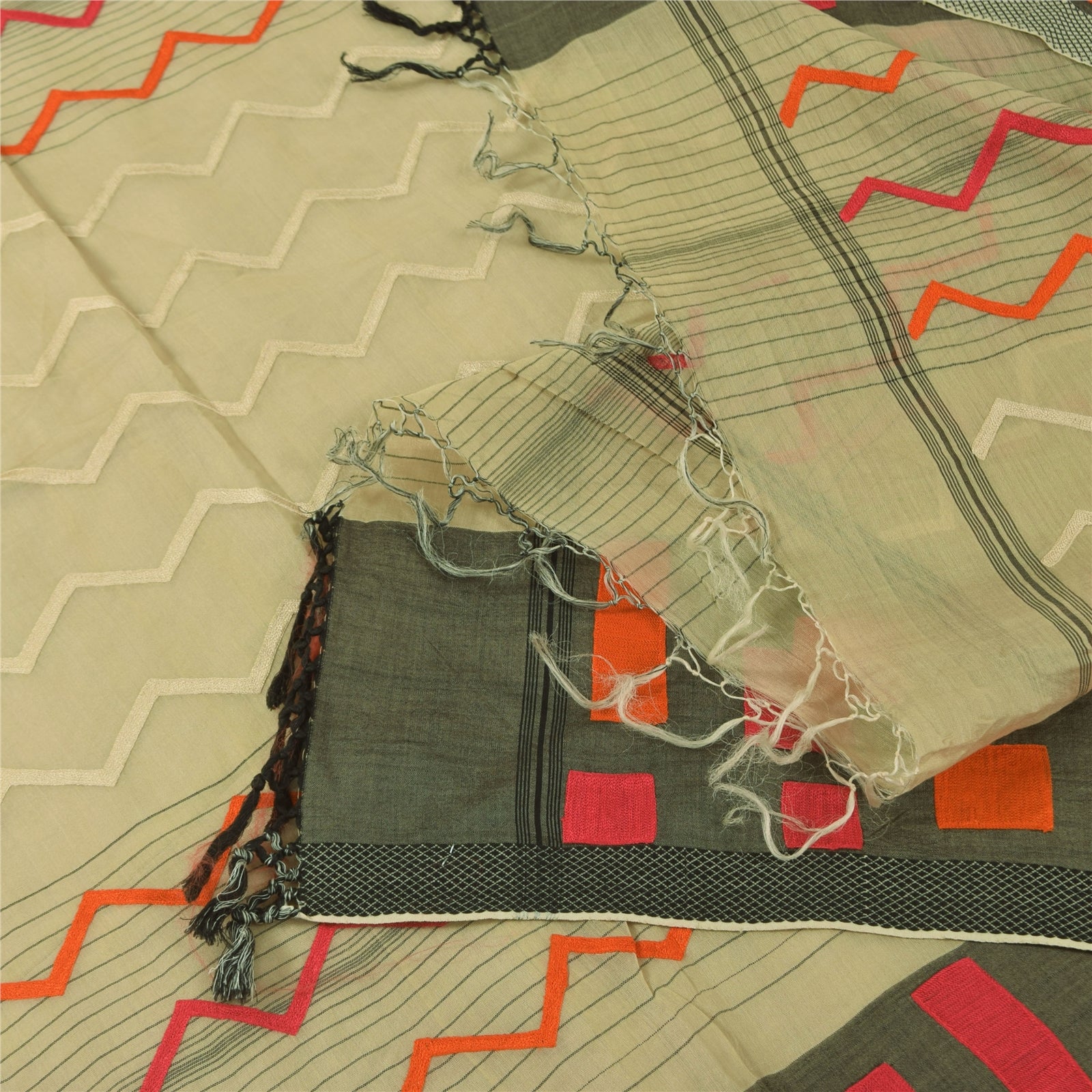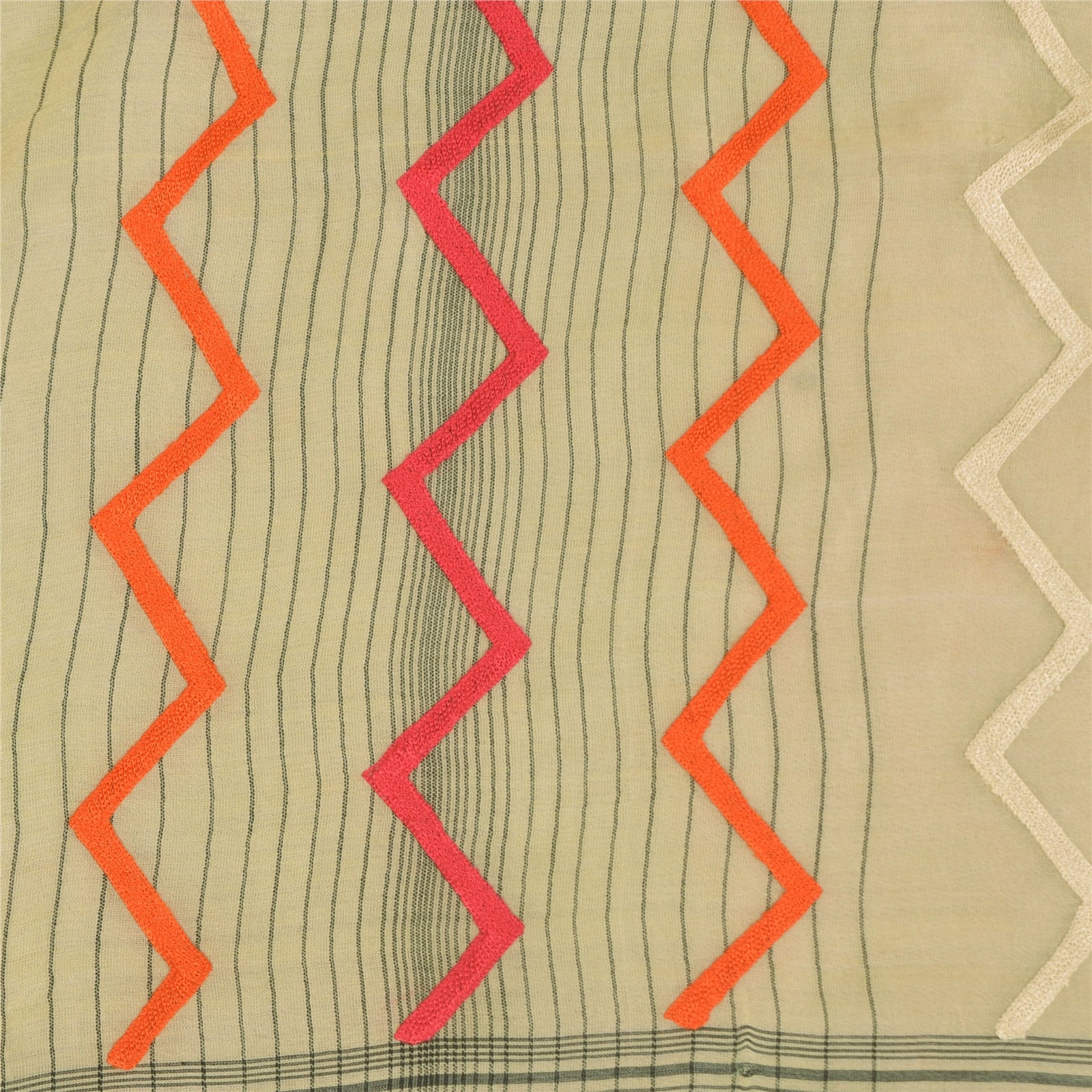 Sanskriti Vintage Ivory Dupatta Long Stole Cotton Silk Embroidered Wrap Veil