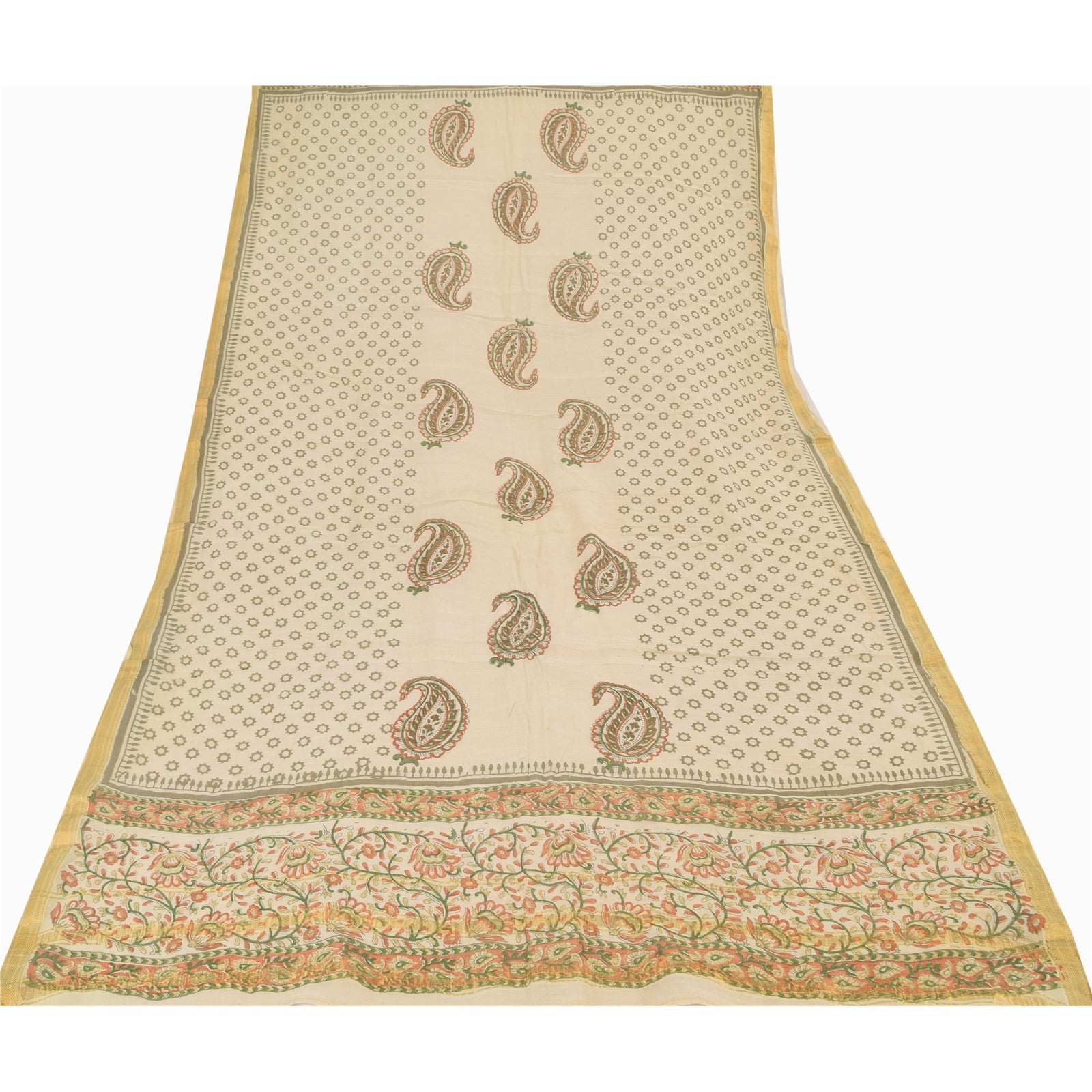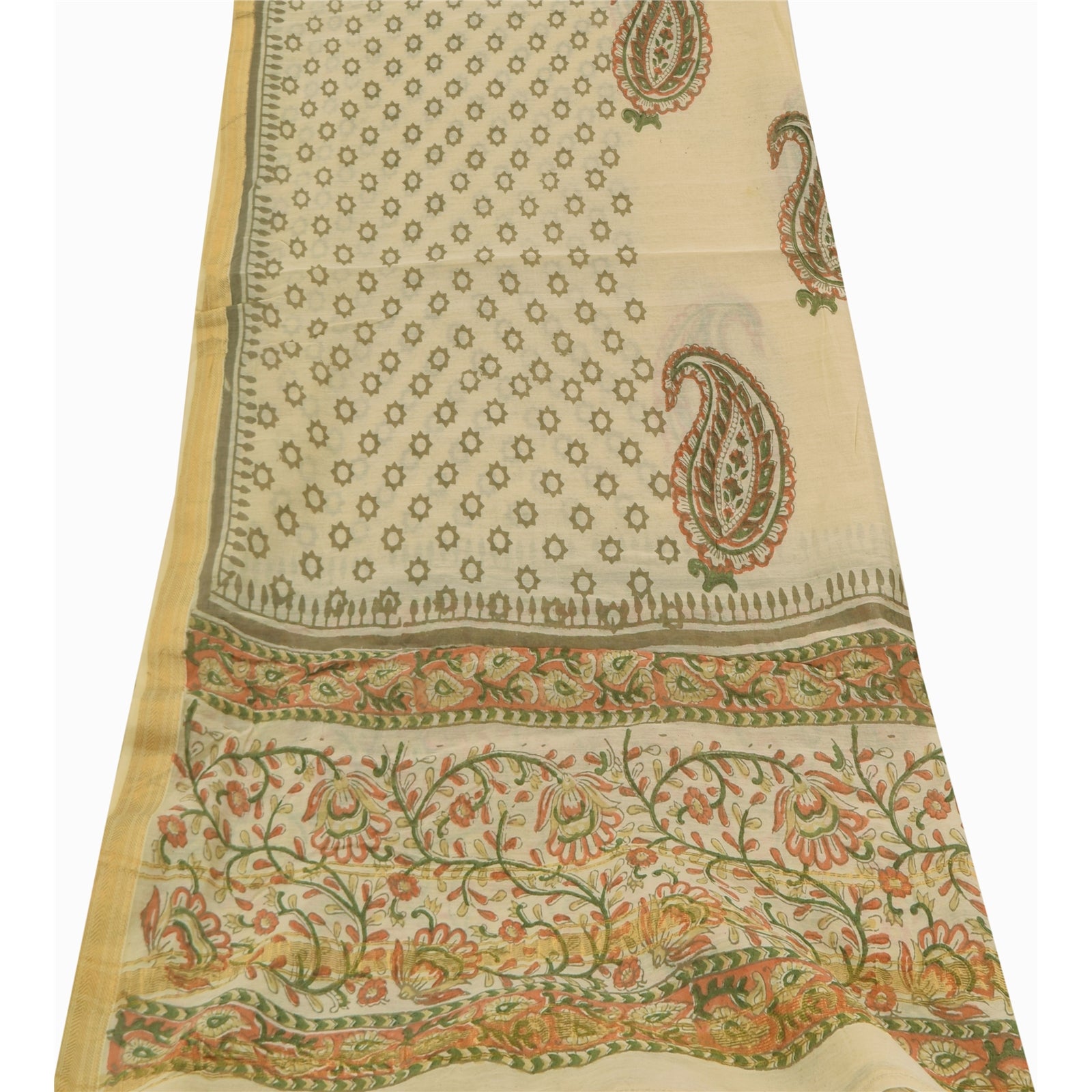 'THE ITEM COLOR OR SHADE MAY BE DARKER OR LIGHTER THAN THE PICTURE.' Beautiful ivory colored pure silk Printed long scarf/dupatta. Center portion of the dupatta has floral/paisley design with printed work. Border has floral/paisley design embellished with golden woven work & orange, green & brown color printed work is really enhancing beauty of the dupatta/stole. This dupatta/stole can be used for various crafting ideas too. Use it for dress designing, as a throw, as window dressing, upholstery, table linen and much more. Let your creative juices flow. Shipping note: International buyers please note: Import duties, taxes, and charges are not included in the item price or postage cost. These charges are the buyer's responsibility. Please check with your country's customs office to determine what these additional costs will be prior to bidding or buying. Buyer will pay custom duty/tax. It is calculated and charged differently by every country. As a seller I do not have any control over it. VAT or sales tax is calculated by the platform at the time of checkout. Customs charge is payable at the time of delivery.' SKU: DC-55205