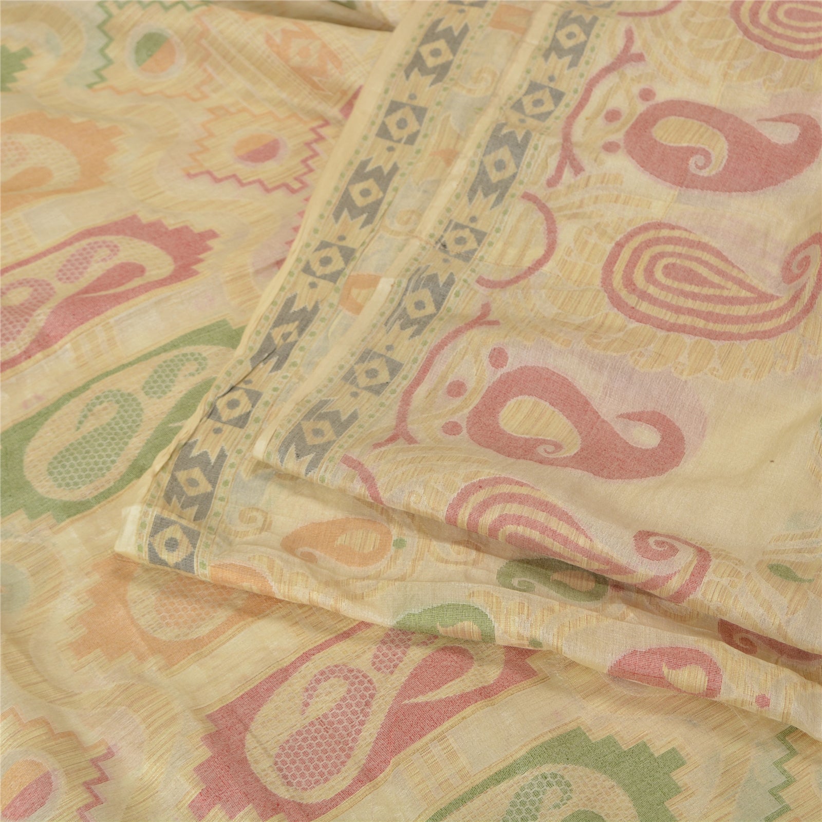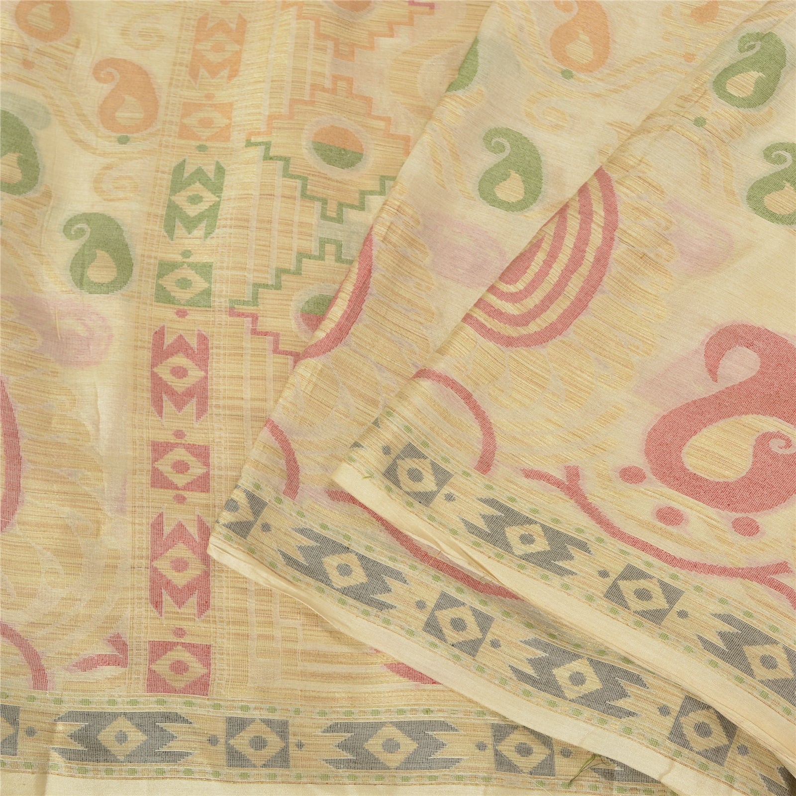 Sanskriti Vintage Ivory Indian Sarees 100% Pure Silk Woven Zari Sari 5 YD Sustainable Fabric