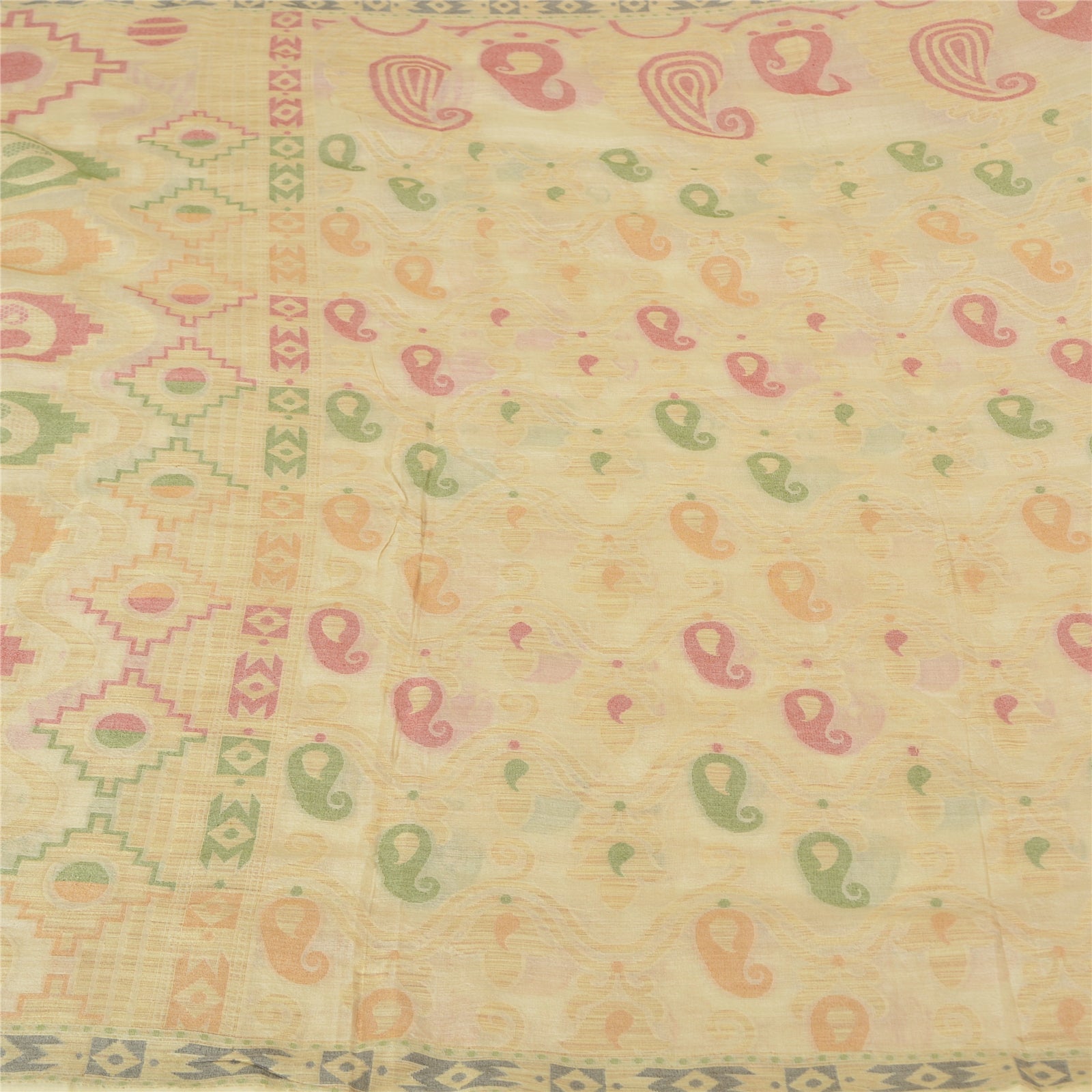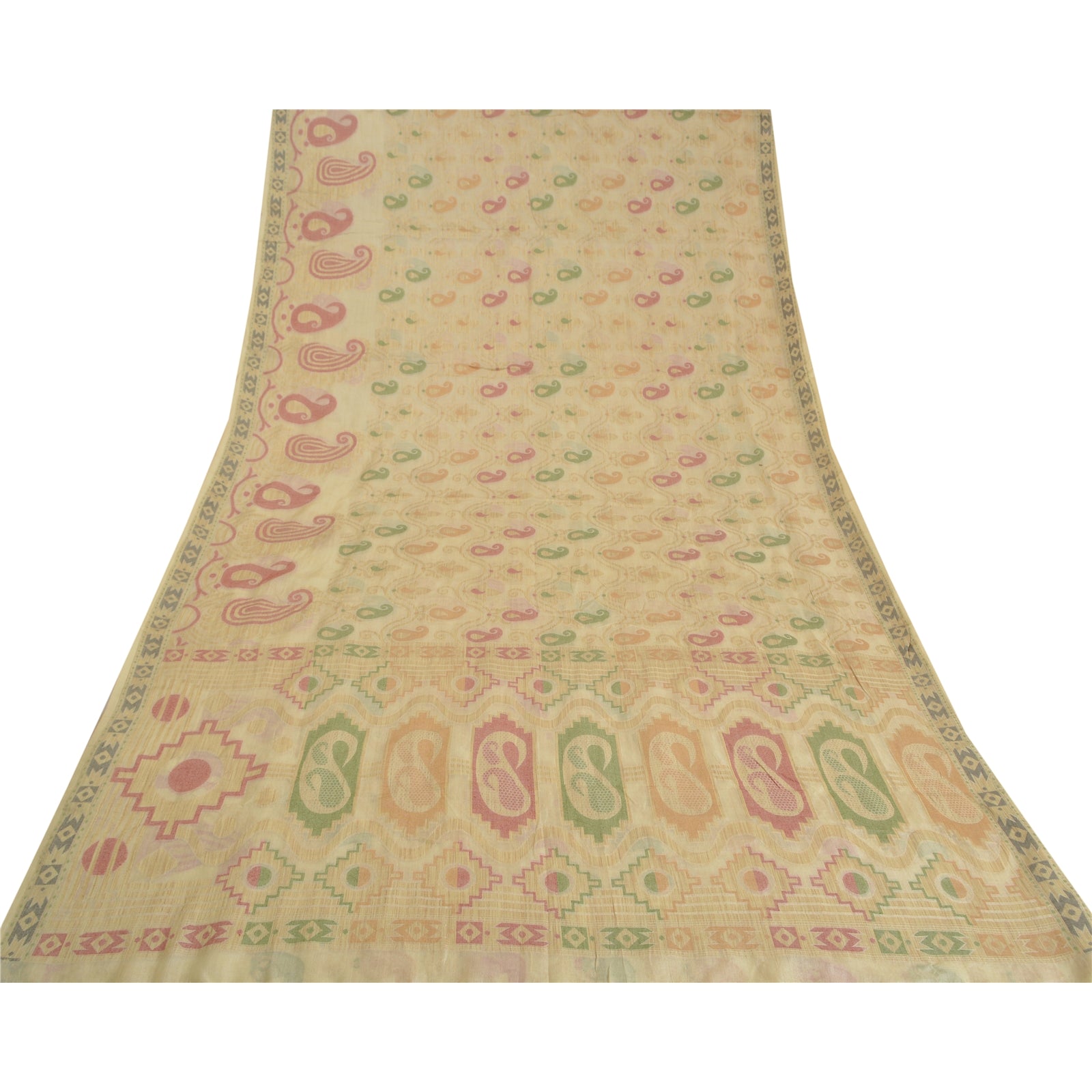 'THE ITEM COLOR OR SHADE MAY BE DARKER OR LIGHTER THAN THE PICTURE.' Beautiful ivory colored pure silk woven sari/Sustainable Fabric. Pallu & border has multi color woven thread work with geometric design. The center of the saree has similar woven pattern. This saree can be used for various crafting ideas too. Use it for dress designing, as a throw, as window dressing, upholstery, table linen and much more. Let your creative juices flow. 'International buyers please note: Import duties, taxes, and charges are not included in the item price or postage cost. These charges are the buyer's responsibility. Please check with your country's customs office to determine what these additional costs will be prior to bidding or buying. Buyer will pay custom duty/tax. It is calculated and charged differently by every country. As a seller I do not have any control over it. VAT or sales tax is calculated by the platform at the time of checkout. Customs charge is payable at the time of delivery.'