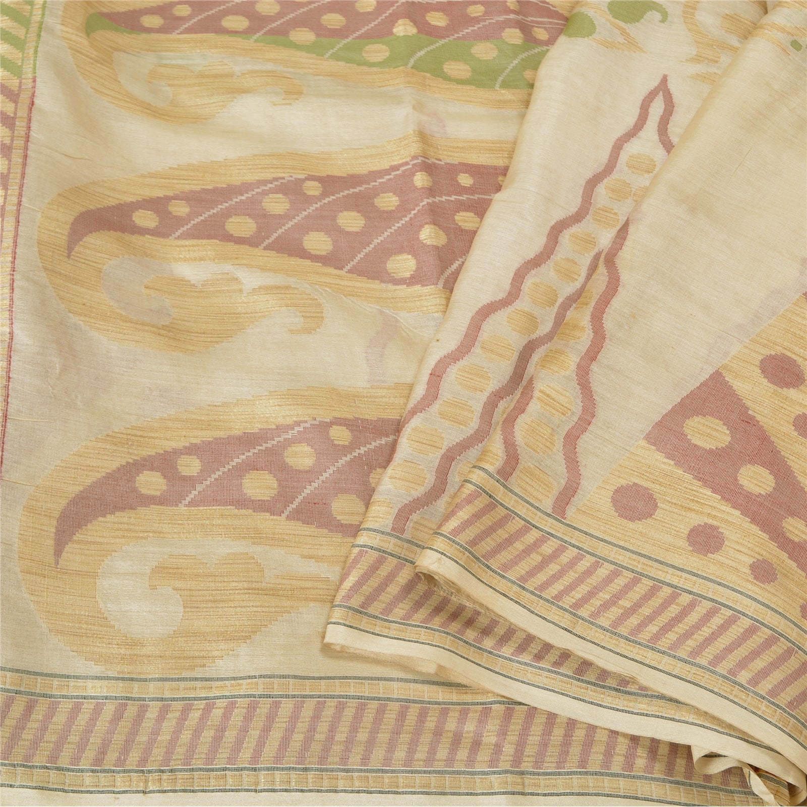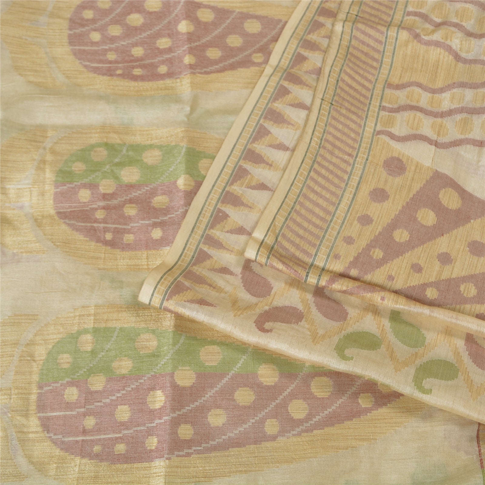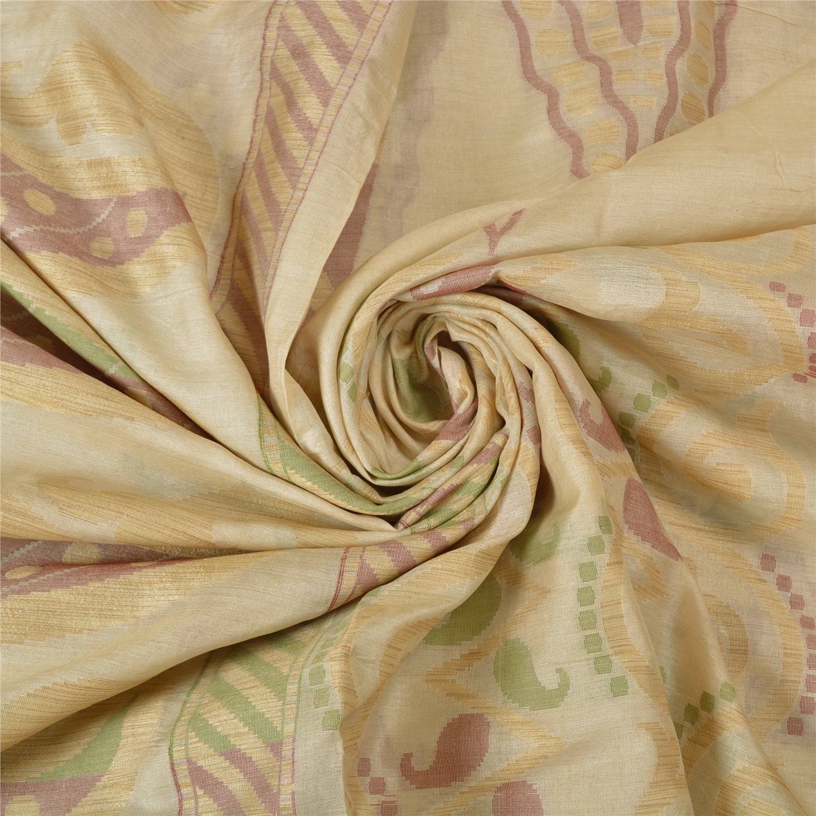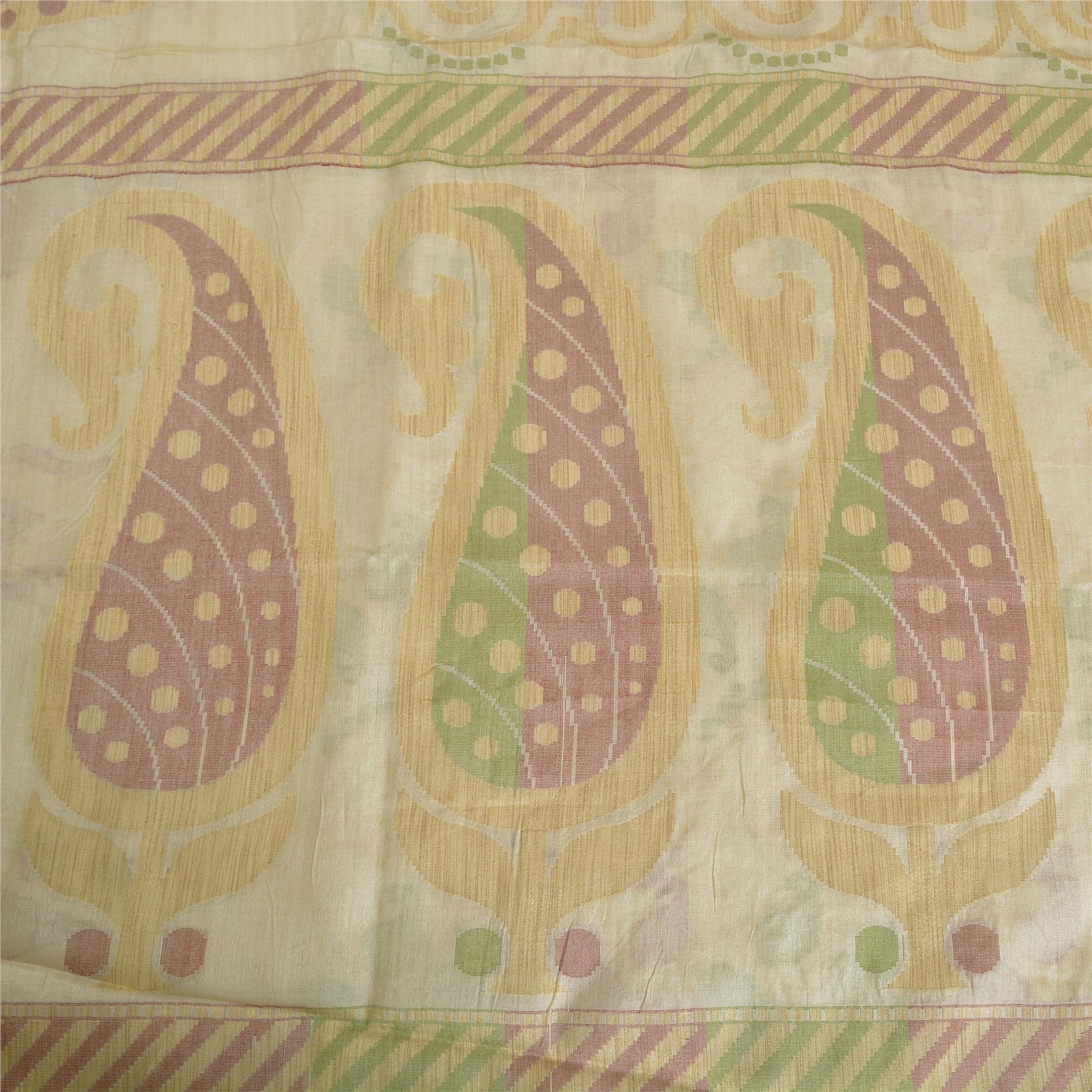 Sanskriti Vintage Ivory Indian Sarees Blend Silk Woven Sari Craft 5 Yard Sustainable Fabric