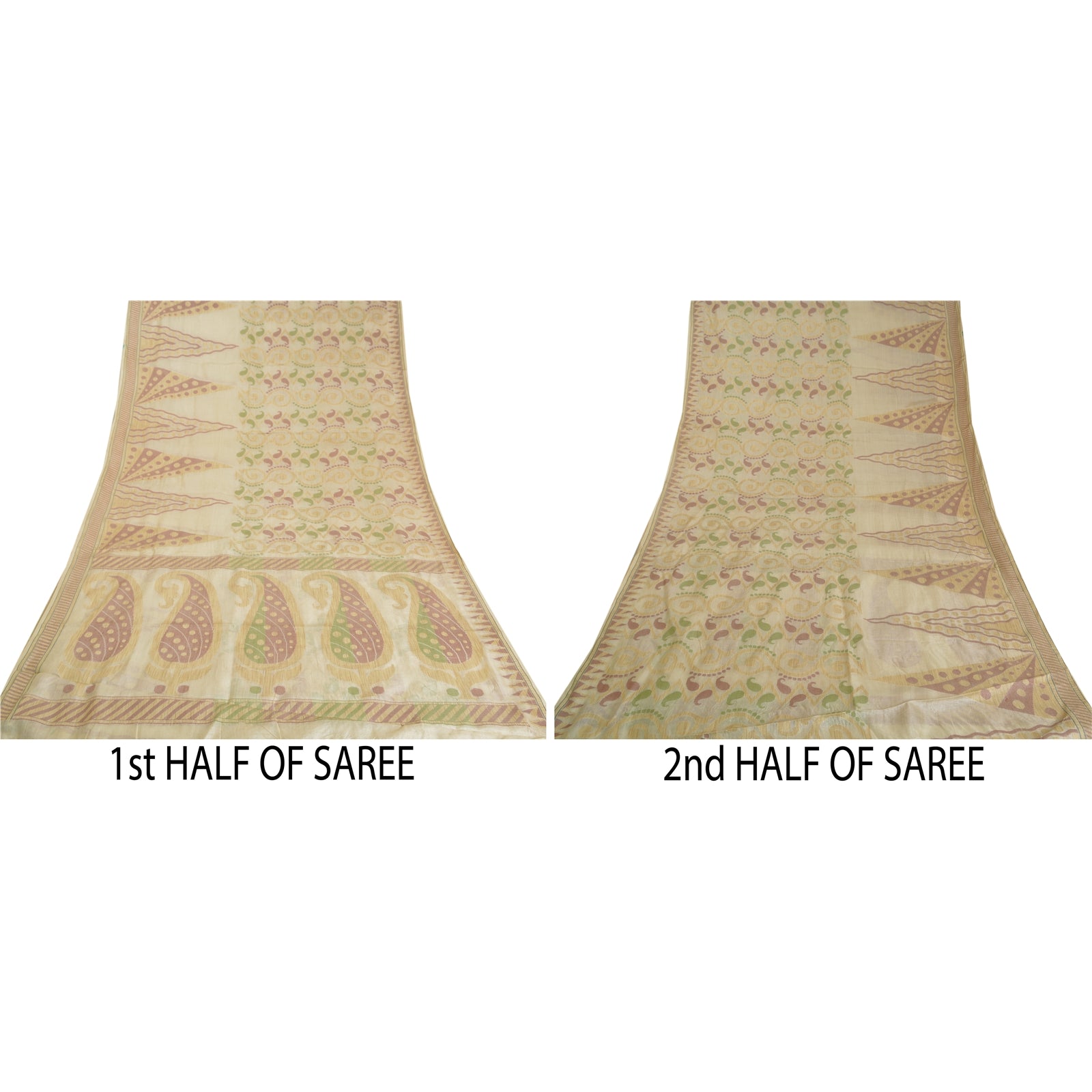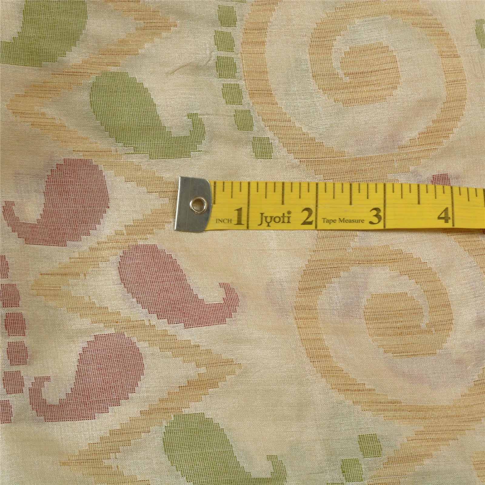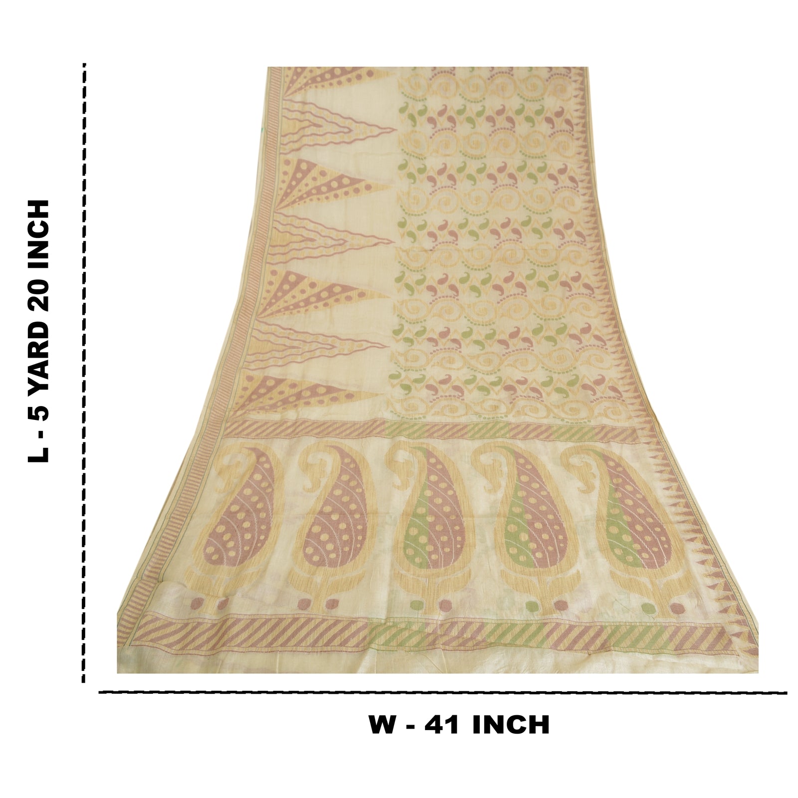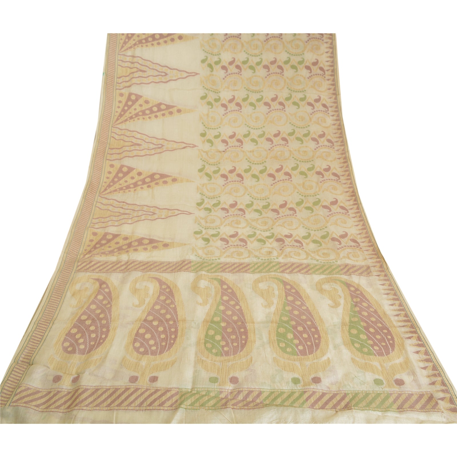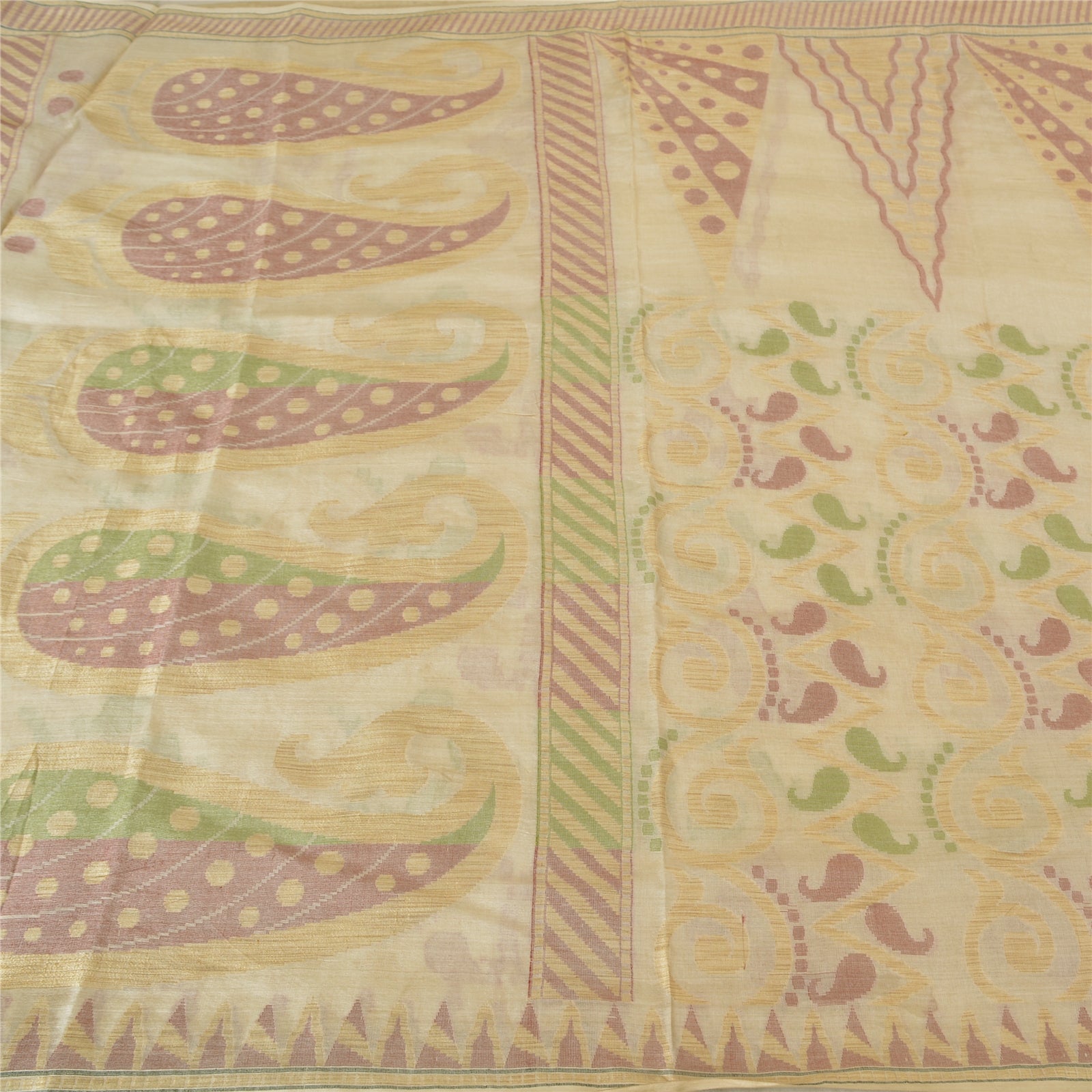 Sanskriti Vintage Ivory Indian Sarees Blend Silk Woven Sari Craft 5 Yard Sustainable Fabric