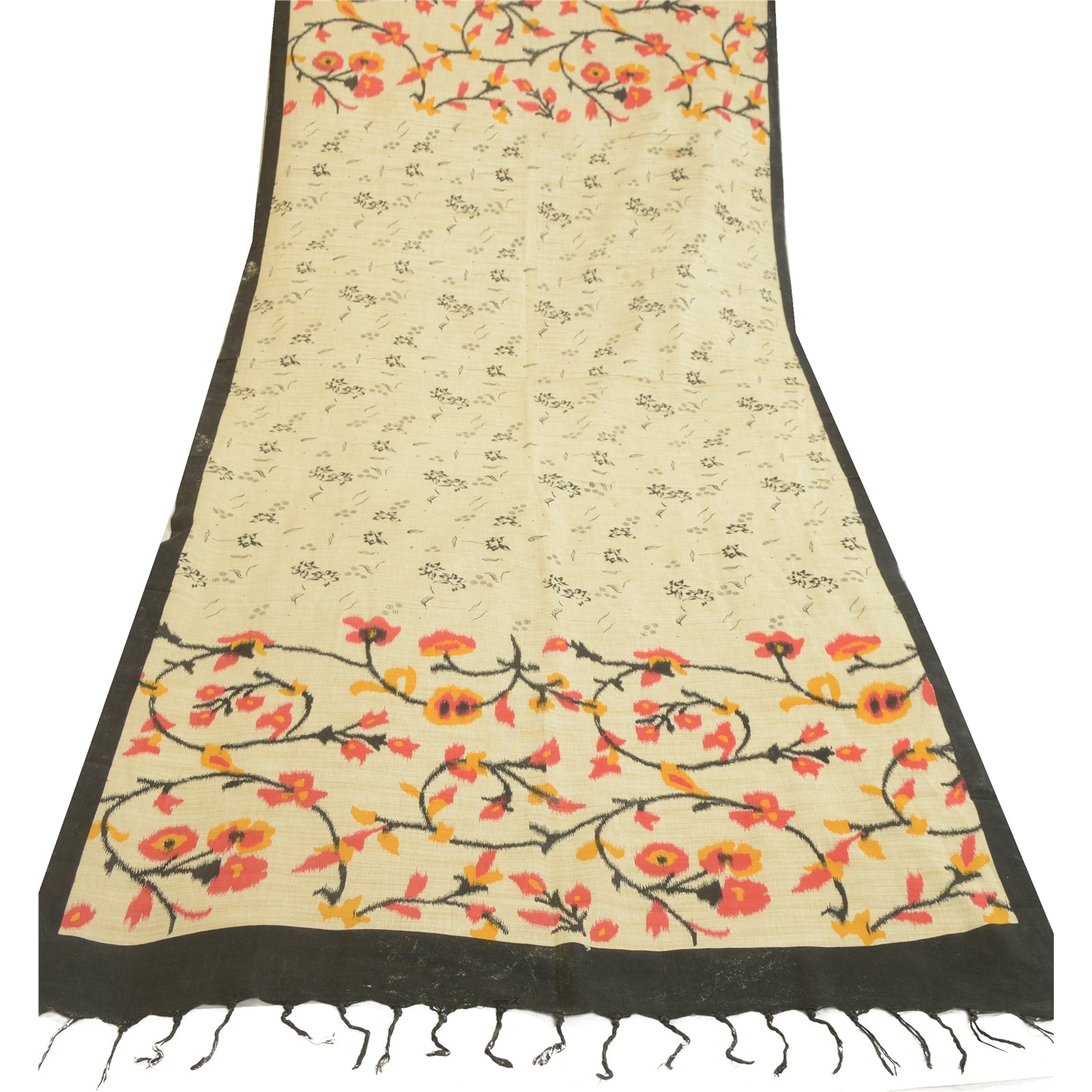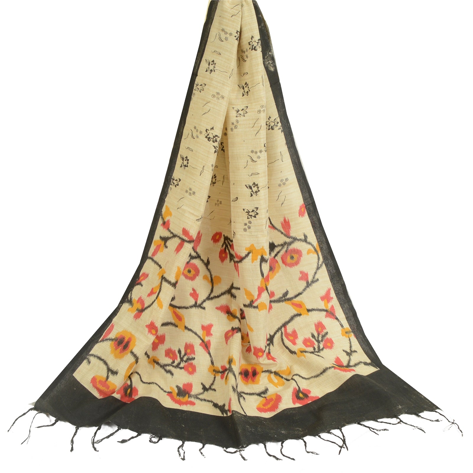Sanskriti Vintage Ivory Long Dupatta Stole 100% Pure Cotton Printed Wrap Scarves