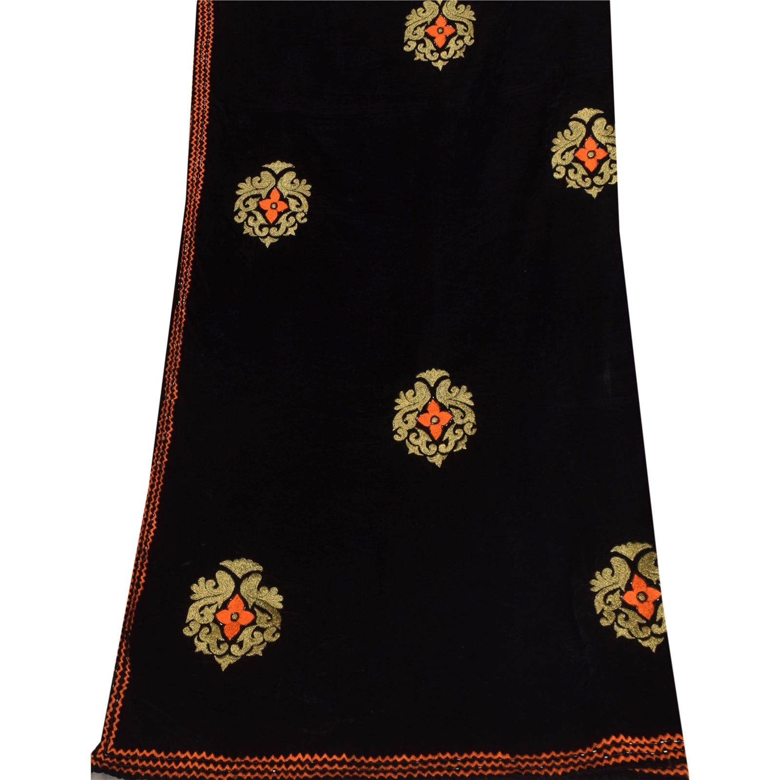 'THE ITEM COLOR OR SHADE MAY BE DARKER OR LIGHTER THAN THE PICTURE.' Beautiful Black colored velvet Hand Embroidered long scarf/dupatta. Center portion of the dupatta has floral design with zari work. Border has floral design embellished with golden zari work, black color glass beads work & orange thread work is really enhancing beauty of the dupatta/stole. This dupatta/stole can be used for various crafting ideas too. Use it for dress designing, as a throw, as window dressing, upholstery, table linen and much more. Let your creative juices flow. Shipping note: International buyers please note: Import duties, taxes, and charges are not included in the item price or postage cost. These charges are the buyer's responsibility. Please check with your country's customs office to determine what these additional costs will be prior to bidding or buying. Buyer will pay custom duty/tax. It is calculated and charged differently by every country. As a seller I do not have any control over it. VAT or sales tax is calculated by the platform at the time of checkout. Customs charge is payable at the time of delivery.' SKU: dc-55124