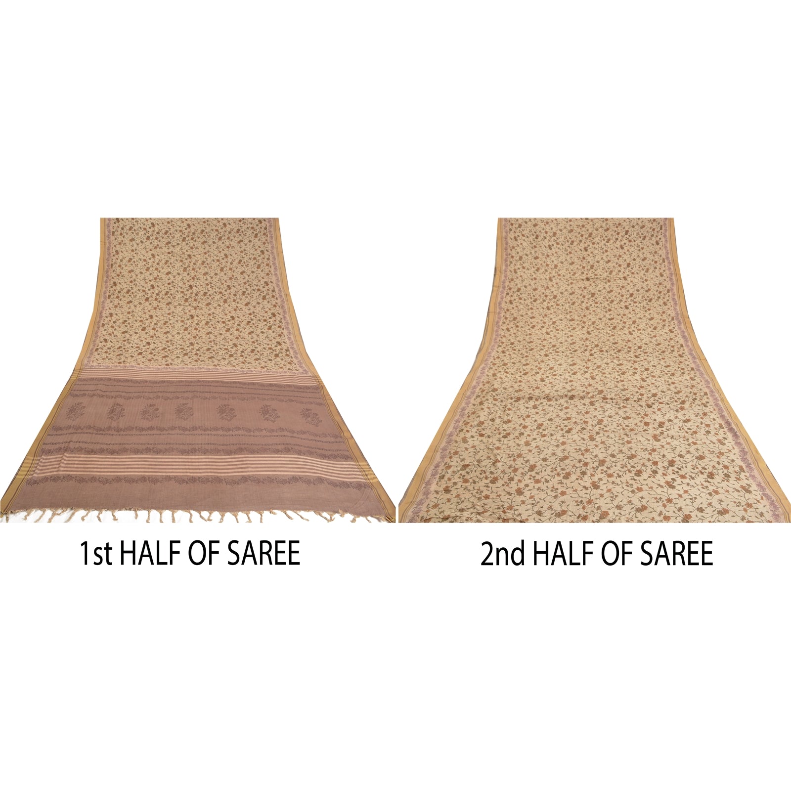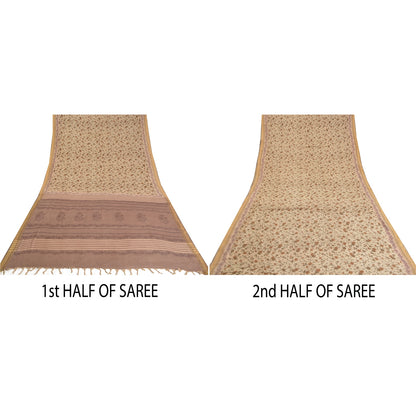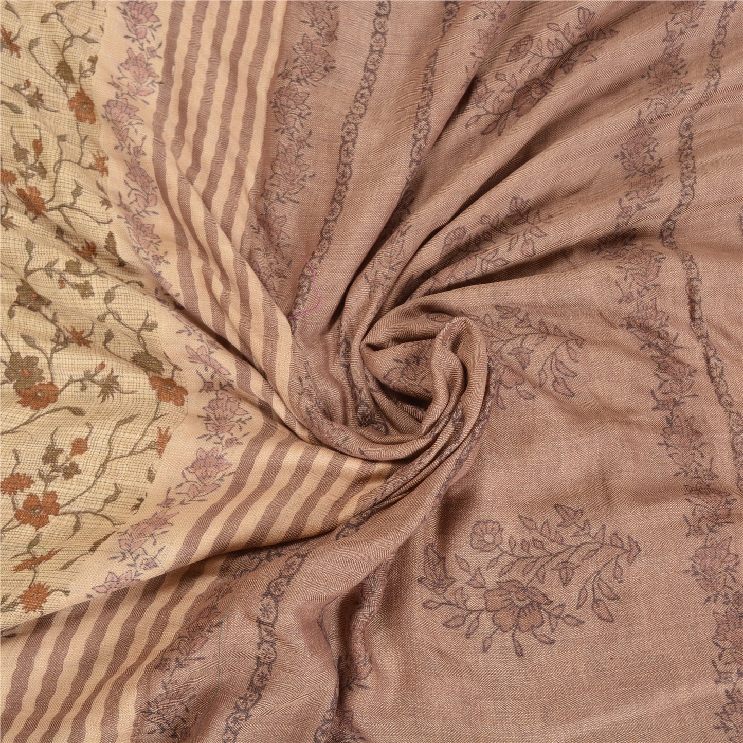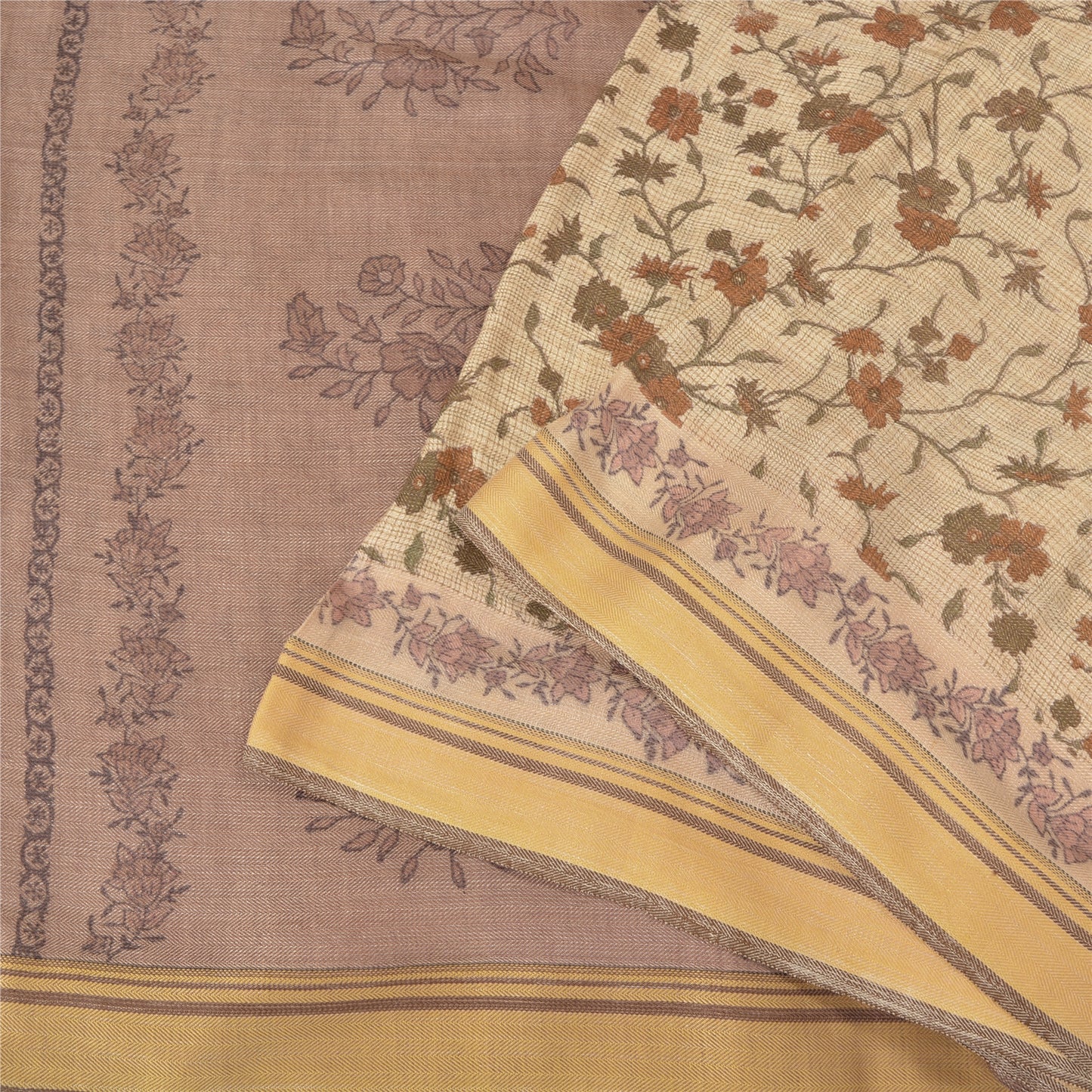 Sanskriti Vintage Ivory/Peach Sarees 100% Pure Woolen Sustainable Fabric Printed Woven Sari