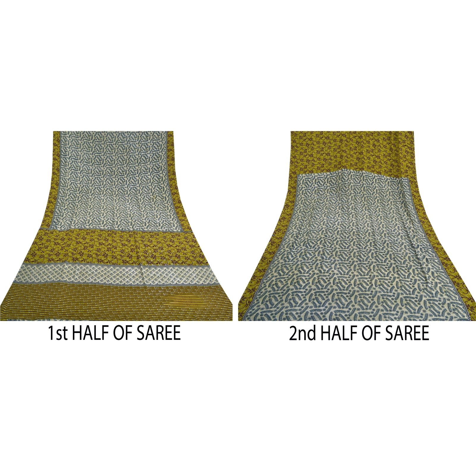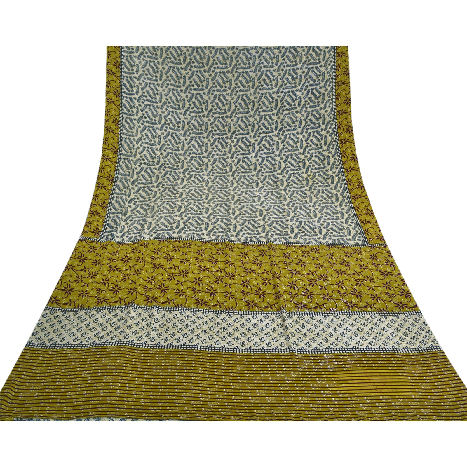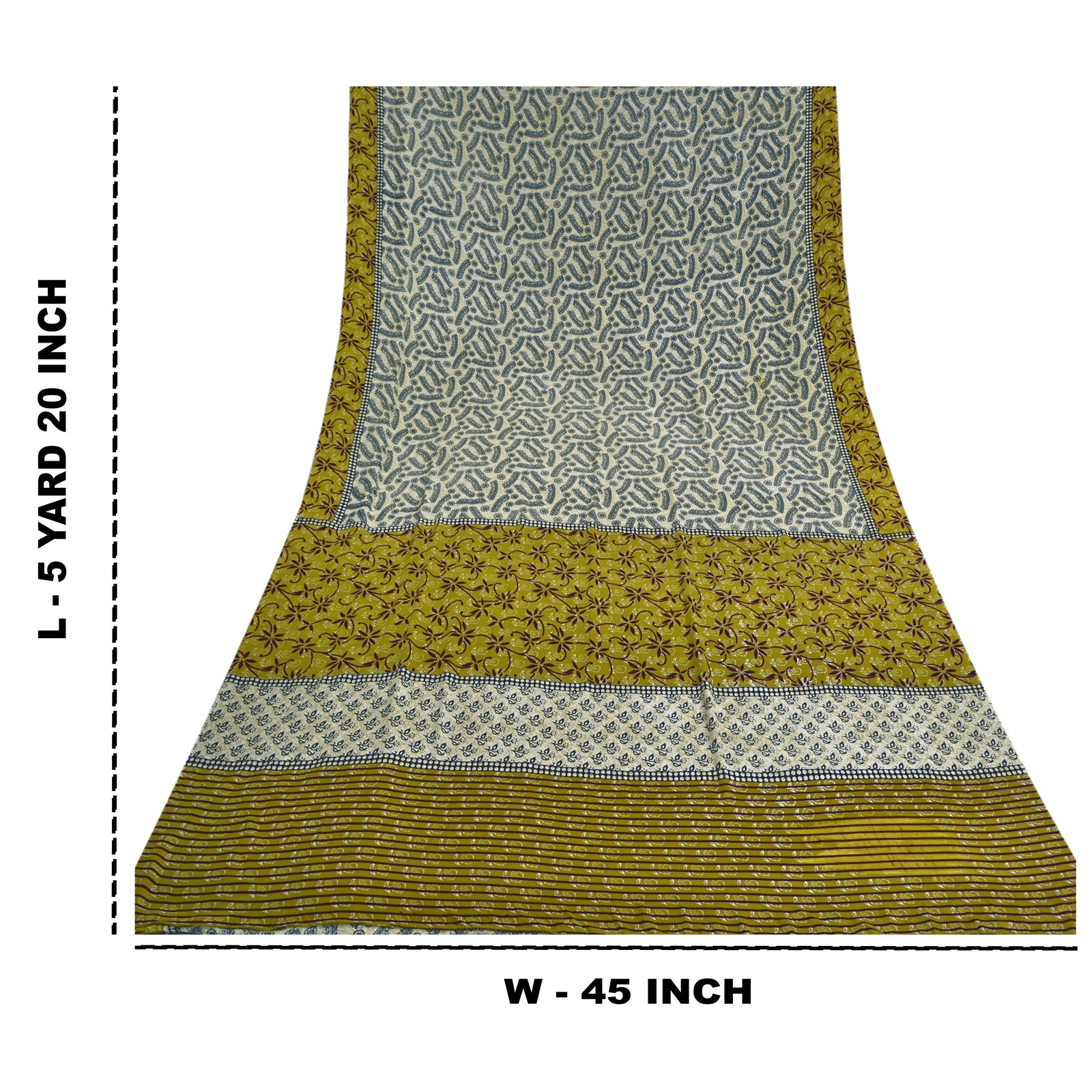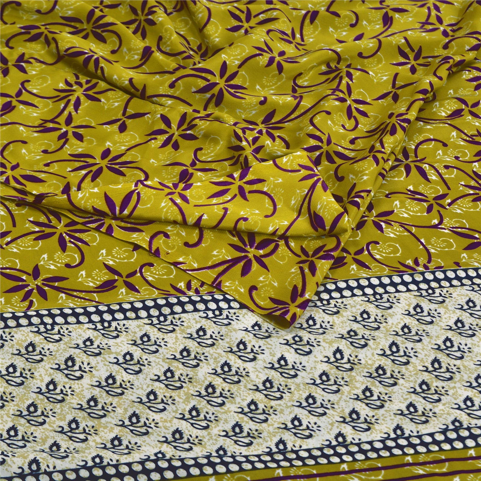 Sanskriti Vintage Ivory Sarees Moss Crepe Sari Printed Floral Soft Craft Fabric