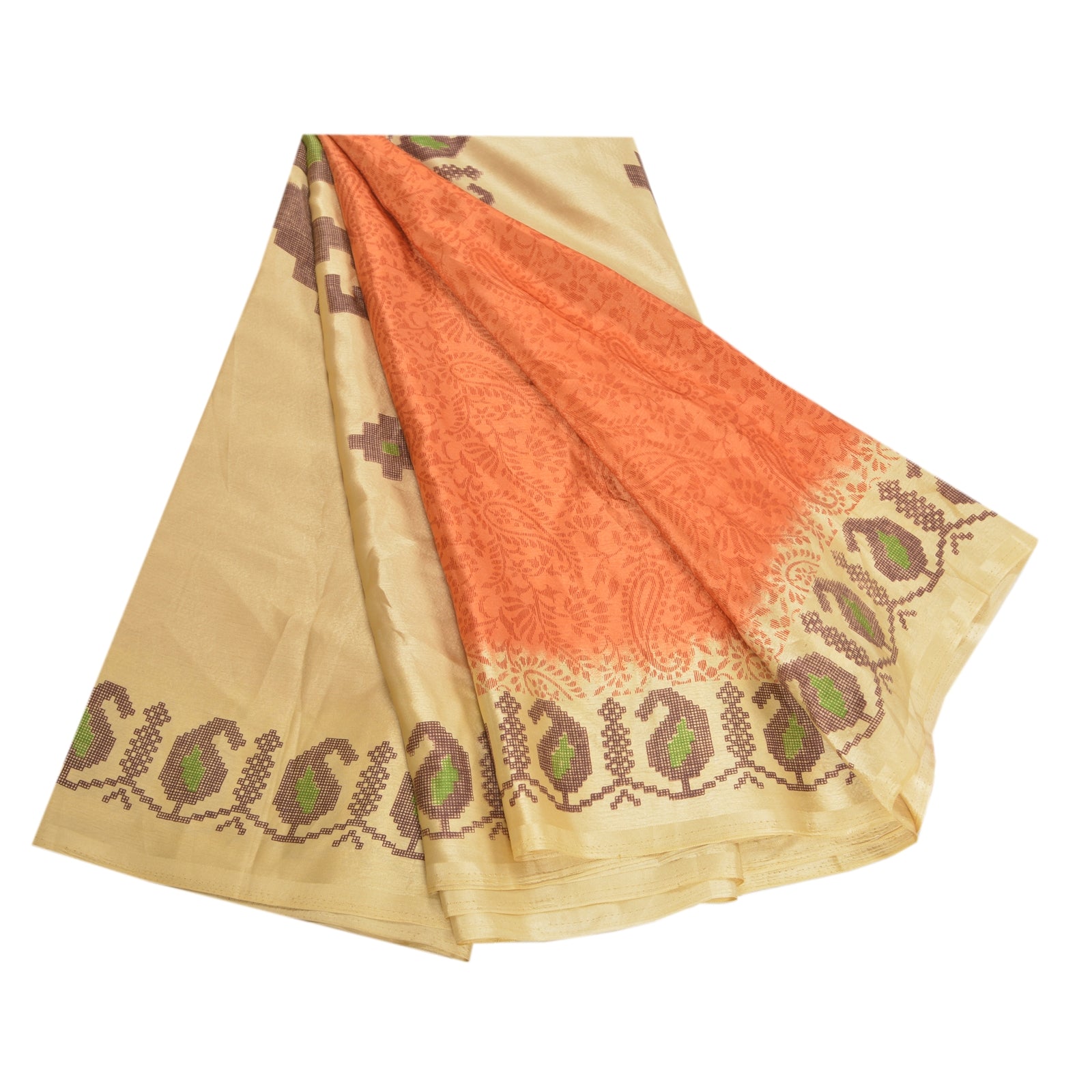 Sanskriti Vintage Kasuti Printed Orange Sarees Moss Crepe Sari Soft Craft Sustainable Fabric