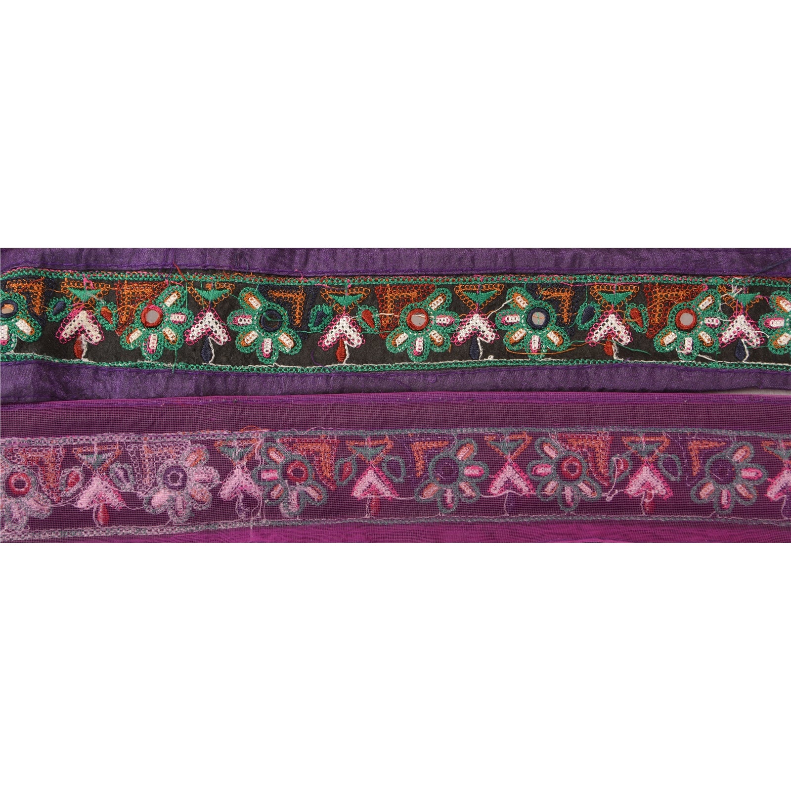 Sanskriti Vintage Kutch Sari Border Embroided 1 Yd Trim Sewing Craft Purple Lace