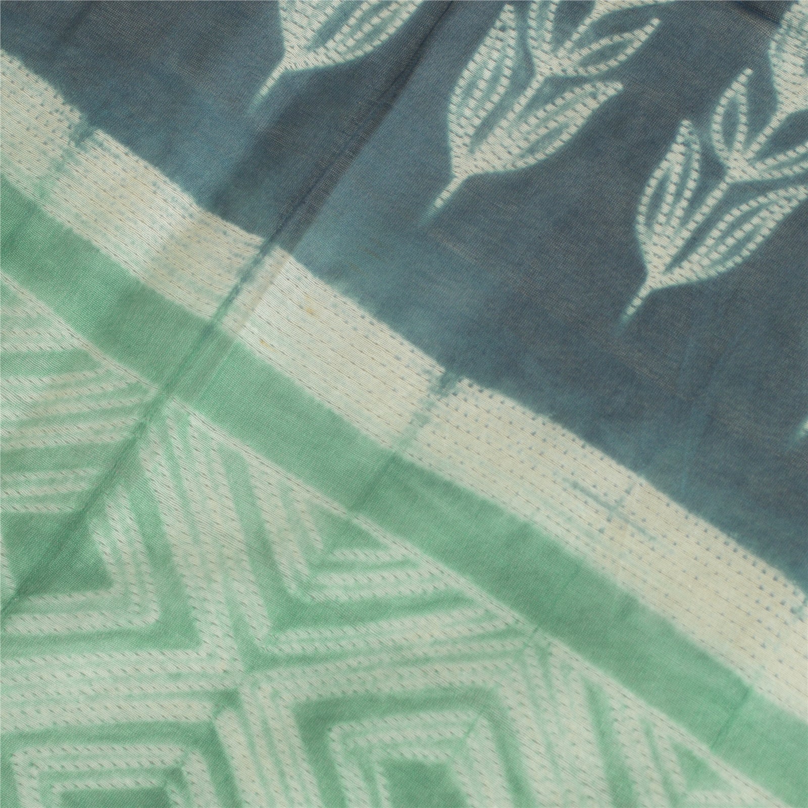 Sanskriti Vintage Long Blue/Green Dupatta/Stole Cotton Silk Block Printed Hijab