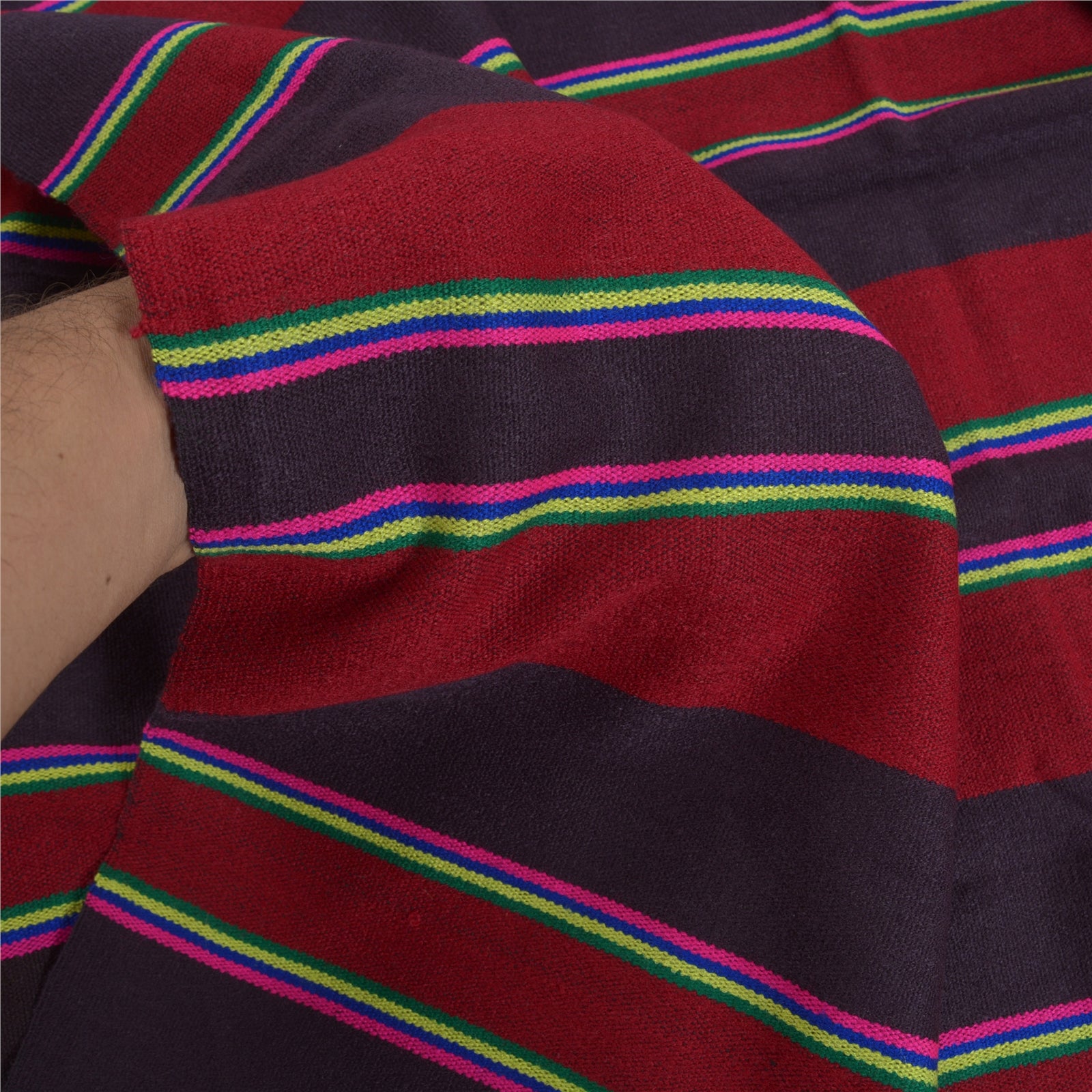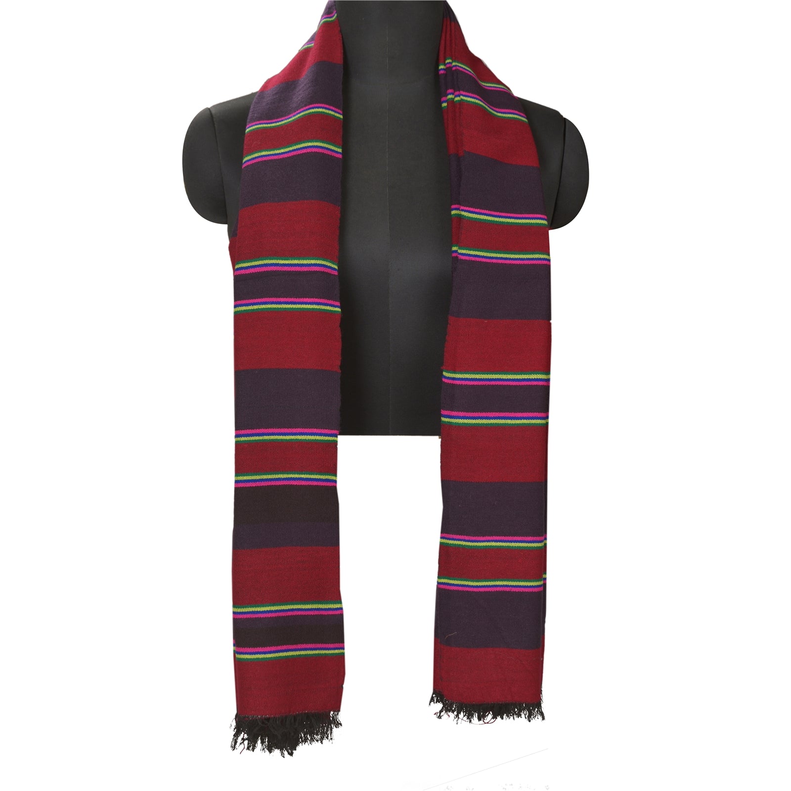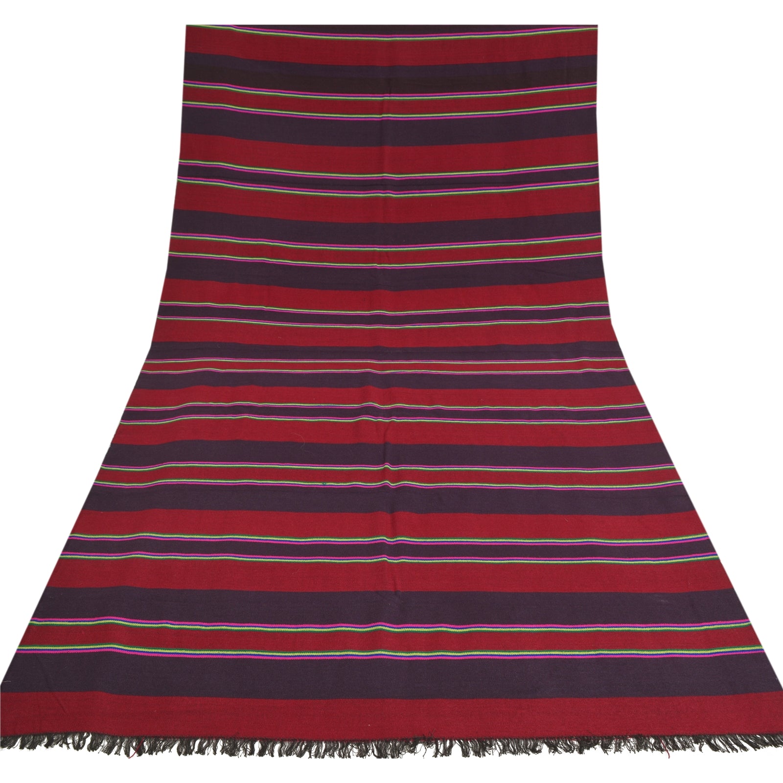 Sanskriti Vintage Long Dark Red Woolen Shawl Woven Scarf Throw Soft Stole