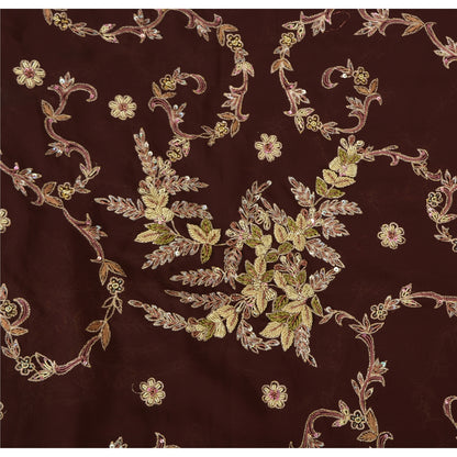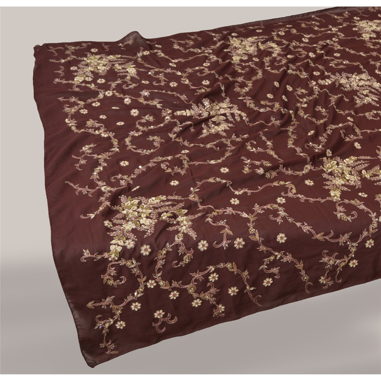 Sanskriti Vintage Long Dupatta Artificial Silk Dark Red Hand Beaded Zardozi Veil