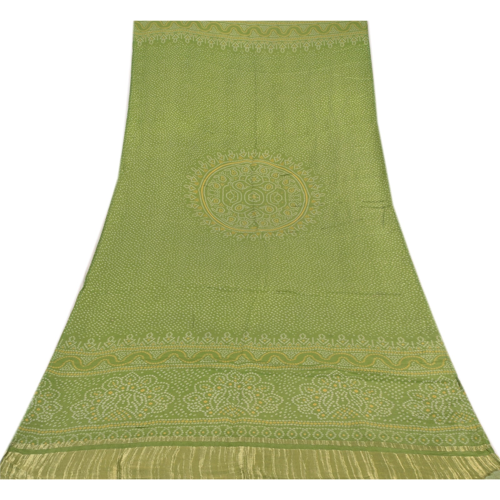 Sanskriti Vintage Long Dupatta/Stole Bandhani Print Green Cotton Silk Scarf Veil