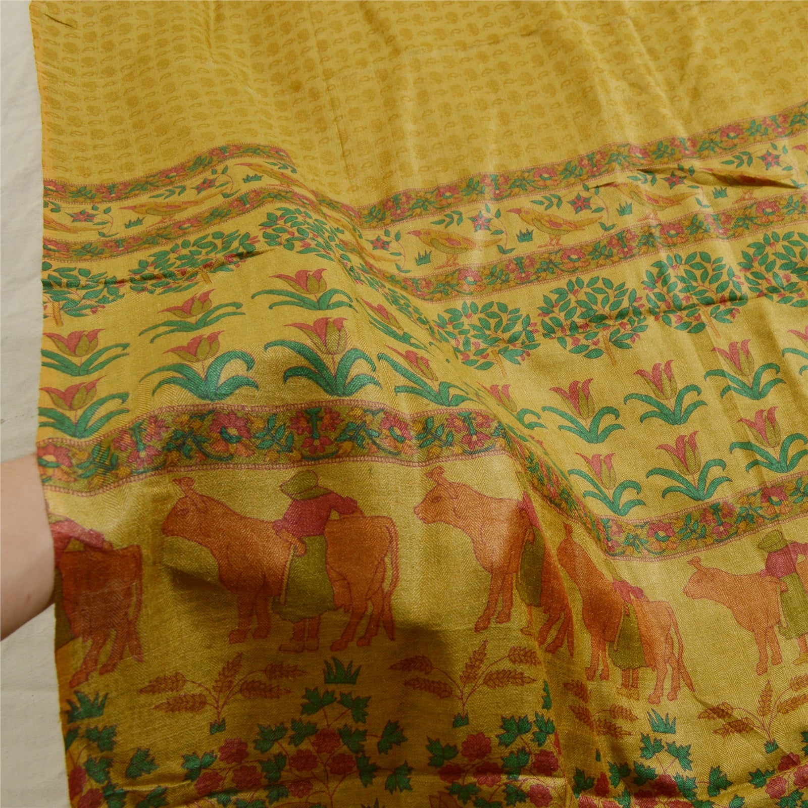 'THE ITEM COLOR OR SHADE MAY BE DARKER OR LIGHTER THAN THE PICTURE.' Beautiful brown & shade of green colored blend silk printed long scarf/dupatta. Center portion of the dupatta printed floral design. Border has printed floral & animal design with soft base Sustainable Fabric is really enhancing beauty of the dupatta/stole. Dupatta has matching fringes on both ends of borders. This dupatta/stole can be used for various crafting ideas too. Use it for dress designing, as a throw, as window dressing, upholstery, table linen and much more. Let your creative juices flow. International buyers please note: Import duties, taxes, and charges are not included in the item price or postage cost. These charges are the buyer's responsibility. Please check with your country's customs office to determine what these additional costs will be prior to bidding or buying. Buyer will pay custom duty/tax. It is calculated and charged differently by every country. As a seller I do not have any control over it. VAT or sales tax is calculated by the platform at the time of checkout. Customs charge is payable at the time of delivery.'
