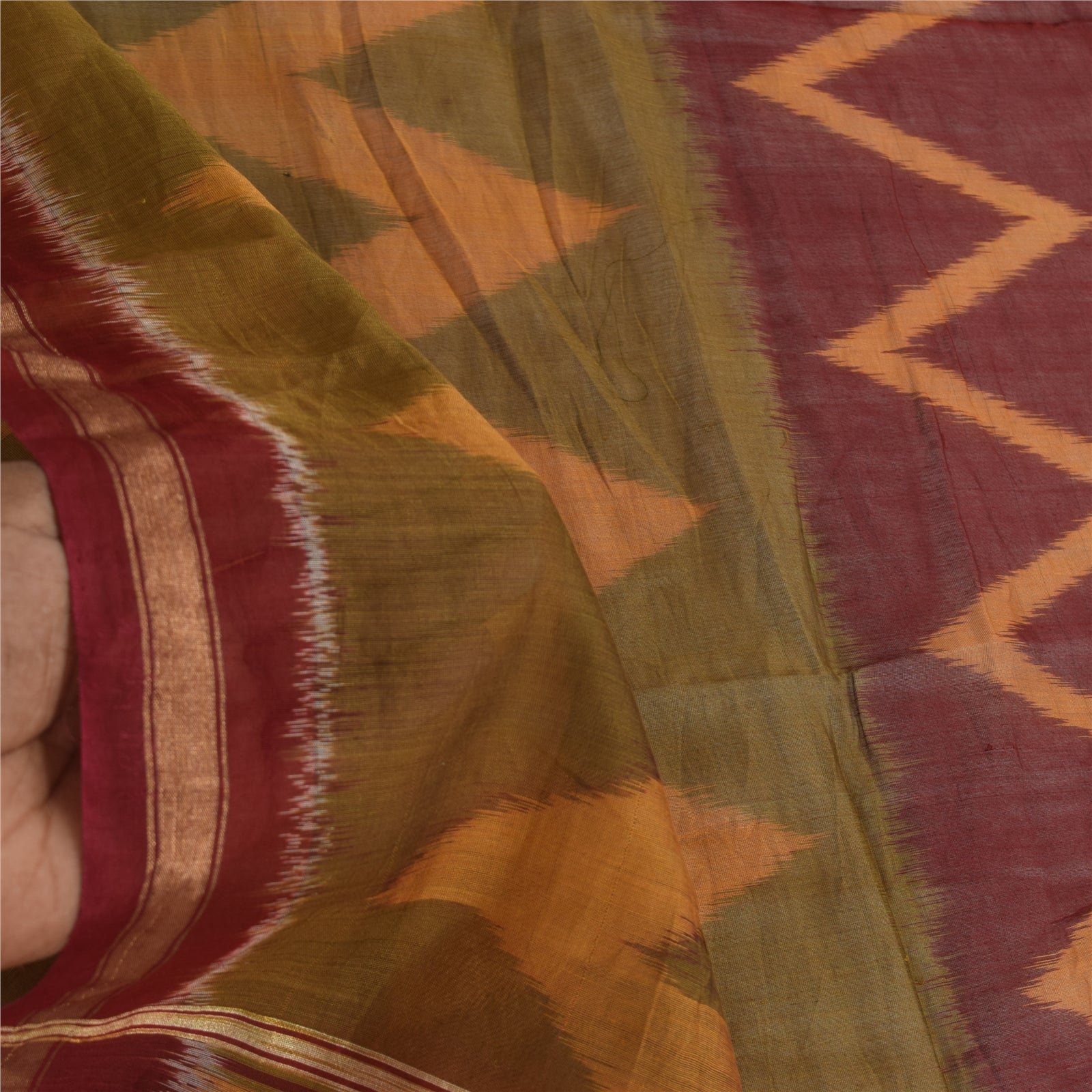 Sanskriti Vintage Long Dupatta/Stole Cotton Silk Hand Ikat Woven Wrap Scarf Veil