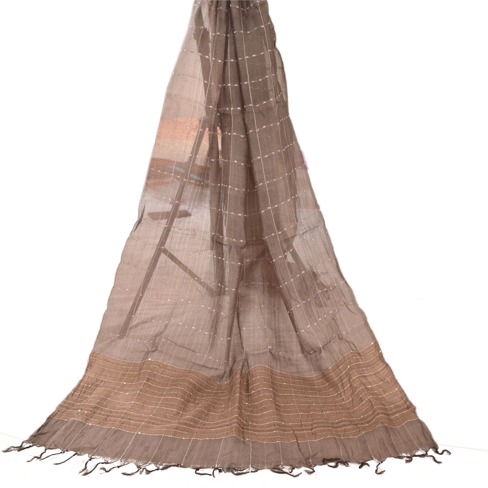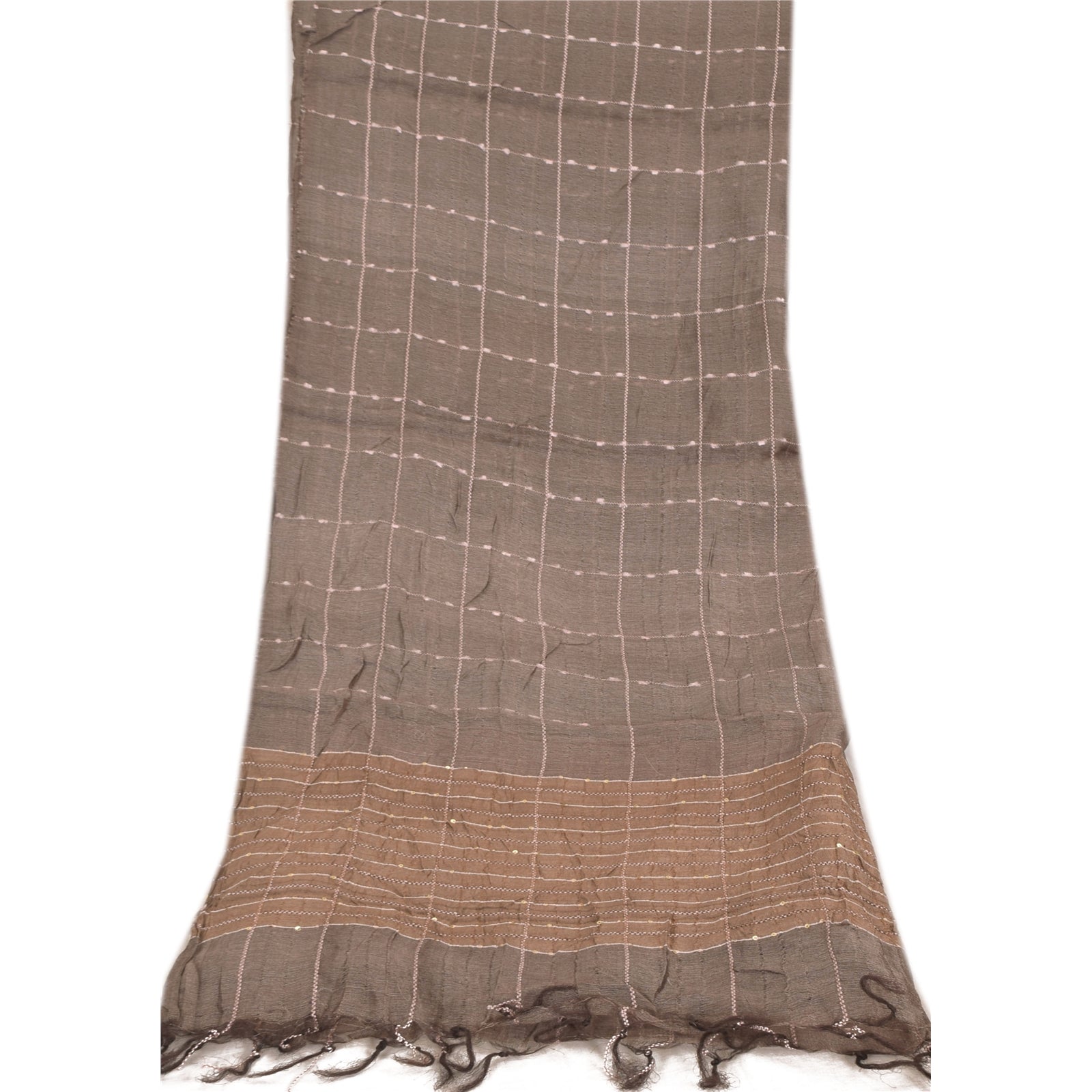 Sanskriti Vintage Long Dupatta/Stole Indian Pure Silk Brown Woven Scarf Veil