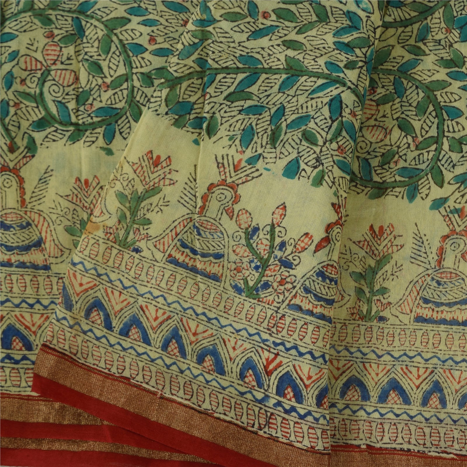 THE ITEM COLOR OR SHADE MAY BE DARKER OR LIGHTER THAN THE PICTURE. Beautiful cream colored pure cotton hand made kalamkari long scarf/dupatta. Border of dupatta has printed floral & peacock design & golden zari woven work. Similar work in center part of dupatta. This dupatta/stole can be used for various crafting ideas too. Use it for dress designing, as a throw, as window dressing, upholstery, table linen and much more. Let your creative juices flow. These Items are pre-owned and well preserved. Shipping Note: International buyers please note: Import duties, taxes, and charges are not included in the item price or postage cost. These charges are the buyer's responsibility. Please check with your country's customs office to determine what these additional costs will be prior to bidding or buying. Buyer will pay custom duty/tax. It is calculated and charged differently by every country. As a seller I do not have any control over it. VAT or sales tax is calculated by the platform at the time of checkout. Customs charge is payable at the time of delivery.' DC-55032