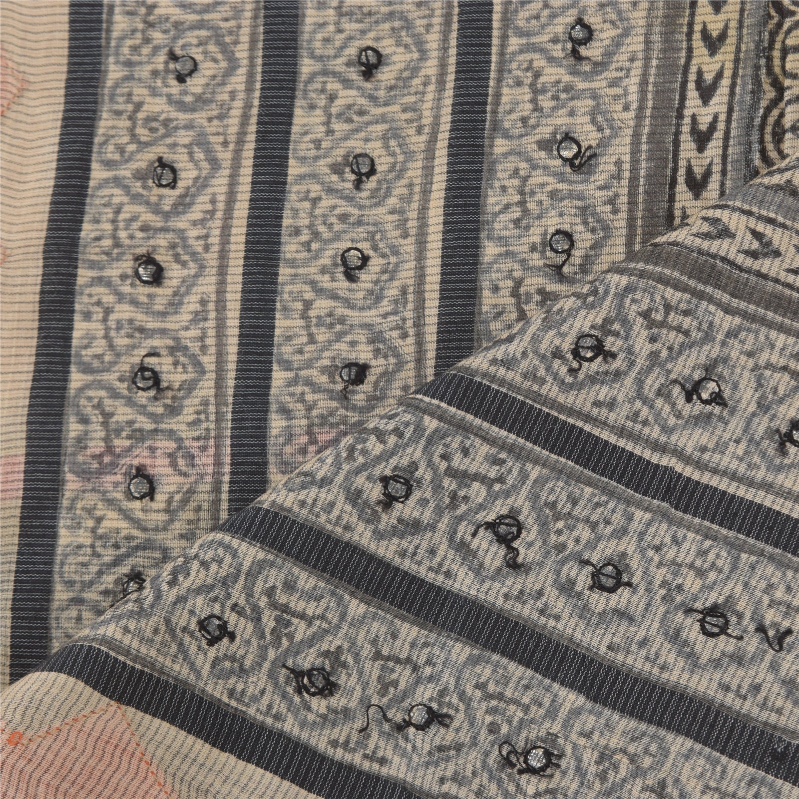 Sanskriti Vintage Long Dupatta/Stole Pure Cotton Ivory Hand Block/Embroidered