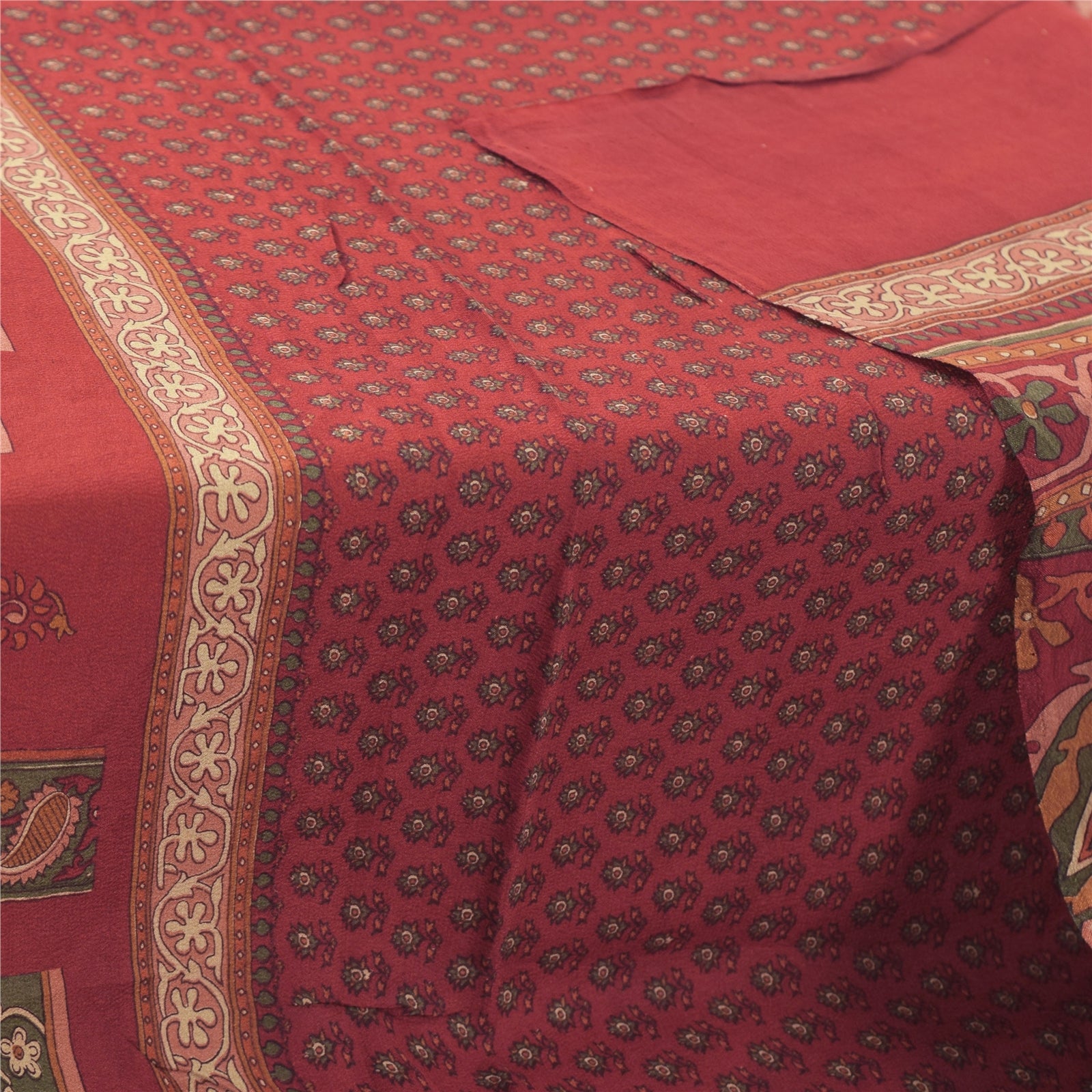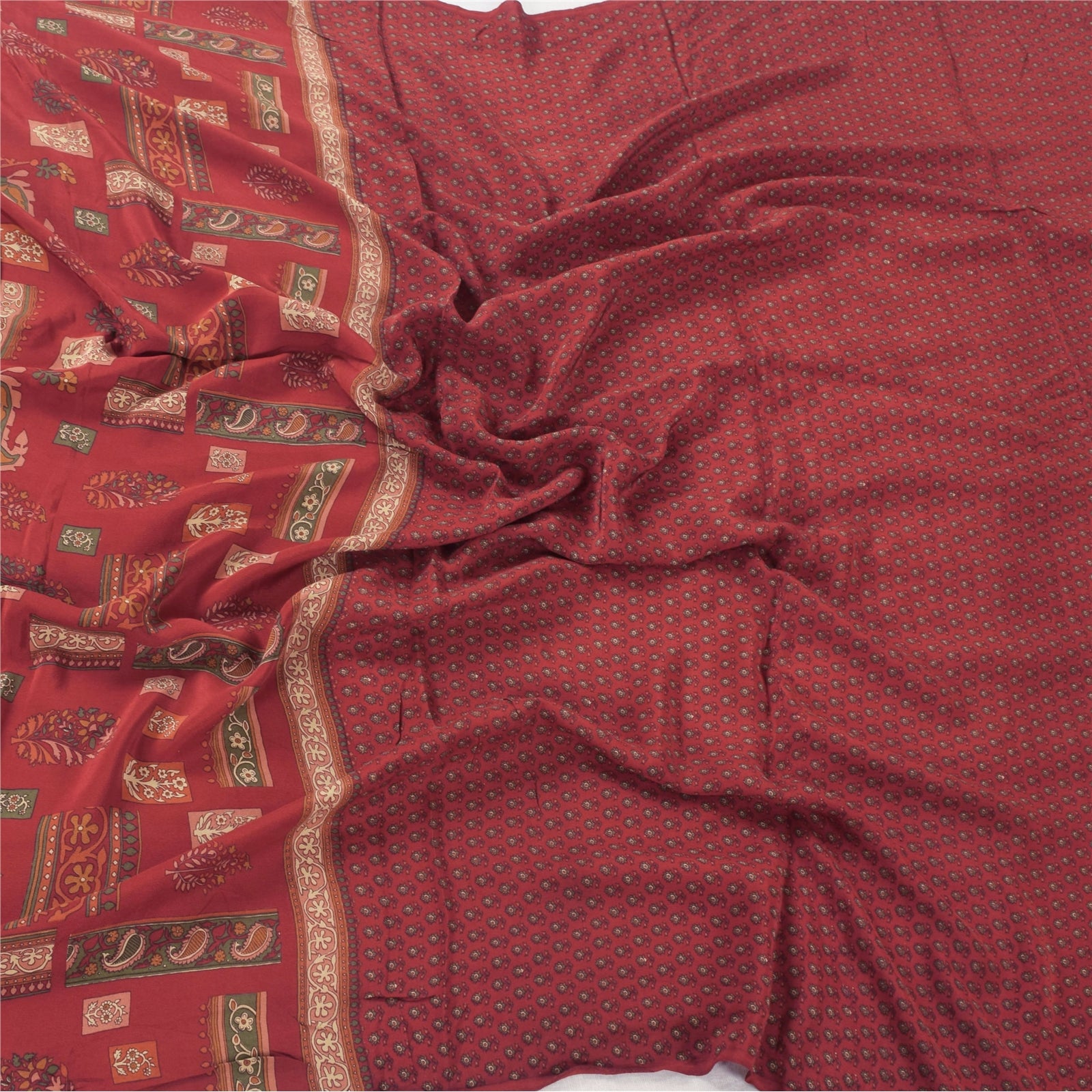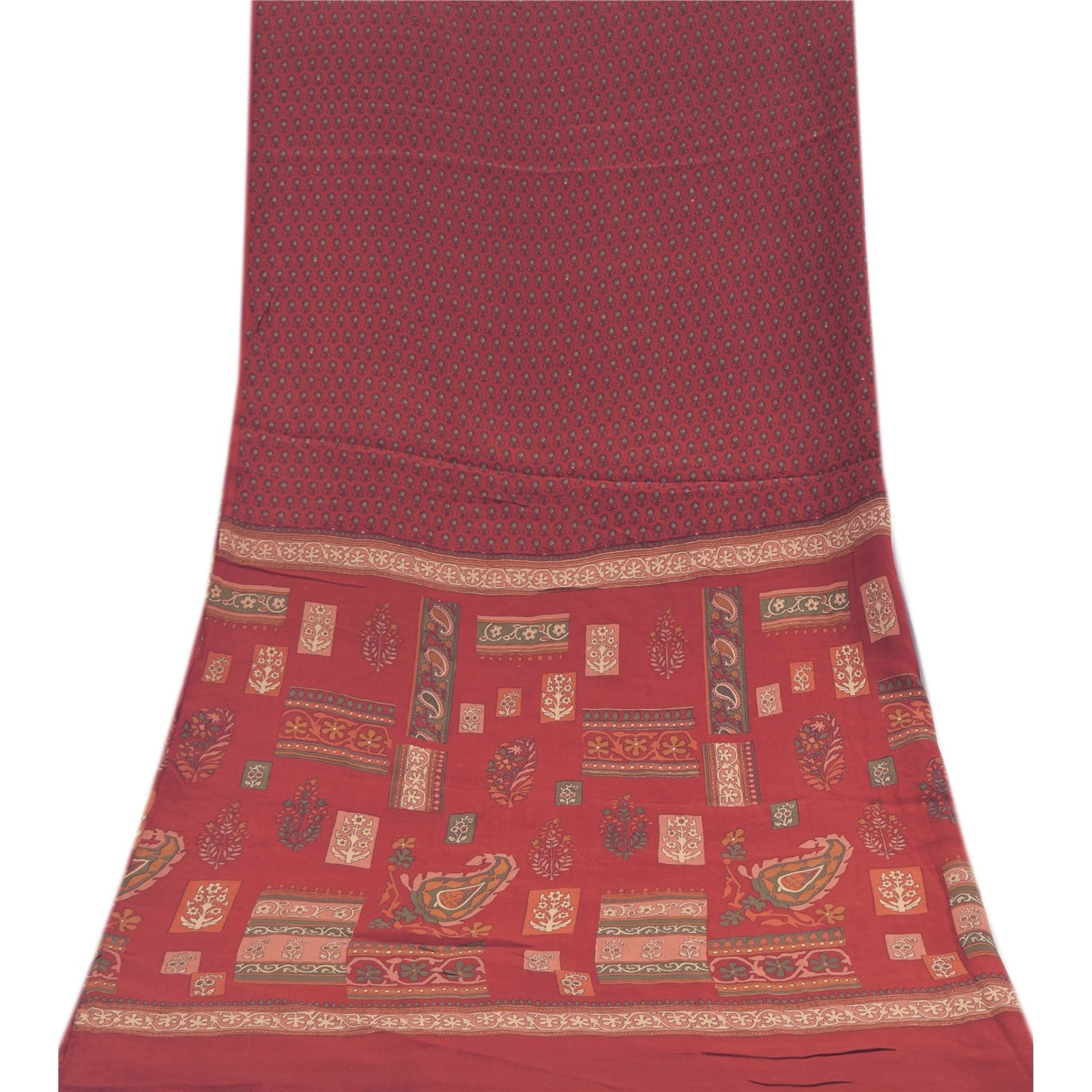 Sanskriti Vintage Long Dupatta/Stole Pure Crepe Silk Dark Red Printed Scarf Veil