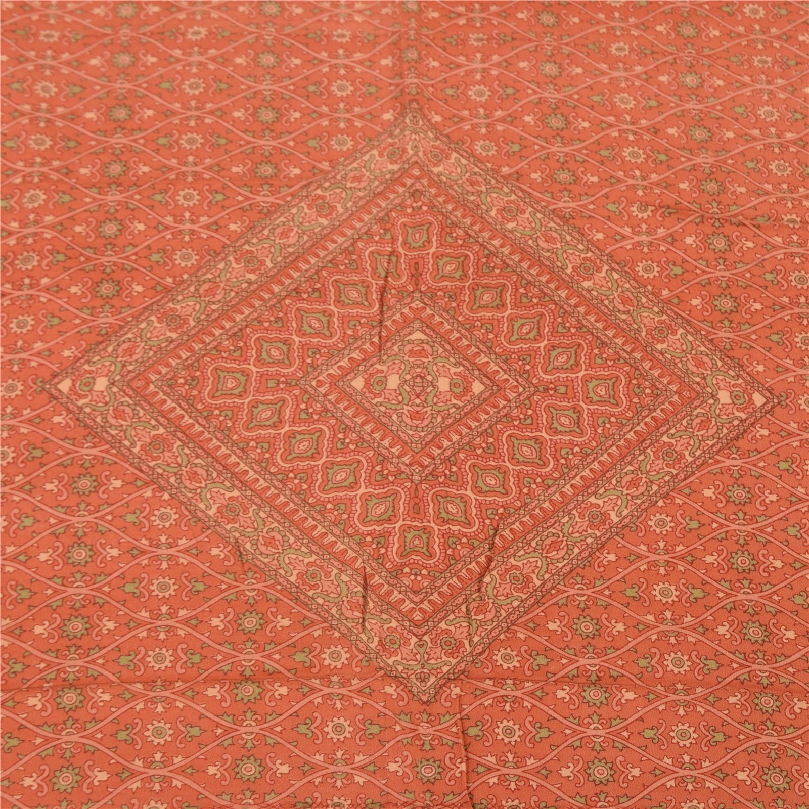 Sanskriti Vintage Long Dupatta/Stole Pure Crepe Silk Orange Printed Scarf Veil