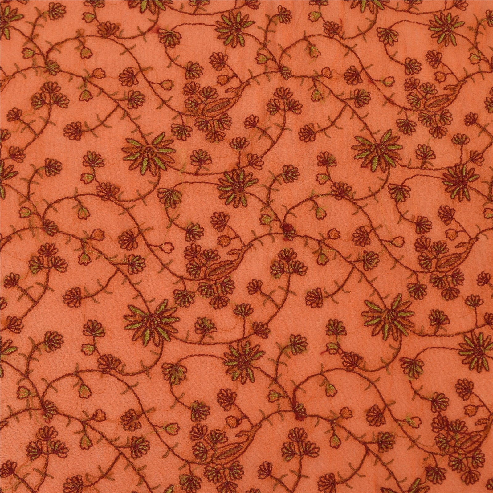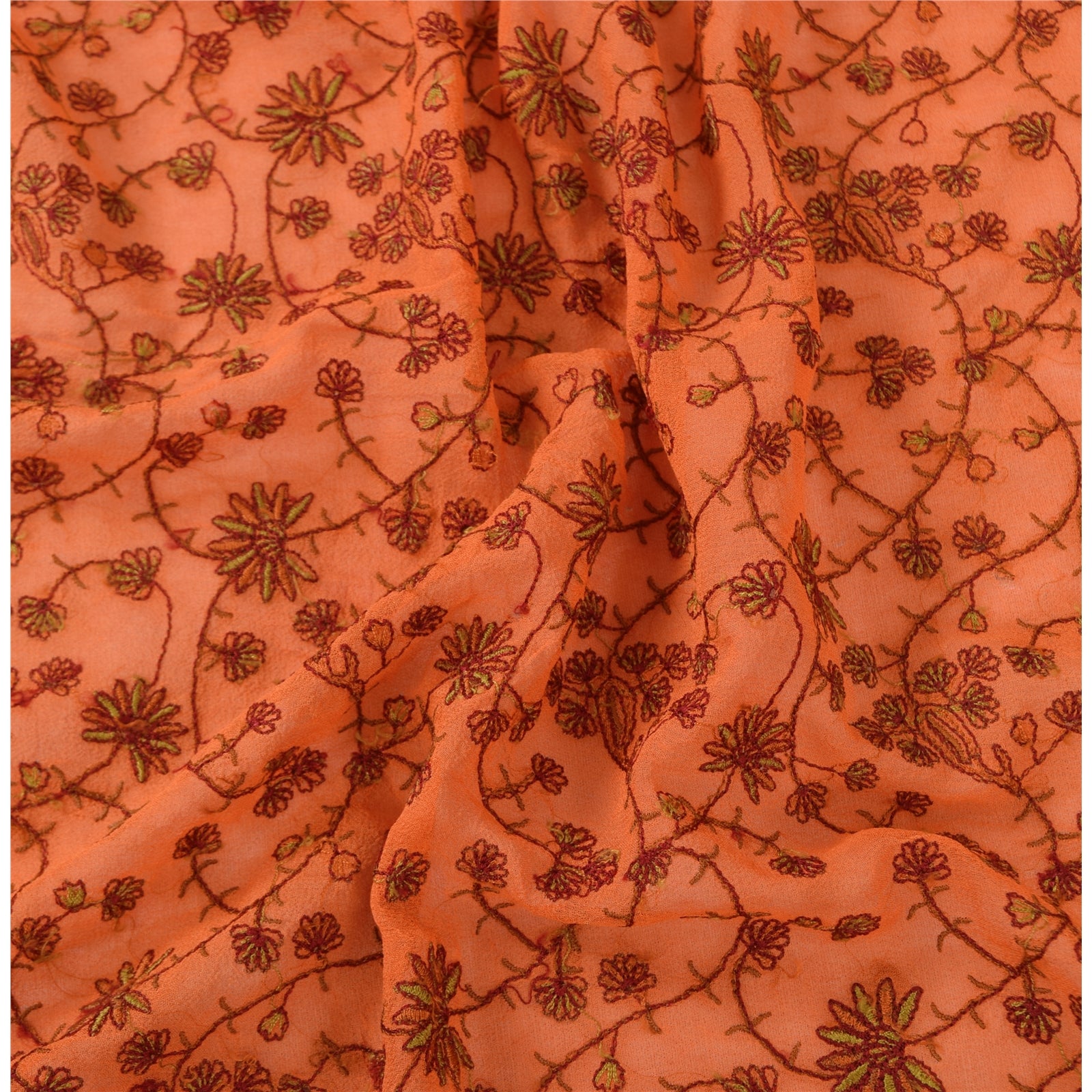 Sanskriti Vintage Long Dupatta/Stole Pure Georgette Saffron Embroidered Ari Work
