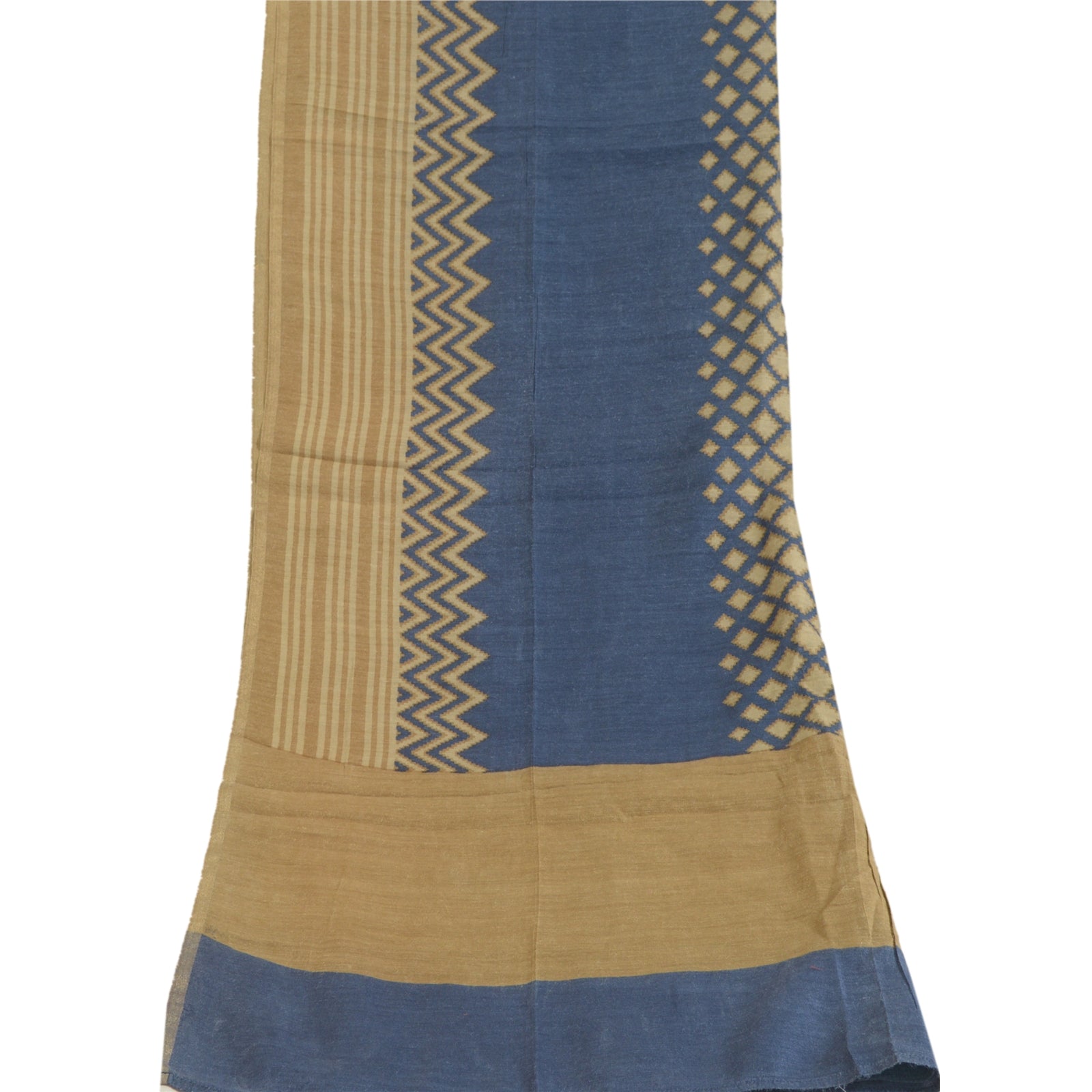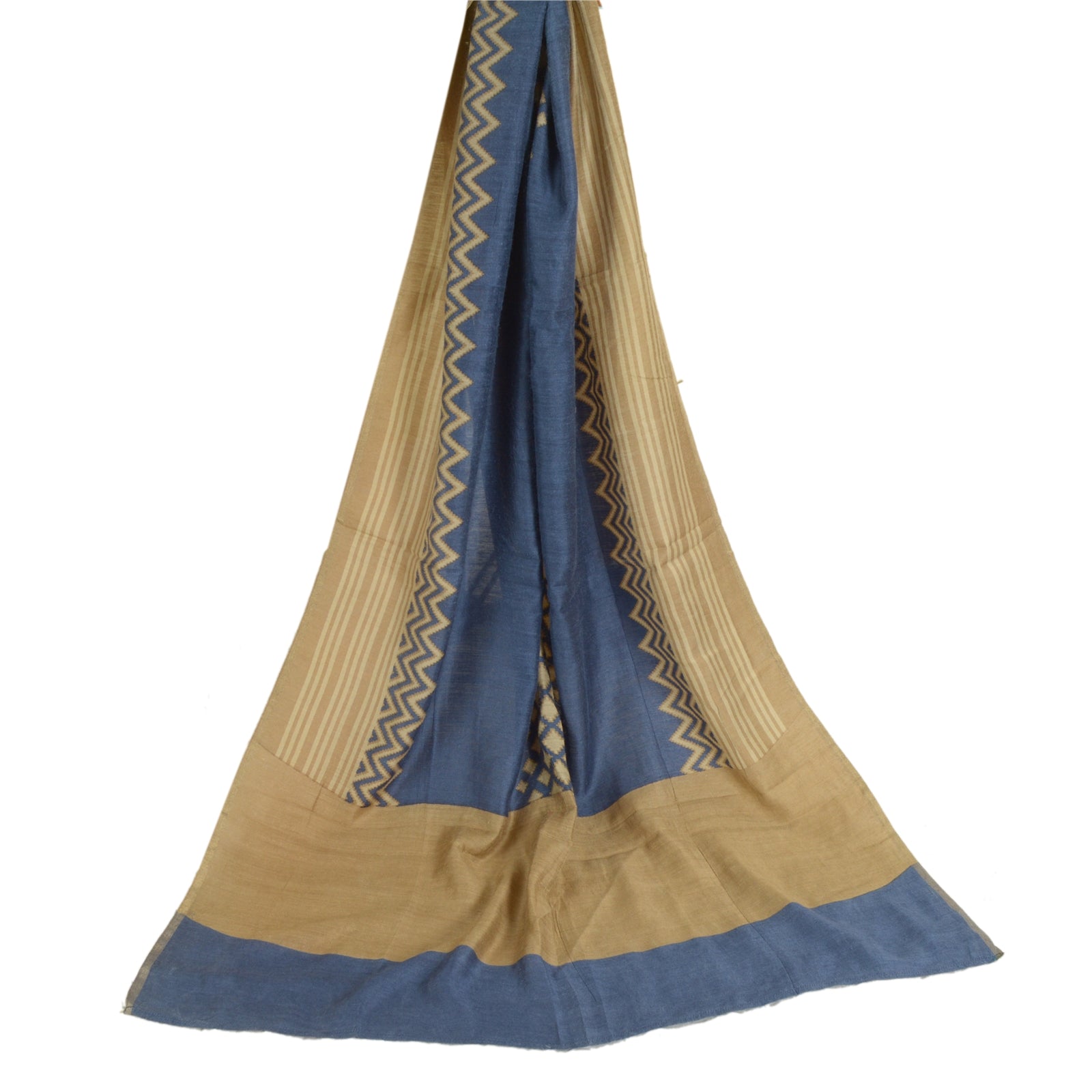 Sanskriti Vintage Long Dupatta Stole Pure Silk Brown/Blue Printed Soft Hijab