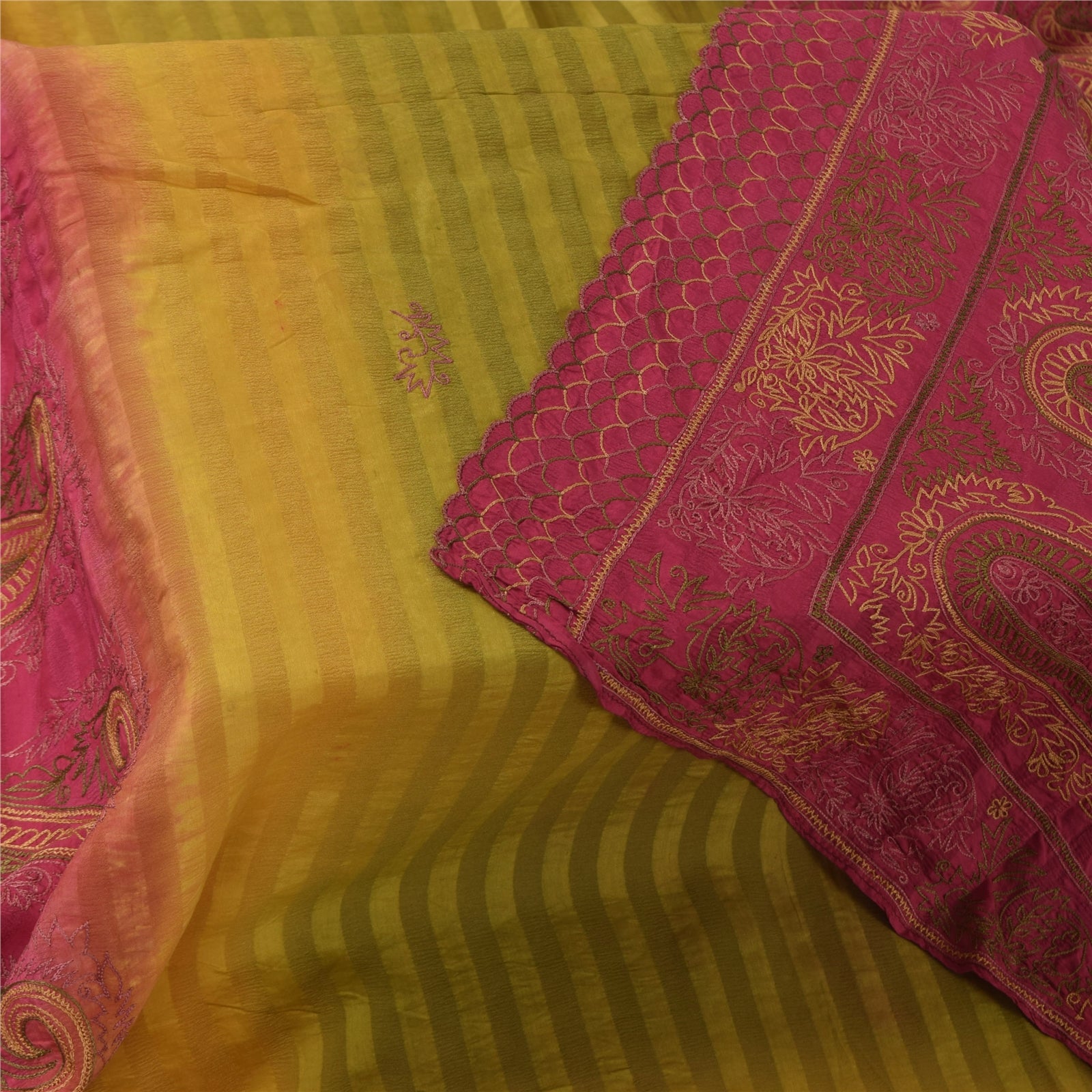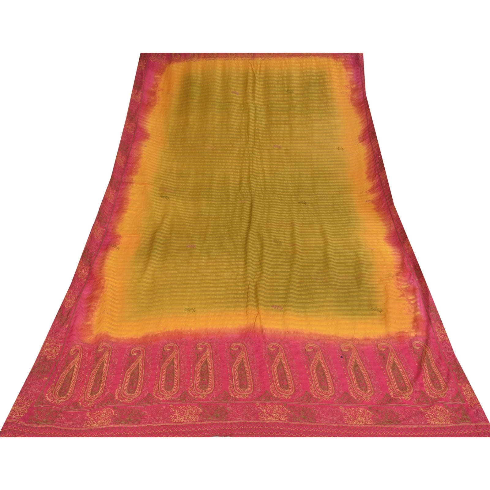 THE ITEM COLOR OR SHADE MAY BE DARKER OR LIGHTER THAN THE PICTURE. Beautiful green colored pure silk embordered & woven long scarf/dupatta. Border of dupatta has floral design with thread work. Similar work in center part of dupatta. There are strip lines design with woven work allover the dupatta This dupatta/stole can be used for various crafting ideas too. Use it for dress designing, as a throw, as window dressing, upholstery, table linen and much more. Let your creative juices flow. These Items are pre-owned and well preserved. Shipping Note: International buyers please note: Import duties, taxes, and charges are not included in the item price or postage cost. These charges are the buyer's responsibility. Please check with your country's customs office to determine what these additional costs will be prior to bidding or buying. Buyer will pay custom duty/tax. It is calculated and charged differently by every country. As a seller I do not have any control over it. VAT or sales tax is calculated by the platform at the time of checkout. Customs charge is payable at the time of delivery.' dc-55147