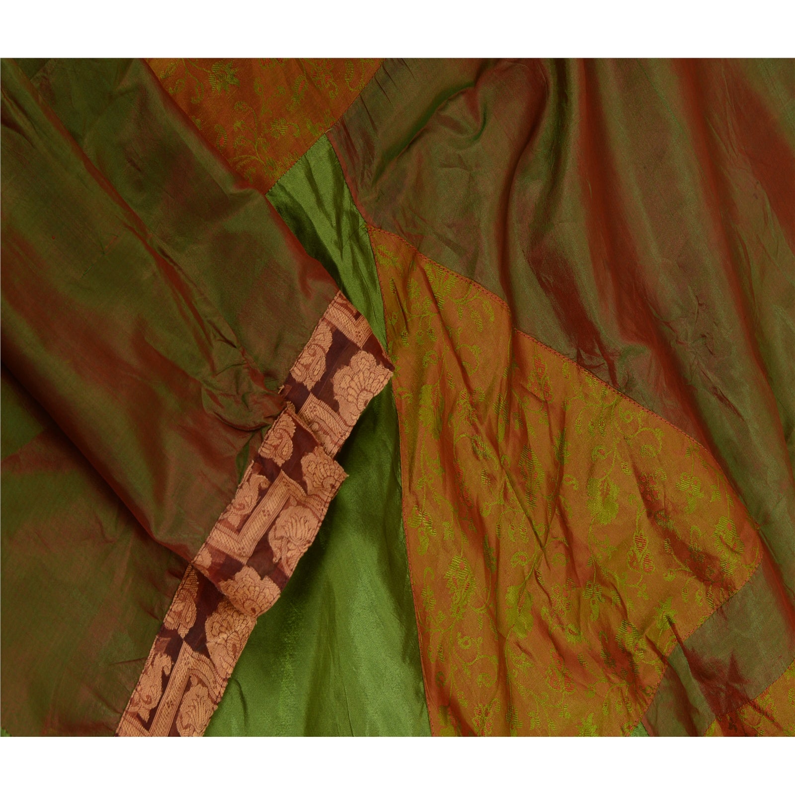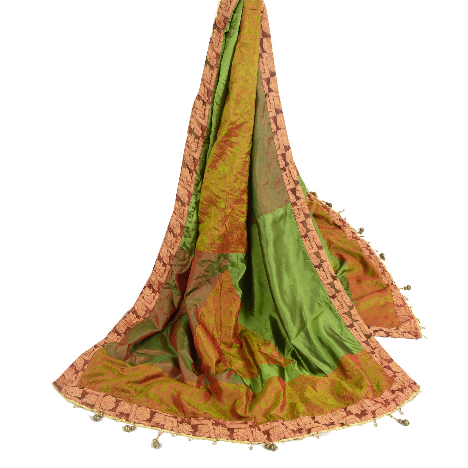 Sanskriti Vintage Long Dupatta Stole Pure Silk Green Wrap Hijab Woven Scarves