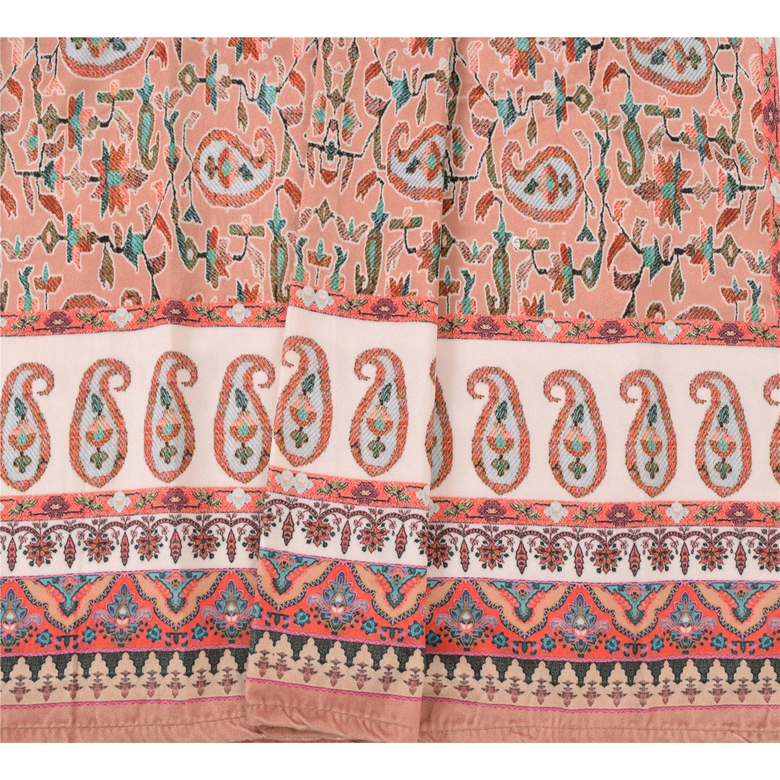 Sanskriti Vintage Long Dupatta/Stole Velvet Kani Printed Peach Scarf Wrap Veil