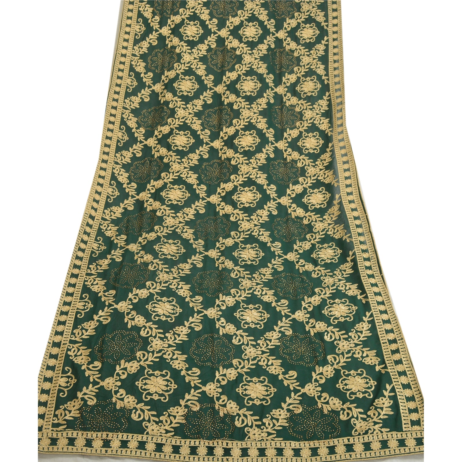 Sanskriti Vintage Long Green Dupatta/Stole Georgette Hand Embroidered Ari Work
