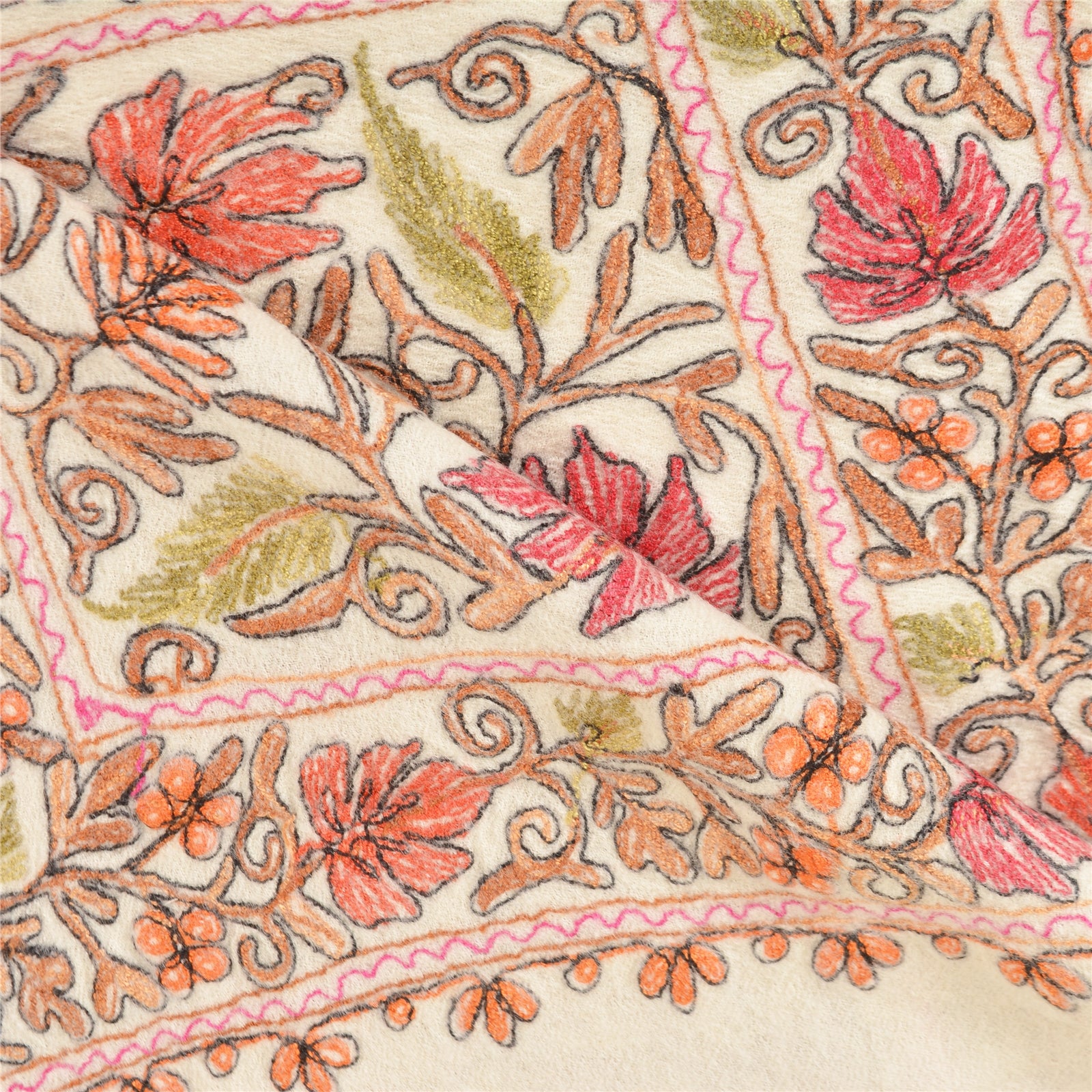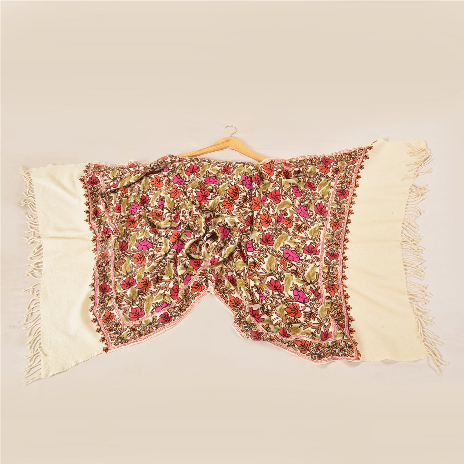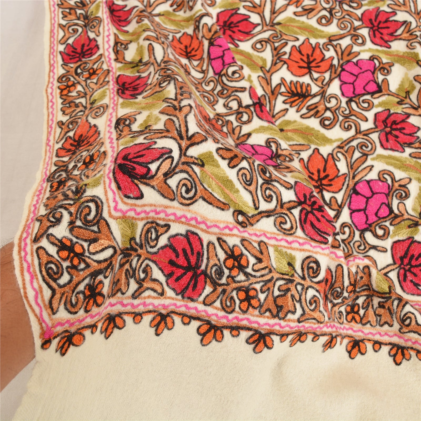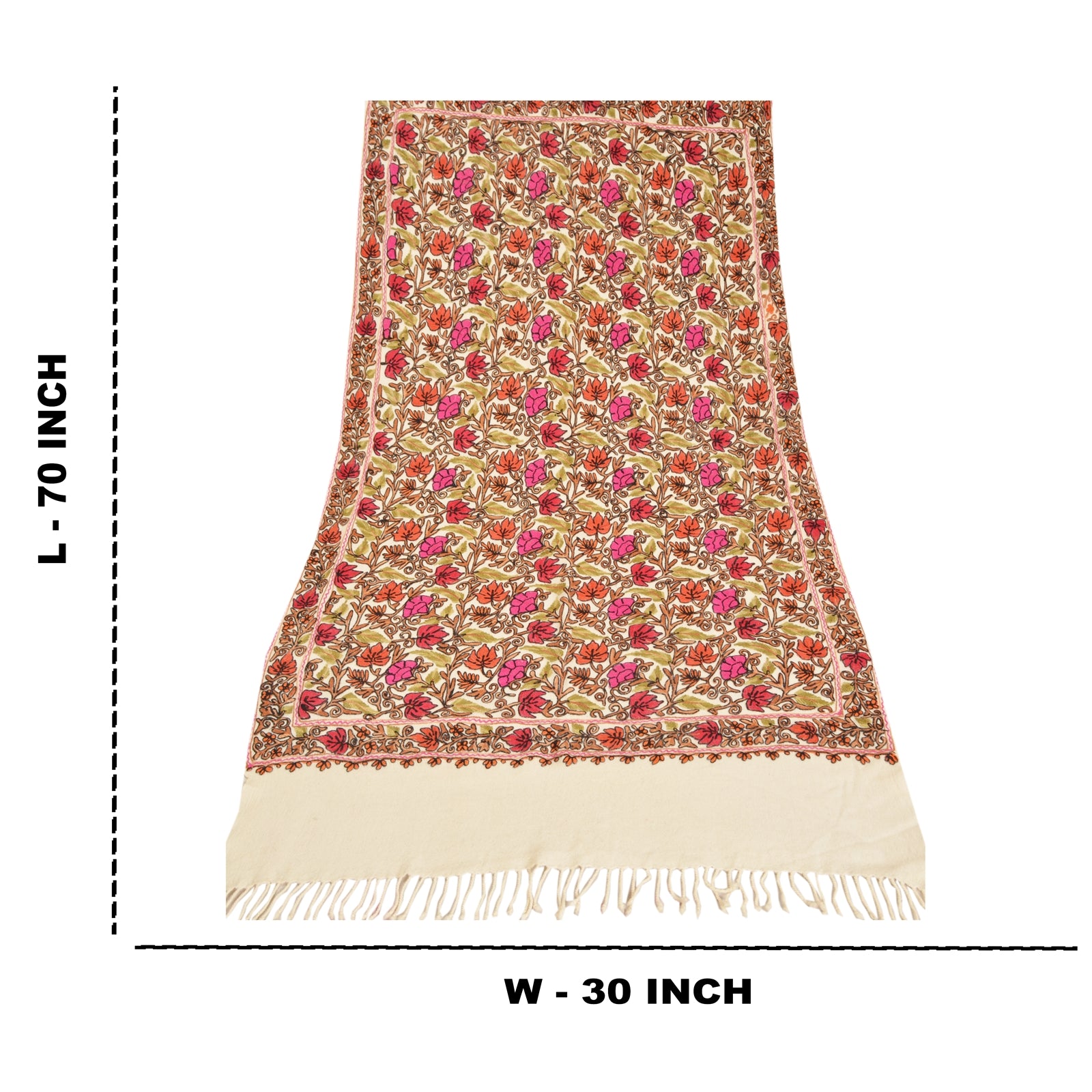 We Are Offering You A Vintage Ivory Color 100% Pure Woolen Stole/Shawl Which Adorns Hand Embroidered Ari Work. Border & Center Part Of Shawl Handmade Multi Color Thread Work (Traditional Ari) Work With Lovely Floral pattern. Dupatta has matching fringes on both ends of borders. This cozy, warm and fuzzy stool is soft against skin due to the mellow woolen Sustainable Fabric. A truly gorgeous piece which will also make an admirable gift. 'International buyers please note: Import duties, taxes, and charges are not included in the item price or postage cost. These charges are the buyer's responsibility. Please check with your country's customs office to determine what these additional costs will be prior to bidding or buying. Buyer will pay custom duty/tax. It is calculated and charged differently by every country. As a seller I do not have any control over it. VAT or sales tax is calculated by the platform at the time of checkout. Customs charge is payable at the time of delivery.'