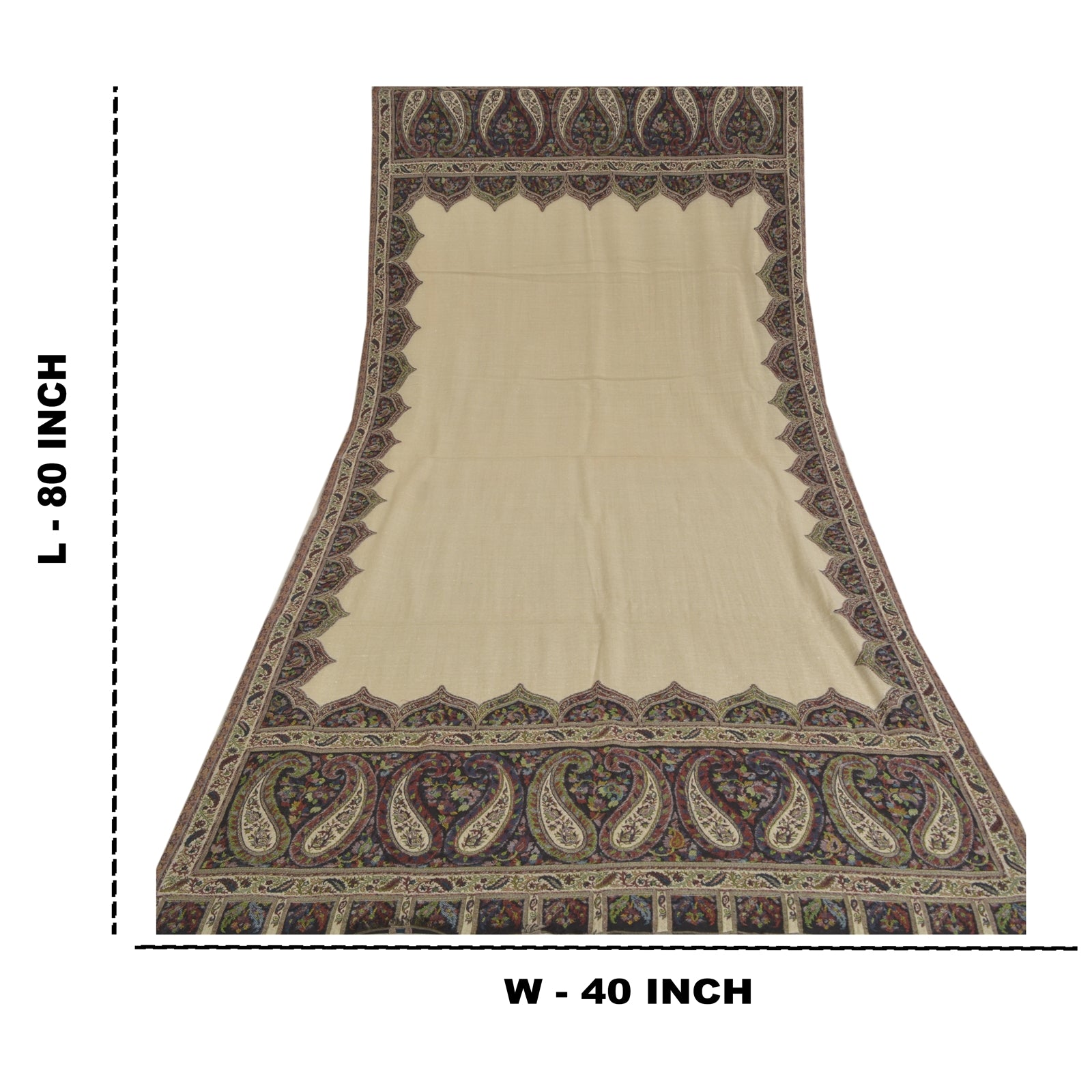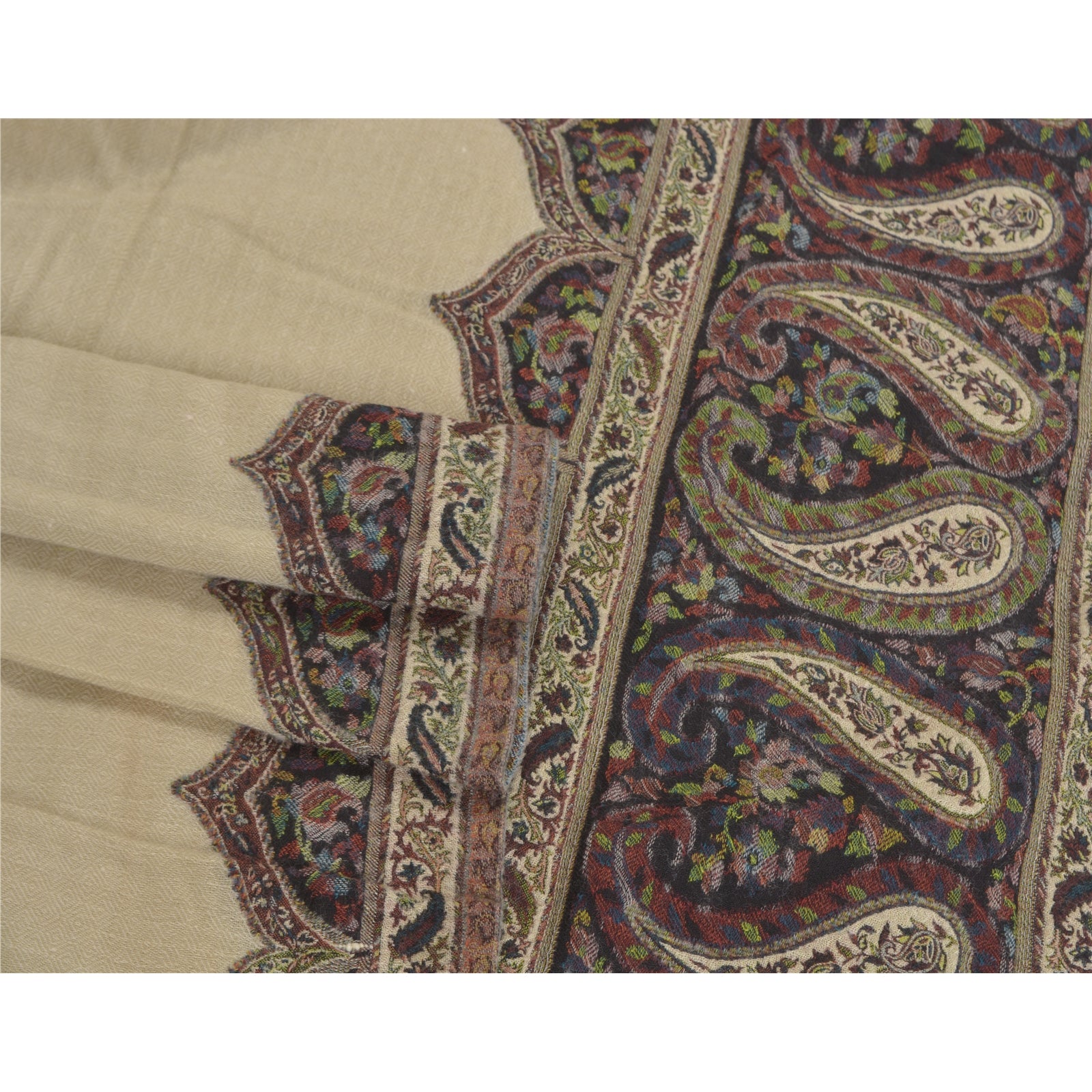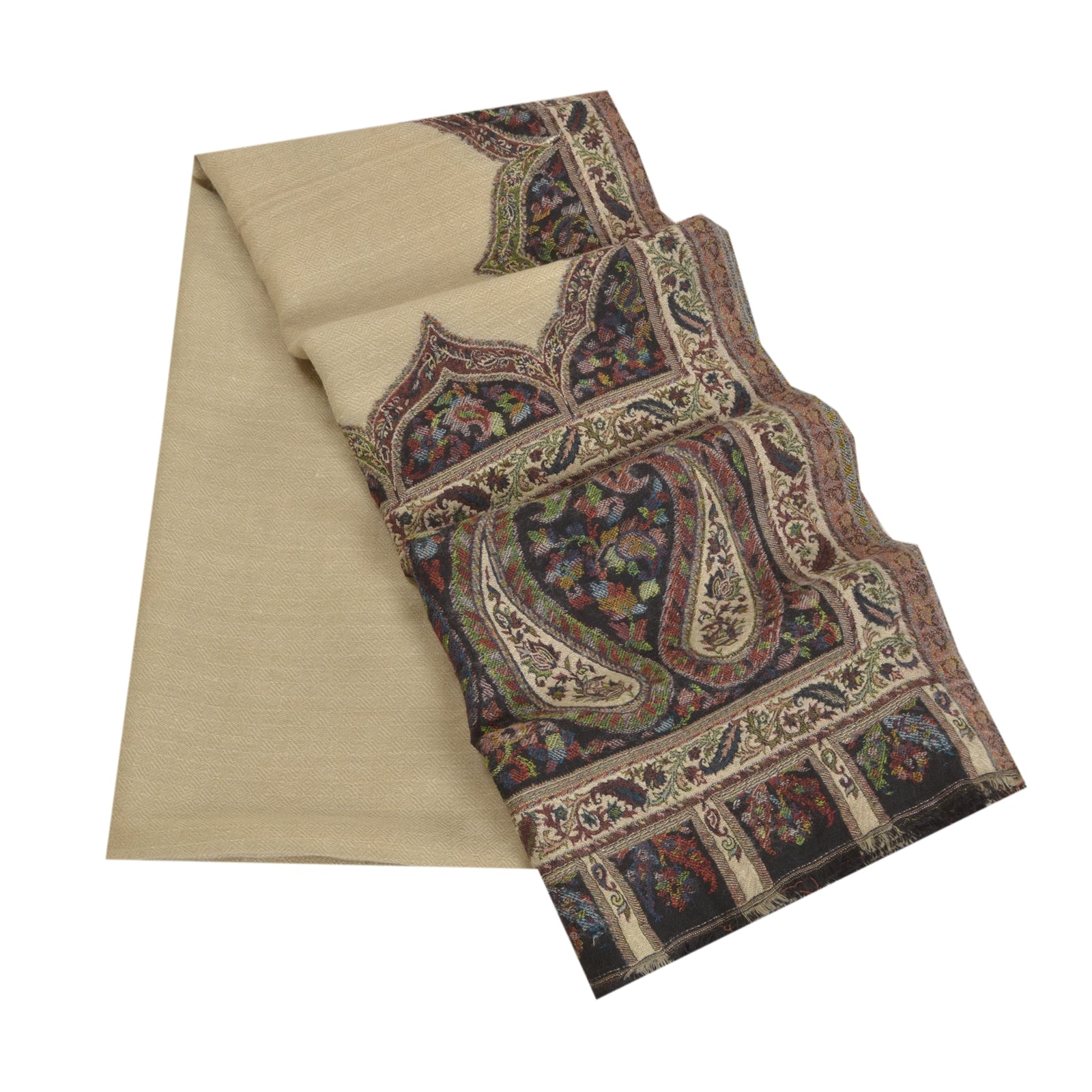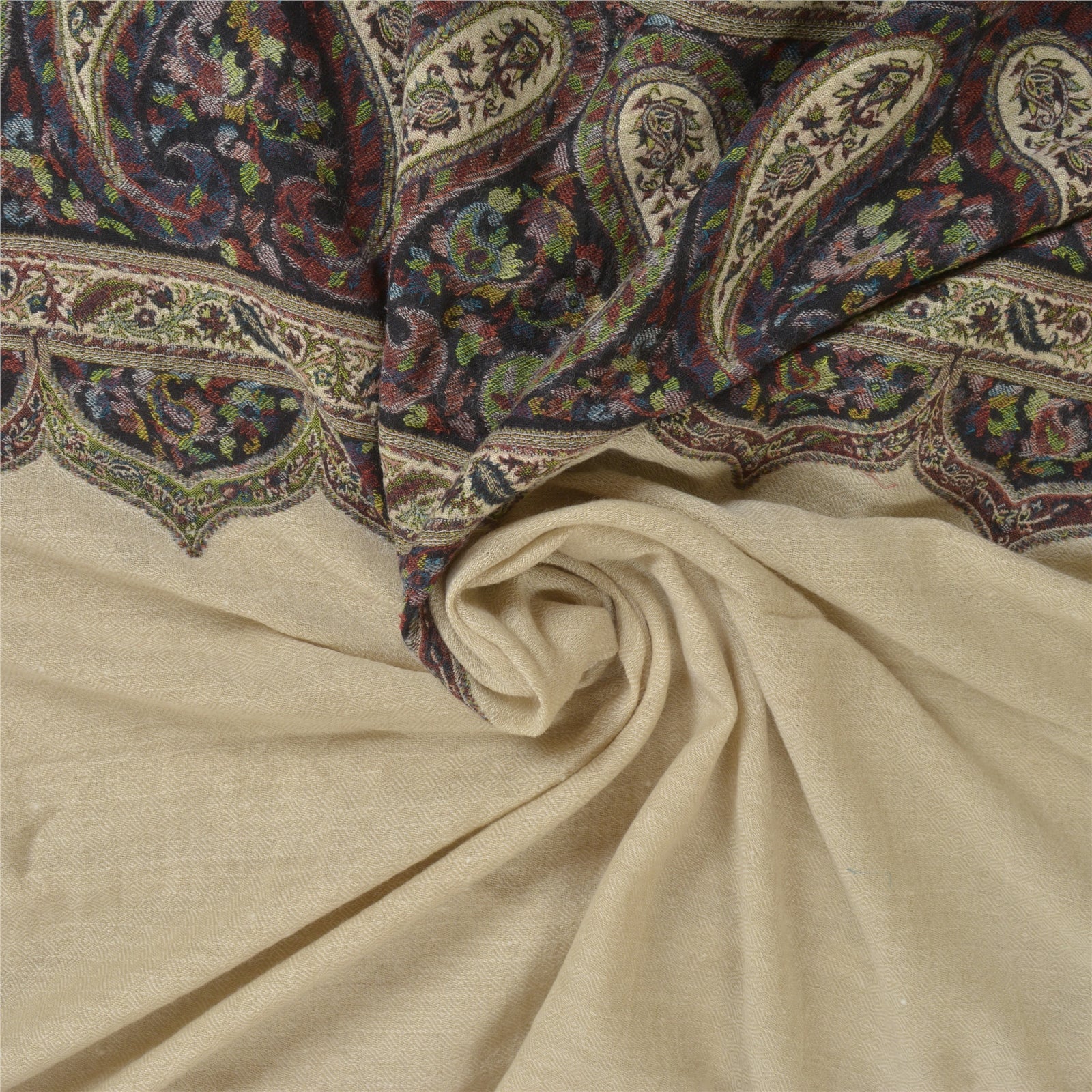 Sanskriti Vintage Long Ivory Pure Woolen Shawl Woven Scarf Throw Soft Stole