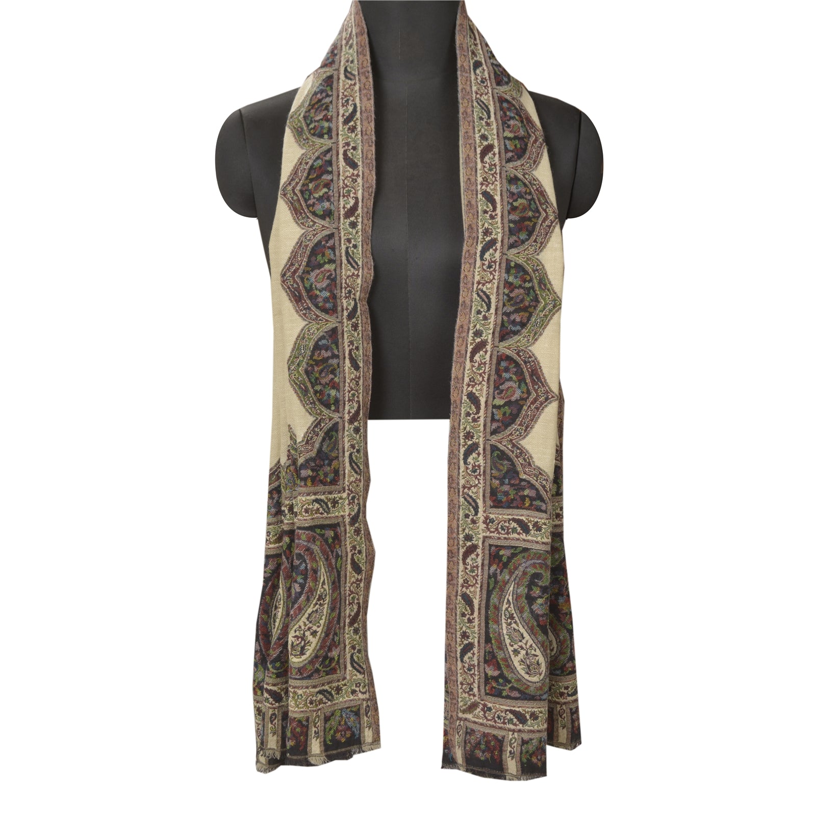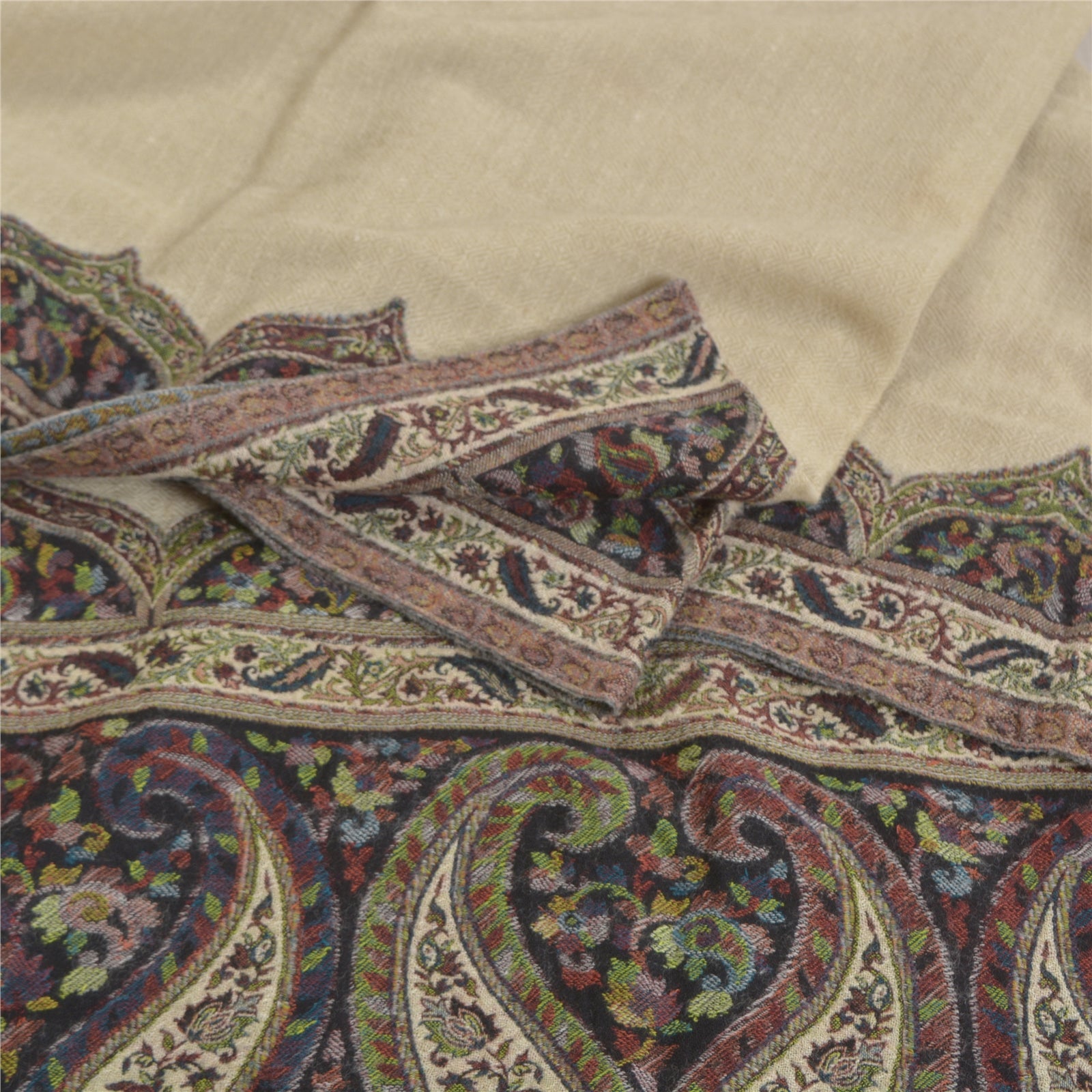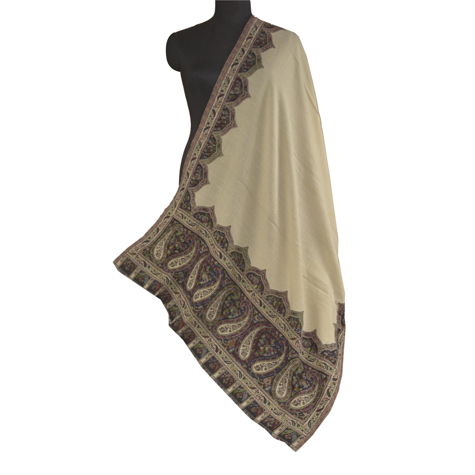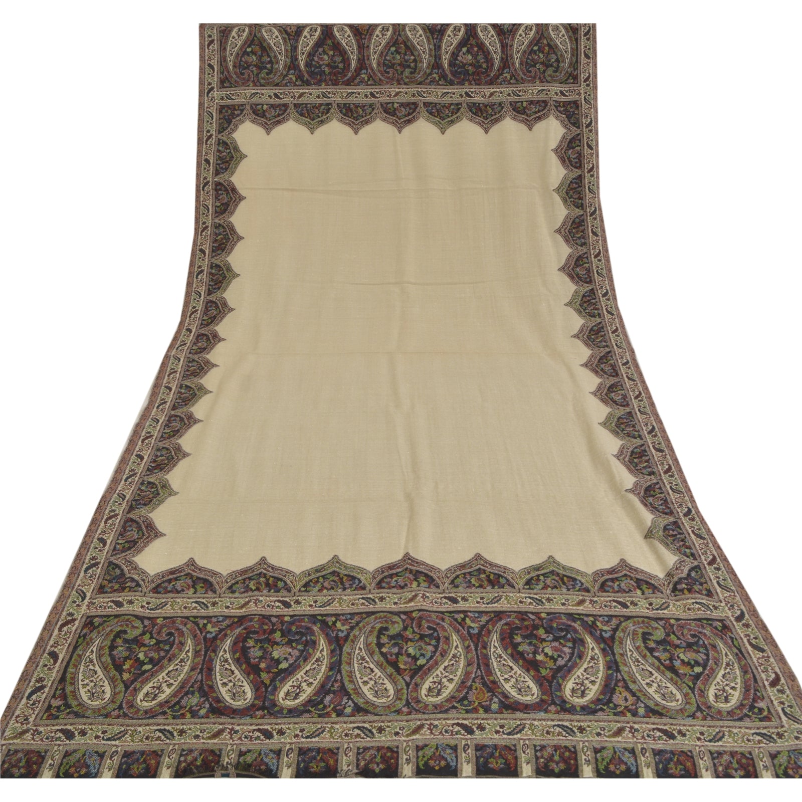 Sanskriti Vintage Long Ivory Pure Woolen Shawl Woven Scarf Throw Soft Stole