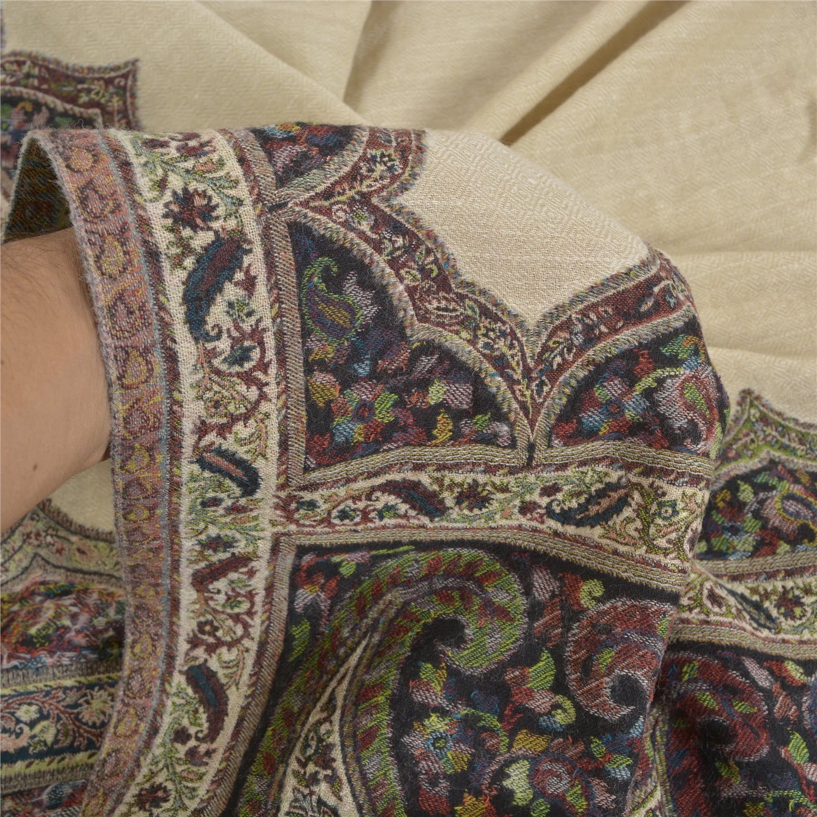 Beautiful Vintage ivory & black color 100% pure woolen stole/shawl which adorns woven work. Border part of shawl multi color woven work with lovely floral & paisley pattern. This cozy, warm and fuzzy stool is soft against skin due to the mellow woolen Sustainable Fabric. A truly gorgeous piece which will also make an admirable gift. 'International buyers please note: Import duties, taxes, and charges are not included in the item price or postage cost. These charges are the buyer's responsibility. Please check with your country's customs office to determine what these additional costs will be prior to bidding or buying. Buyer will pay custom duty/tax. It is calculated and charged differently by every country. As a seller I do not have any control over it. VAT or sales tax is calculated by the platform at the time of checkout. Customs charge is payable at the time of delivery.'