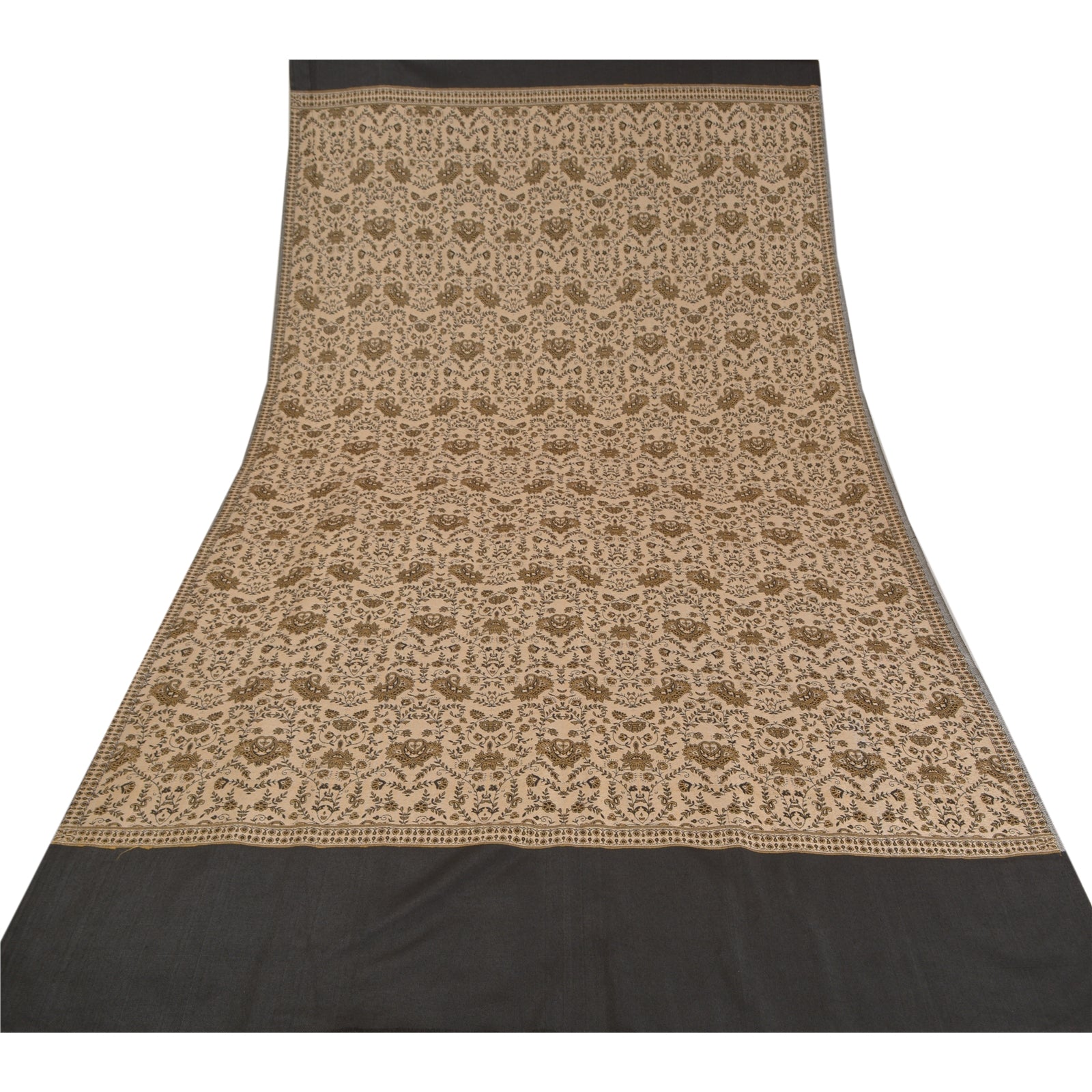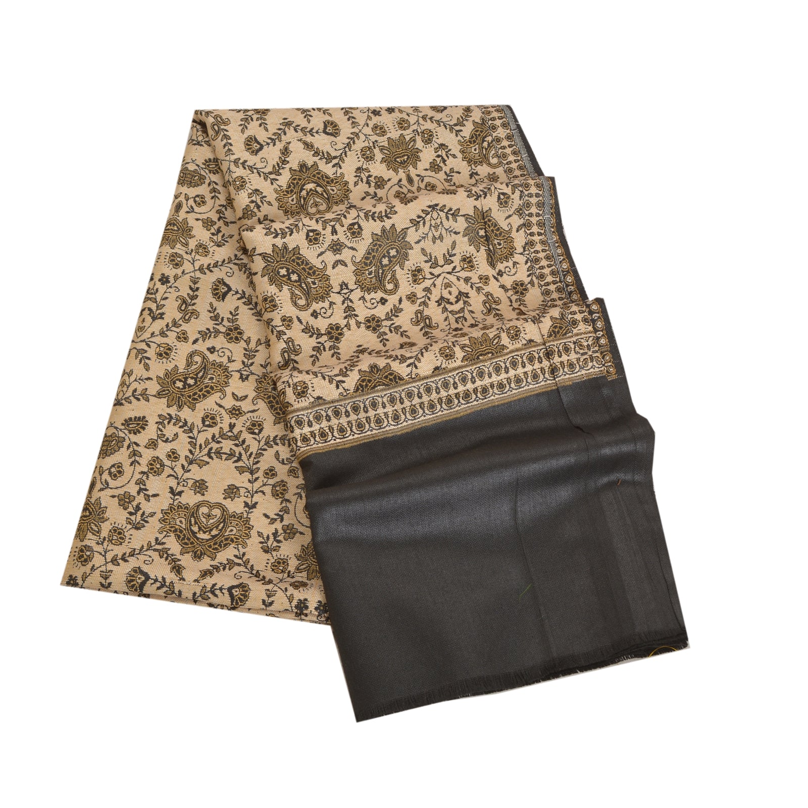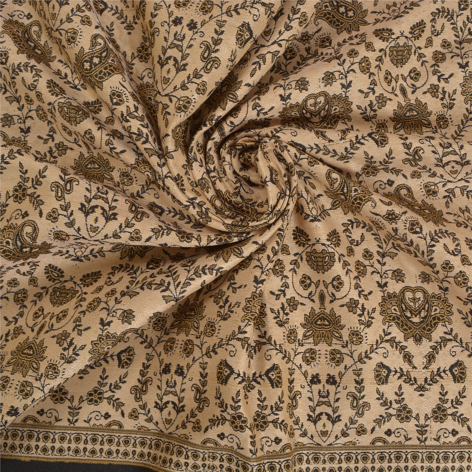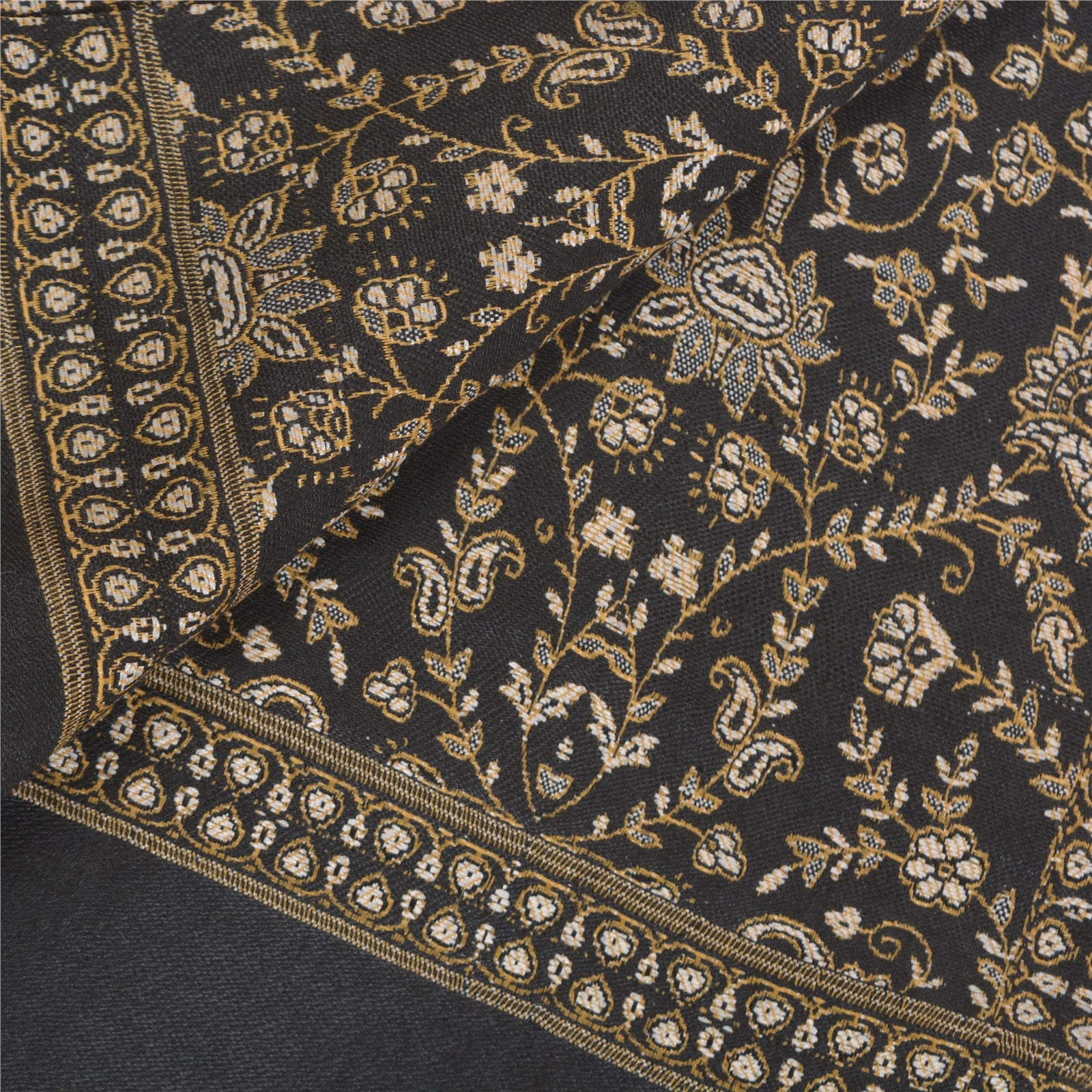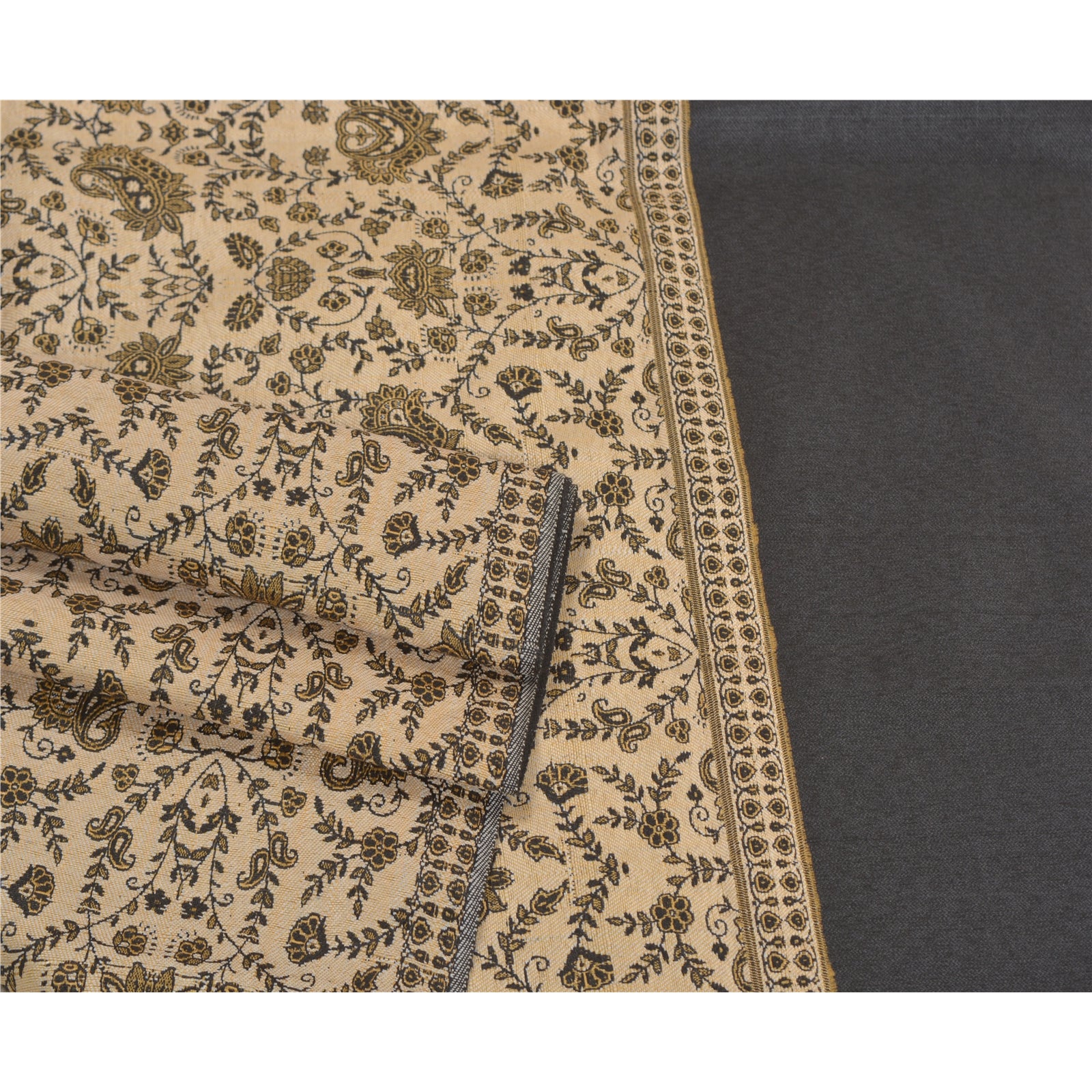Sanskriti Vintage Long Ivory Woolen Shawl Woven Scarf Throw Soft Floral Stole