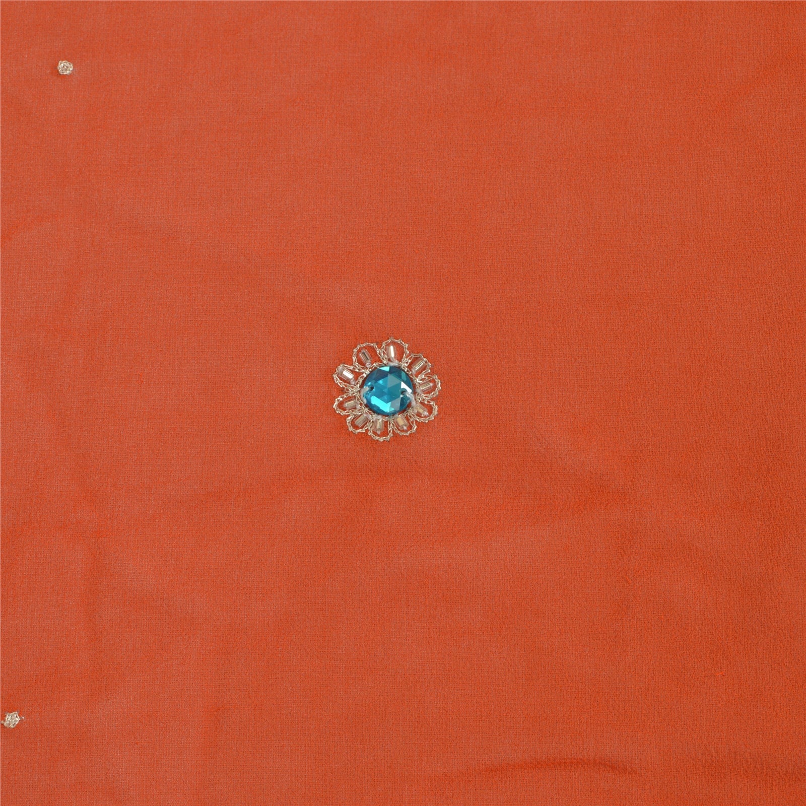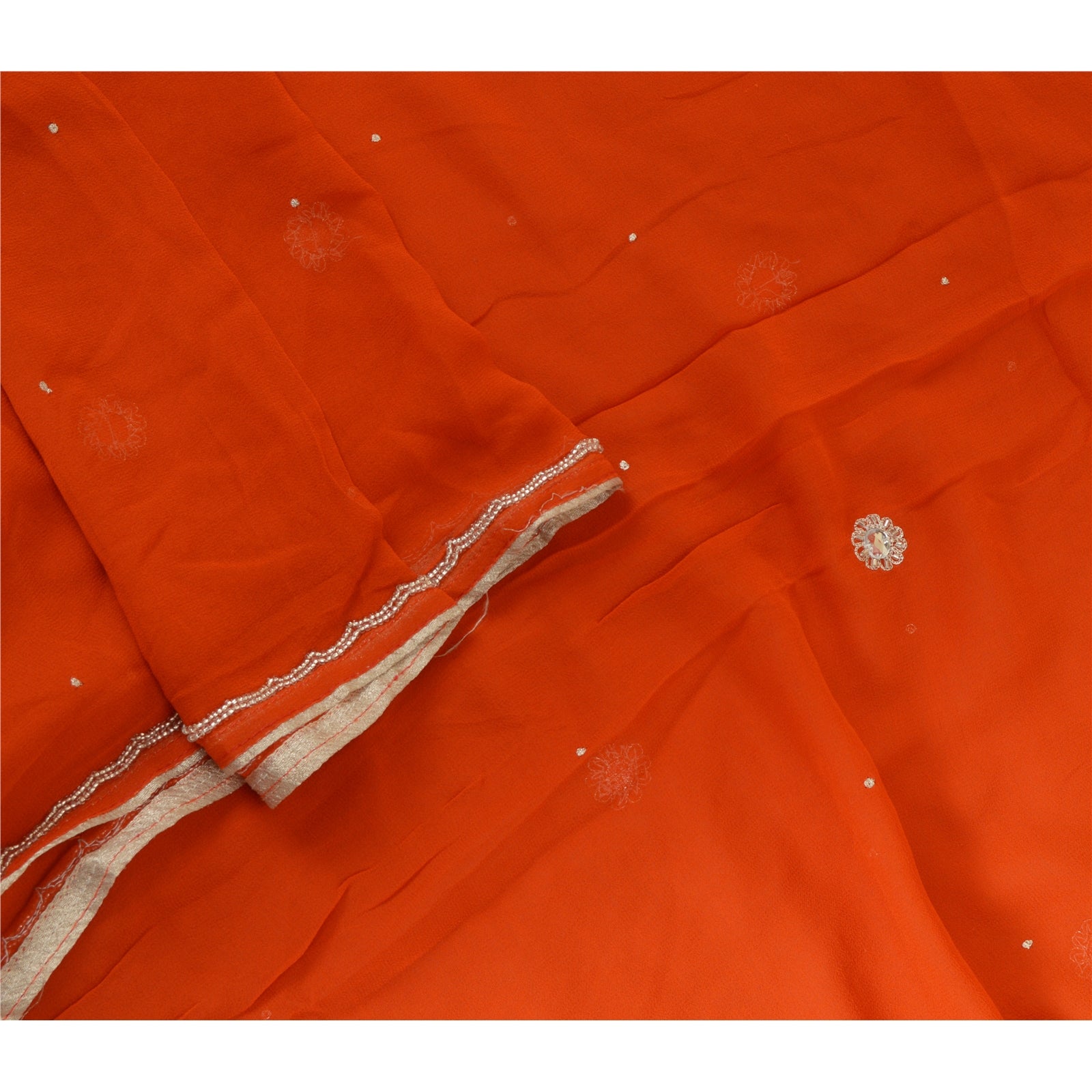 Sanskriti Vintage Long Orange Dupatta/Stole Pure Georgette Silk Hand Beaded Veil