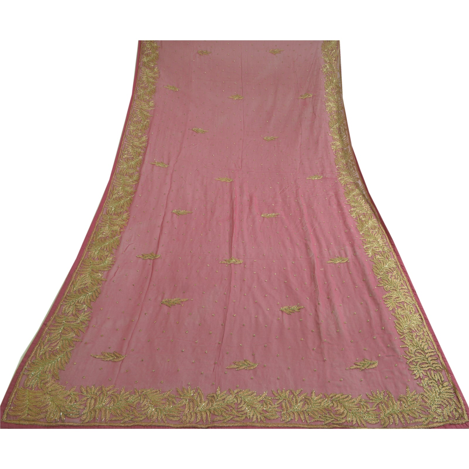 Sanskriti Vintage Long Pink Dupatta/Stole Pure Georgette Silk Hand Beaded Veil
