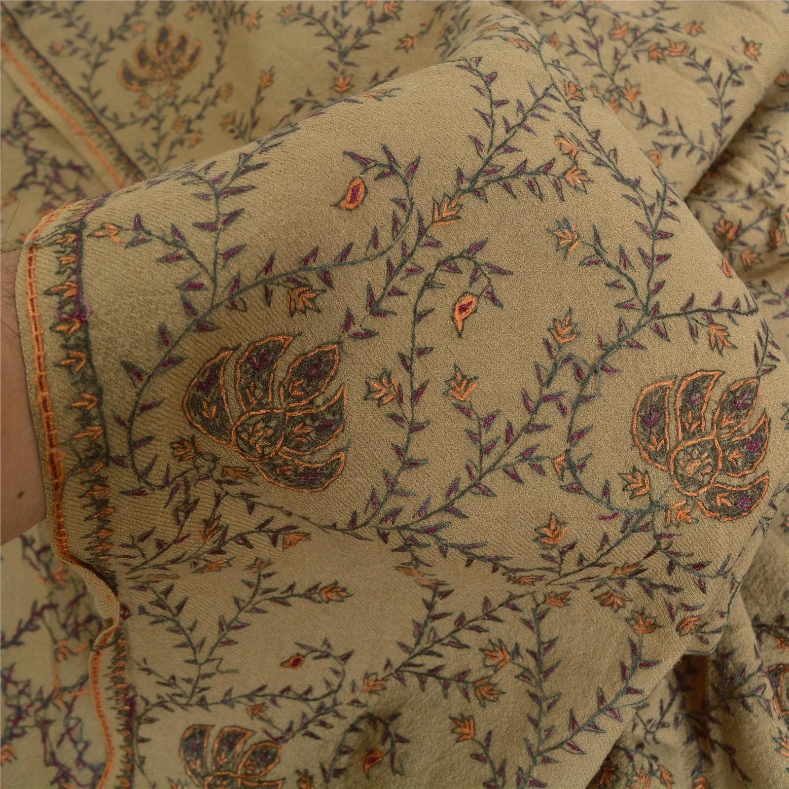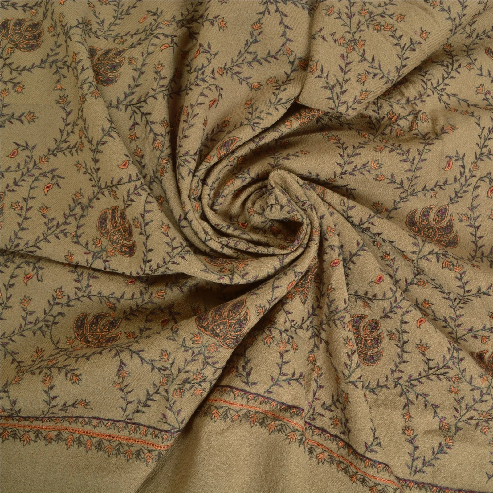 DESCRIPTION::We Are Offering You A Vintage Brown Color Pure Woolen Stole/Shawl Which Adorns Hand Embroidered Suzani Work.