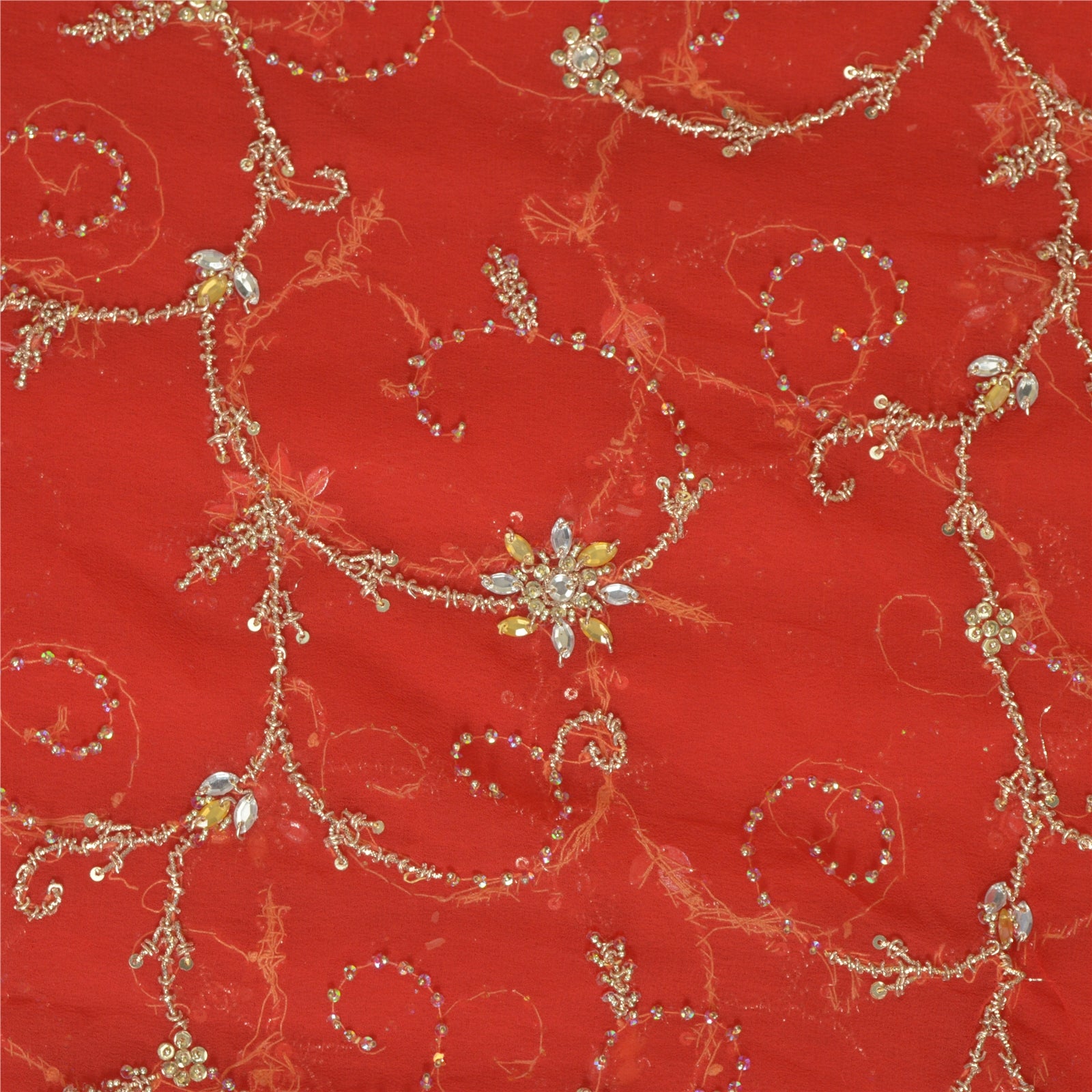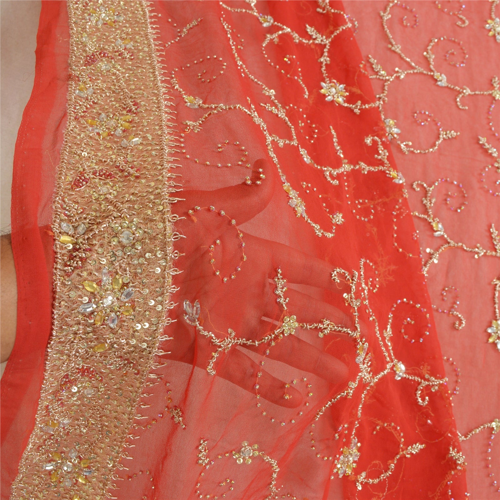 'THE ITEM COLOR OR SHADE MAY BE DARKER OR LIGHTER THAN THE PICTURE.' Stunning red colored pure georgette silk hand embroidered long scarf/dupatta. Center portion of the dupatta floral design with sequins & zardozi work. Border has floral design embroidered golden Sustainable Fabric patch work embellished with metallic golden zari/zardozi/dabka work, golden/red sequins, golden beads, white/cream rhinestones work is really enhancing beauty of the dupatta/stole. As the item is Vintage, some minor stains and defects are expected. This dupatta/stole can be used for various crafting ideas too. Use it for dress designing, as a throw, as window dressing, upholstery, table linen and much more. Let your creative juices flow. International buyers please note: Import duties, taxes, and charges are not included in the item price or postage cost. These charges are the buyer's responsibility. Please check with your country's customs office to determine what these additional costs will be prior to bidding or buying. Buyer will pay custom duty/tax. It is calculated and charged differently by every country. As a seller I do not have any control over it. VAT or sales tax is calculated by the platform at the time of checkout. Customs charge is payable at the time of delivery.'