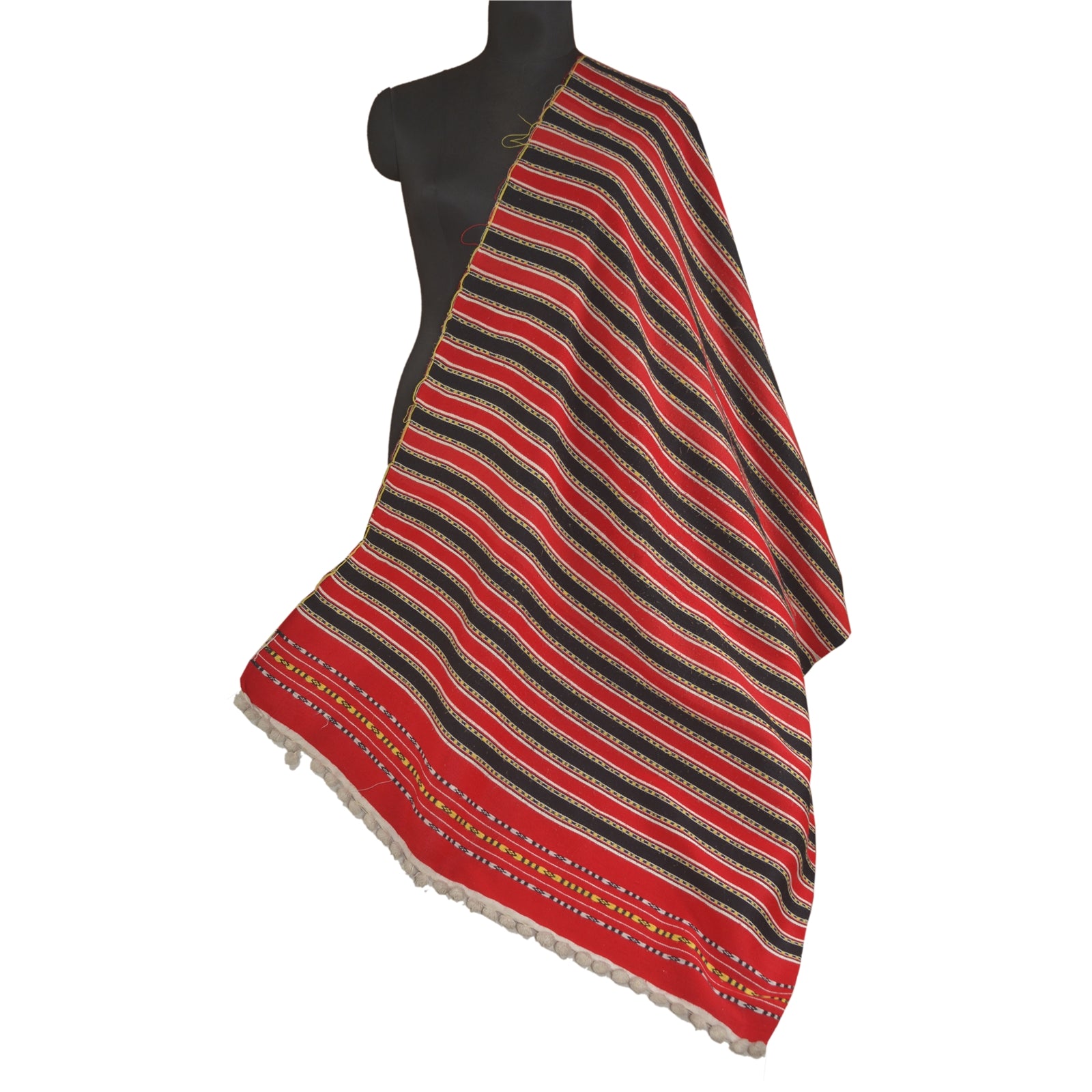 'THE ITEM COLOR OR SHADE MAY BE DARKER OR LIGHTER THAN THE PICTURE.' Beautiful Vintage red & black coloured woolen (not pure wool) stole/shawl which adorns hand-woven work. All over shawl has multi color thread work with floral pattern. Shawl has matching pom- pom work on both ends of borders. This cozy, warm and fuzzy stool is soft against skin due to the mellow woolen Sustainable Fabric. A truly gorgeous piece which will also make an admirable gift. 'International buyers please note: Import duties, taxes, and charges are not included in the item price or postage cost. These charges are the buyer's responsibility. Please check with your country's customs office to determine what these additional costs will be prior to bidding or buying. Buyer will pay custom duty/tax. It is calculated and charged differently by every country. As a seller I do not have any control over it. VAT or sales tax is calculated by the platform at the time of checkout. Customs charge is payable at the time of delivery.'