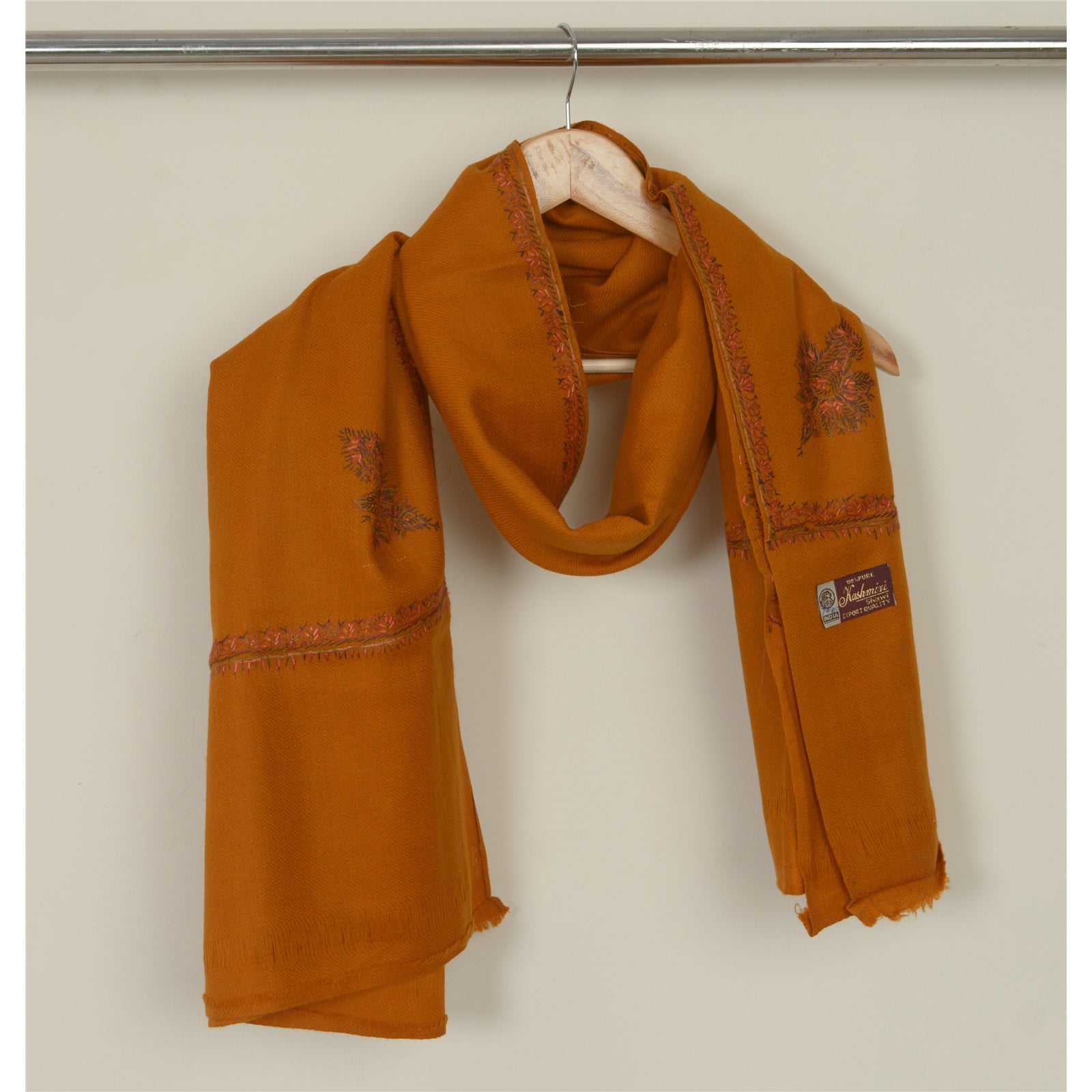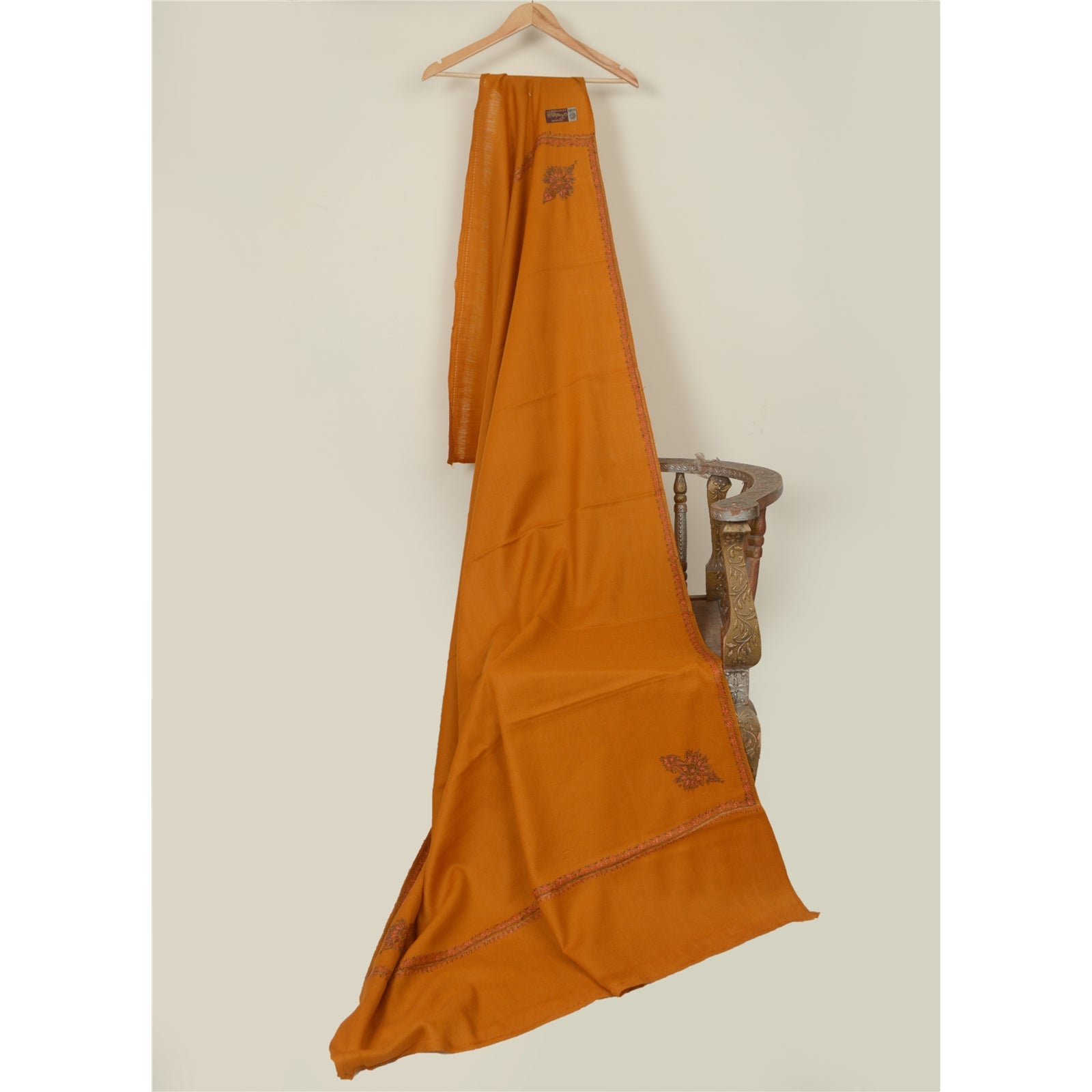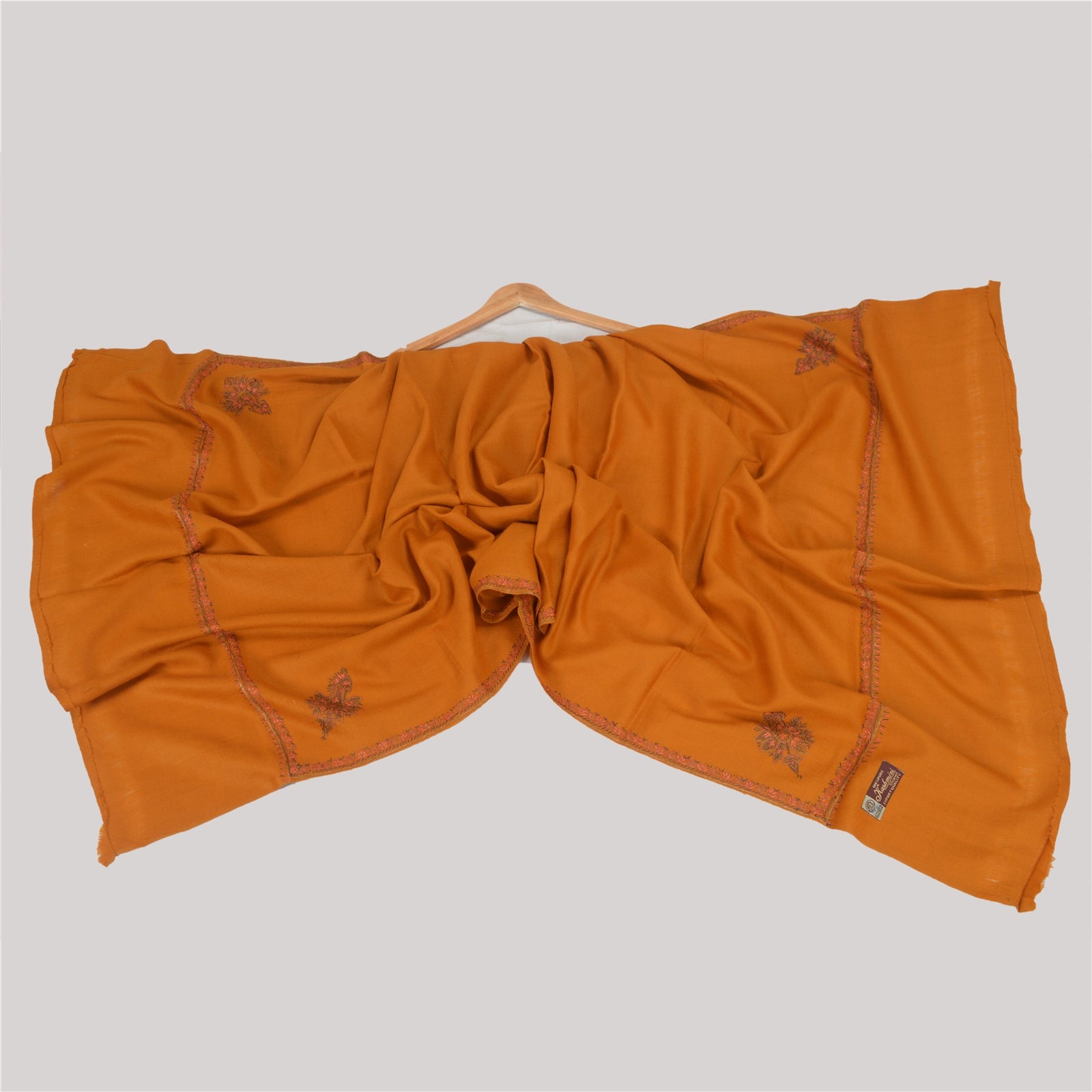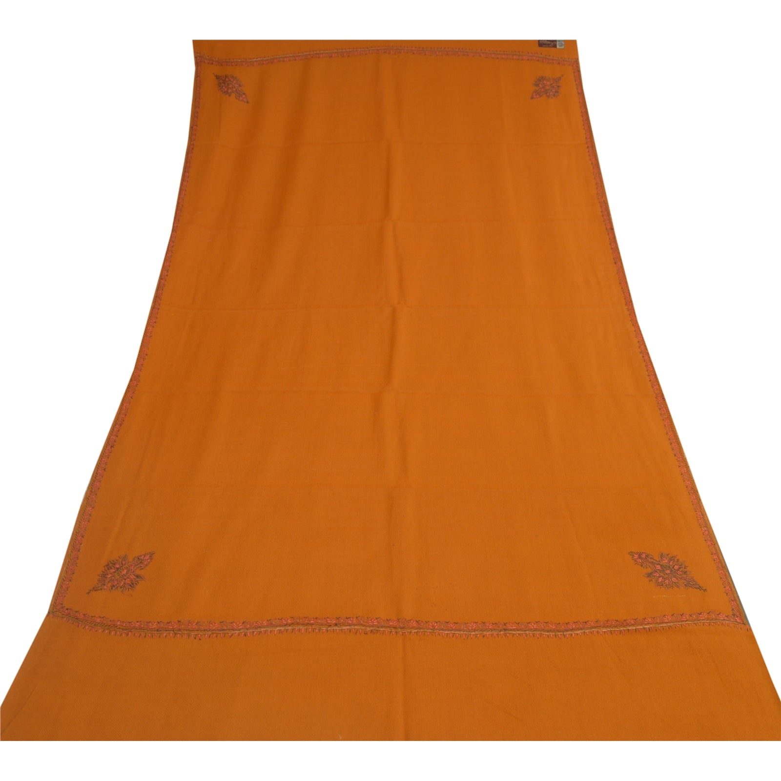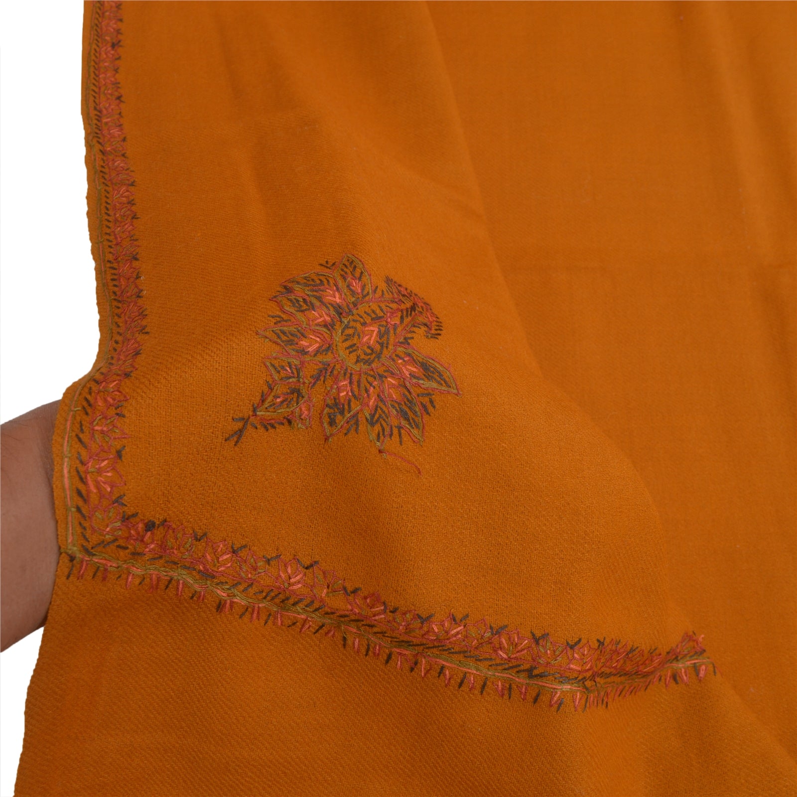 Sanskriti Vintage Long Saffron Pure Woolen Shawl Handmade Suzani Scarf Stole
