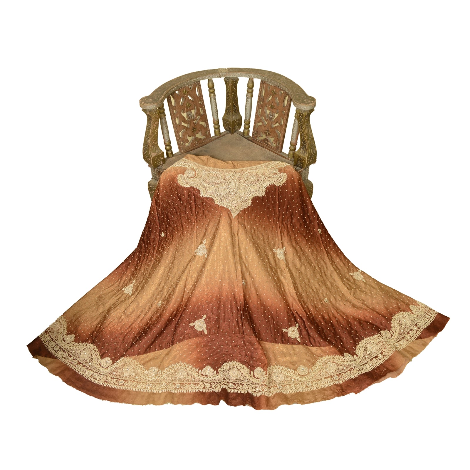 'THE ITEM COLOR OR SHADE MAY BE DARKER OR LIGHTER THAN THE PICTURE.' Sanskriti offers this vintage shade of brown & maroon color Unstitched long skirt made with 100% Pure Satin Silk. Antique very heavy hand embroidered skirt. It is fully covered with brown/maroon woven work. Bottom of the skirt has pure metallic golden zardozi/dabka work, white ad stone work. It is a Unstitched skirt with a length of 38 inch and flare of the skirt is 156 inch. Flaunt this heavy skirt with ethnic tops, blouses or kurtis at parties, weddings and other occasions. Antique work skirt with beautiful craftsmanship which I am sure you will truly appreciate. The quality of zardozi work is amazing, its a pure metallic zari. Some zardozi work gives an antique look. International buyers please note: Import duties, taxes, and charges are not included in the item price or postage cost. These charges are the buyer's responsibility. Please check with your country's customs office to determine what these additional costs will be prior to bidding or buying. Buyer will pay custom duty/tax. It is calculated and charged differently by every country. As a seller I do not have any control over it. VAT or sales tax is calculated by the platform at the time of checkout. Customs charge is payable at the time of delivery.'