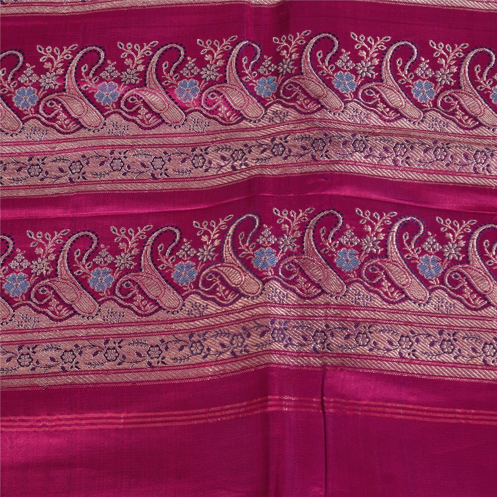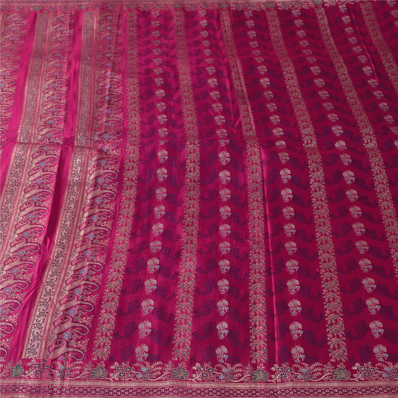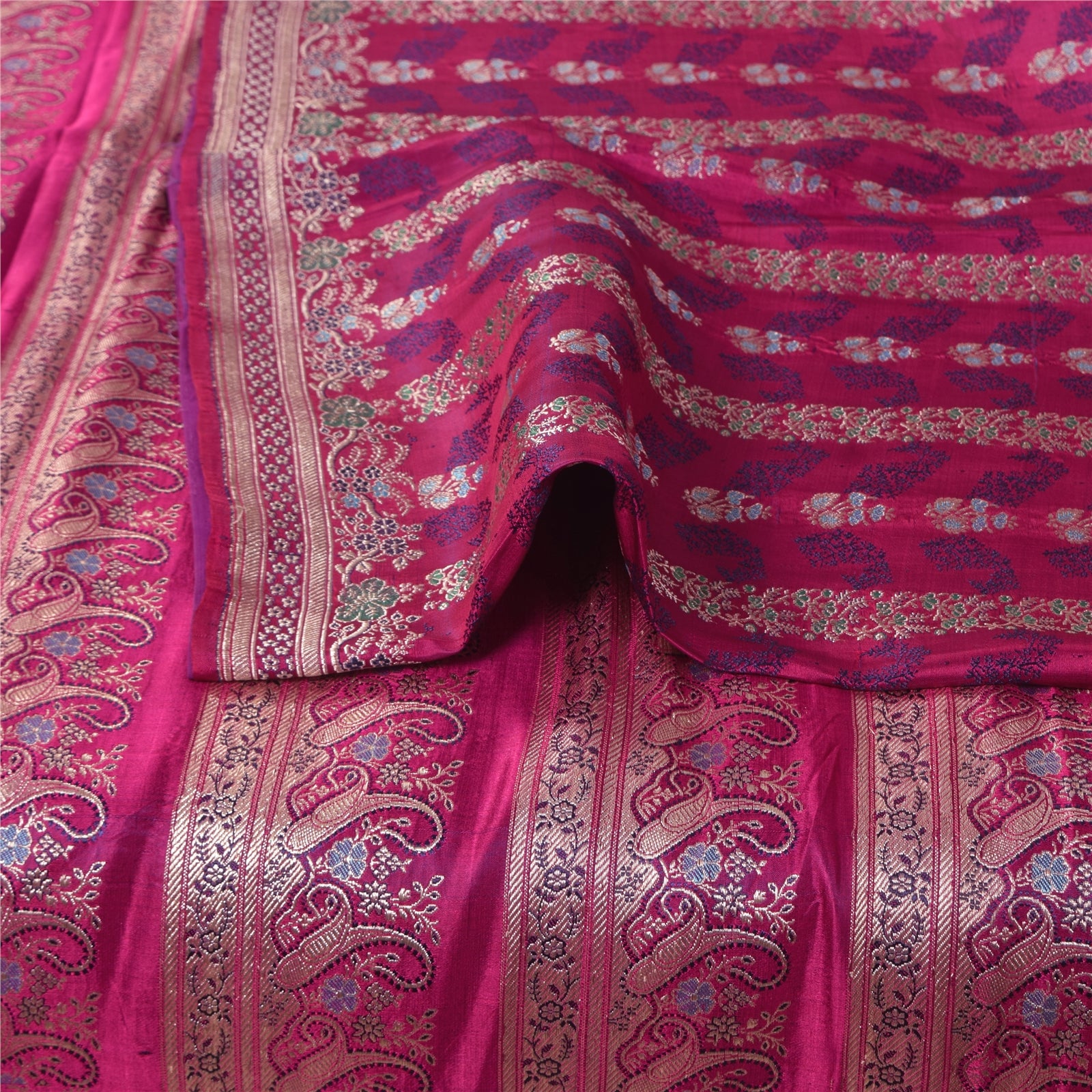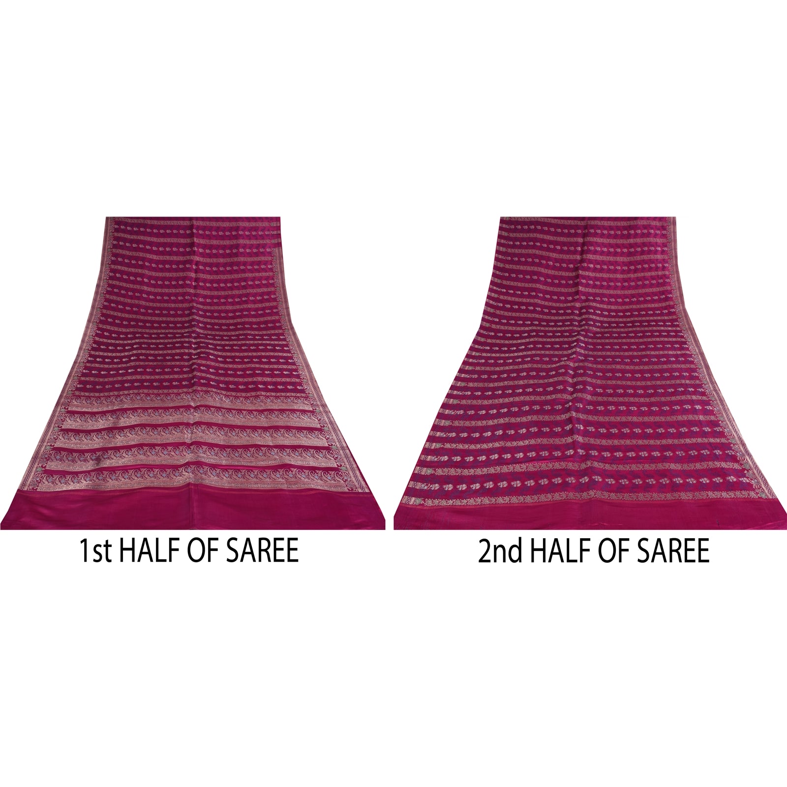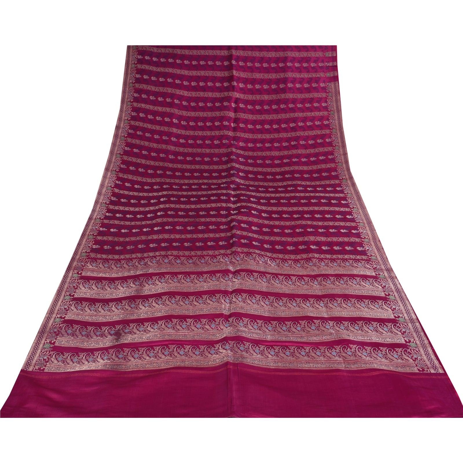 Sanskriti Vintage Magenta Sarees Pure Satin Silk Woven Banarasi Brocade Sari Craft Sustainable Fabric