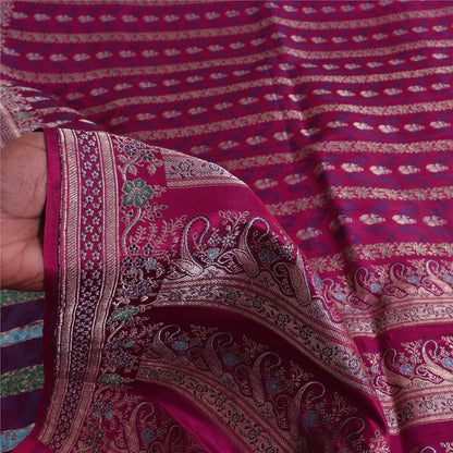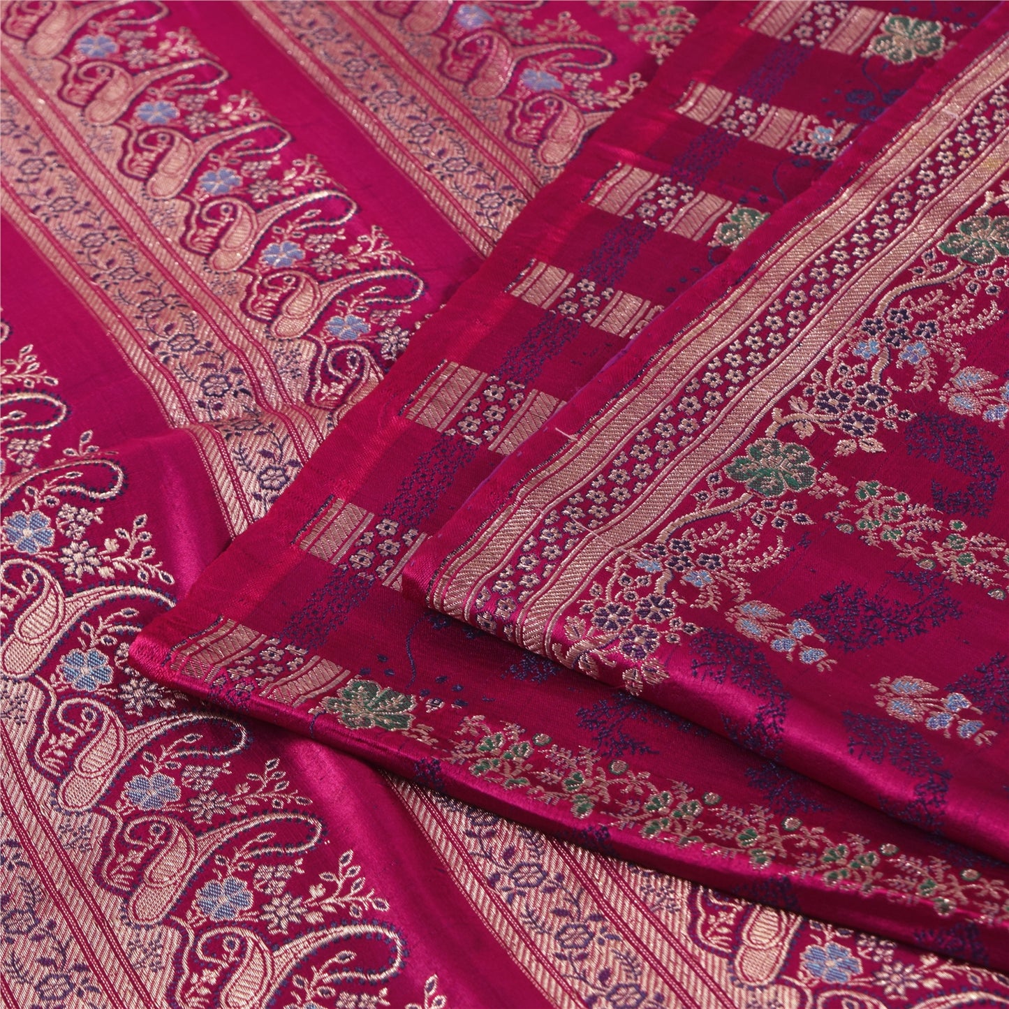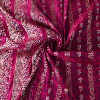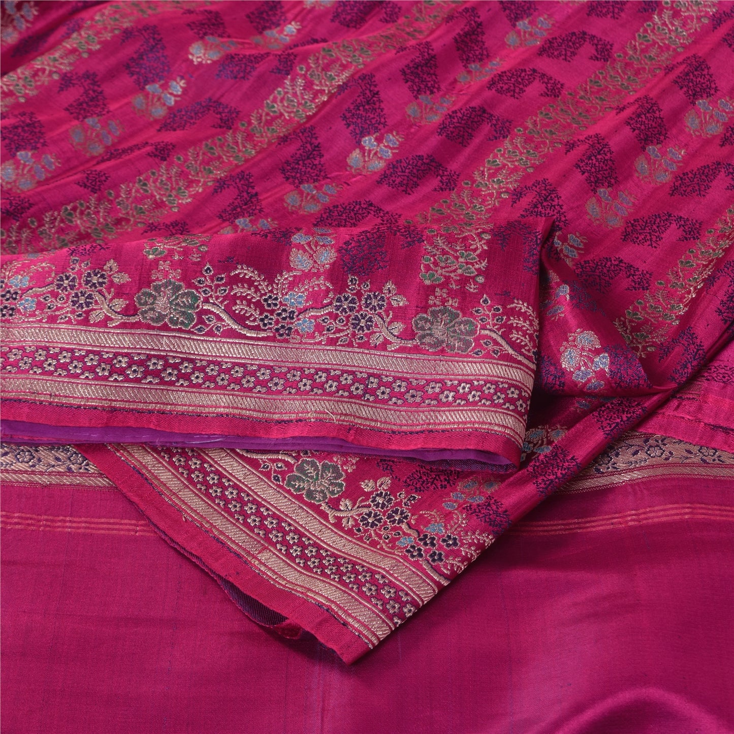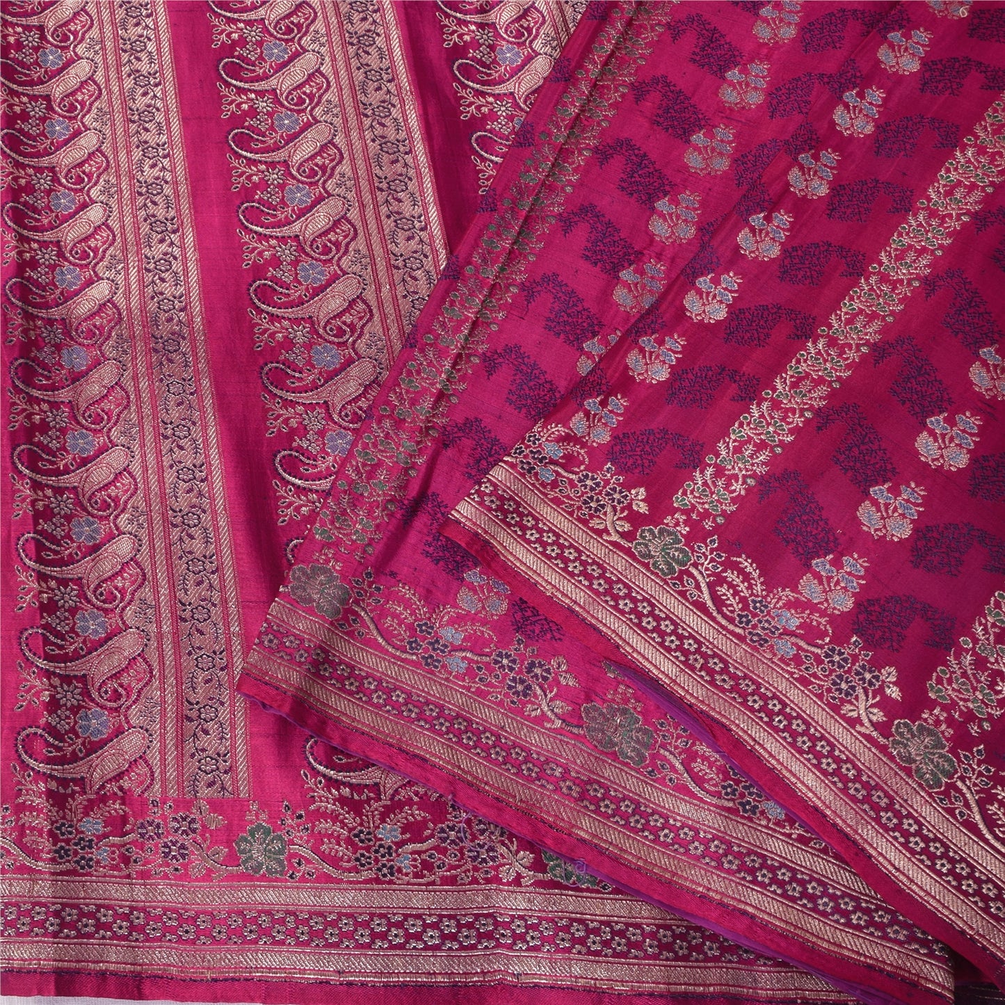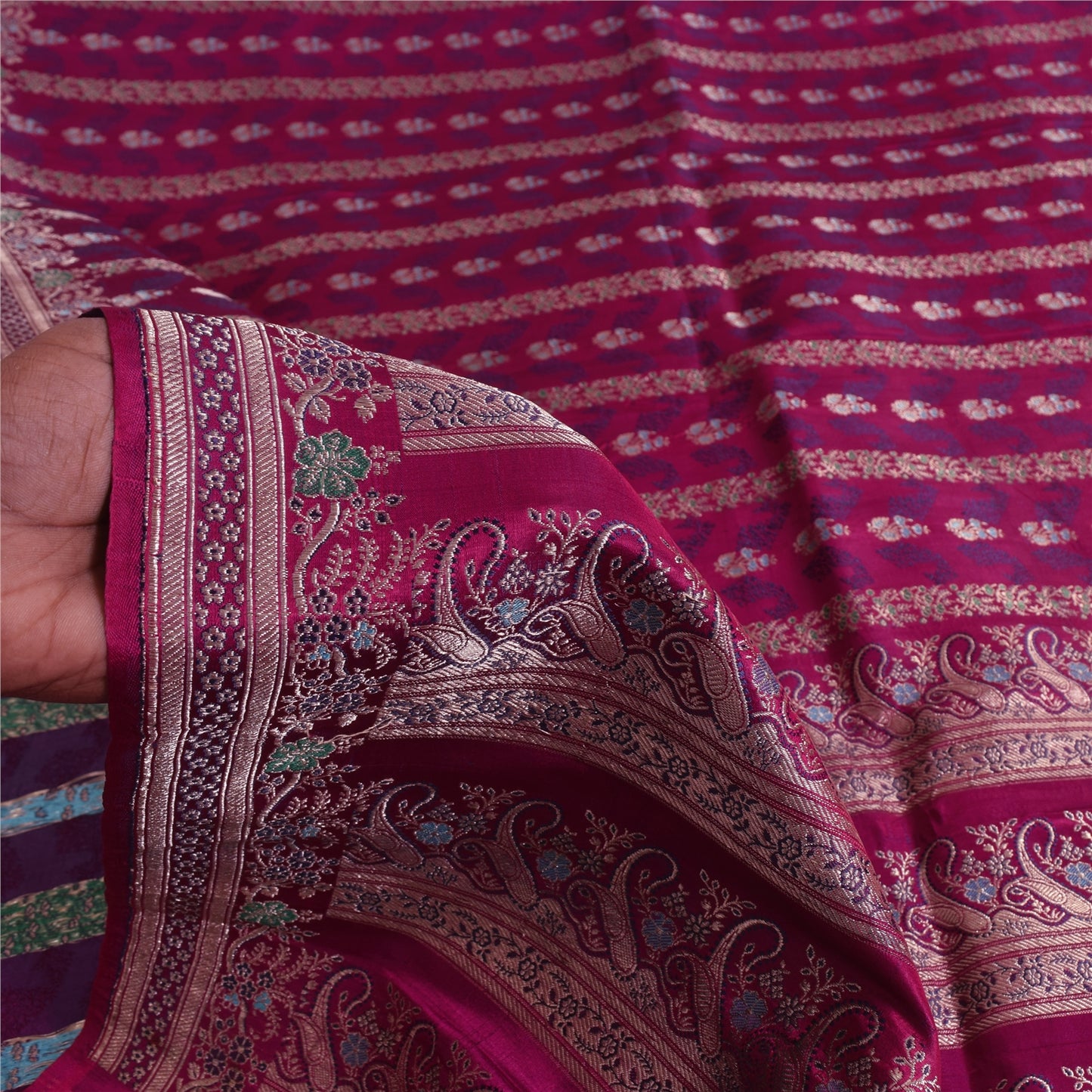 Sanskriti Vintage Magenta Sarees Pure Satin Silk Woven Banarasi Brocade Sari Craft Sustainable Fabric