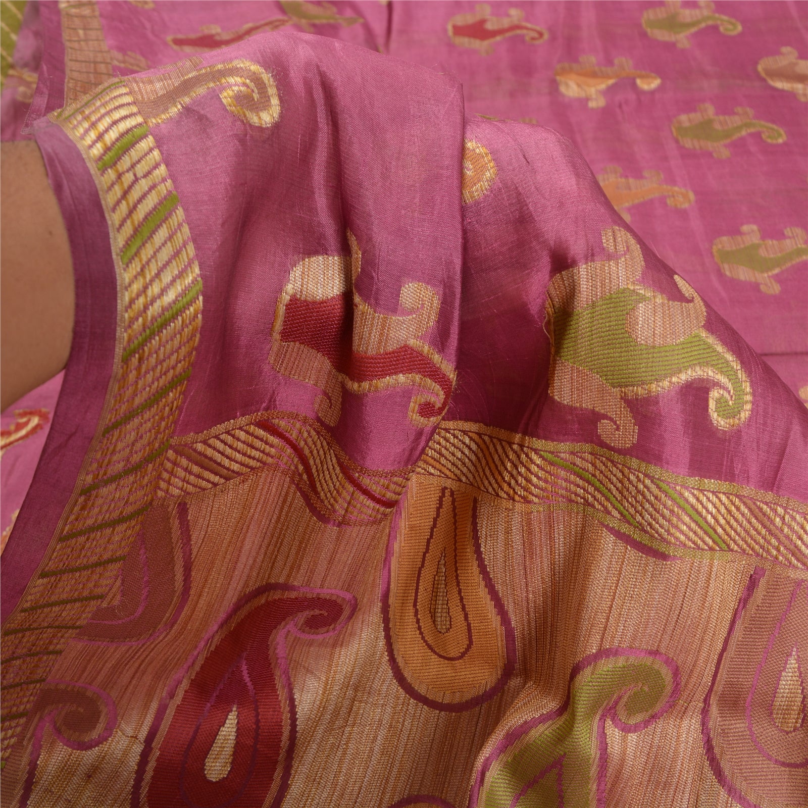 Sanskriti Vintage Mauve Indian Sarees 100% Pure Silk Woven Sari Craft Sustainable Fabric