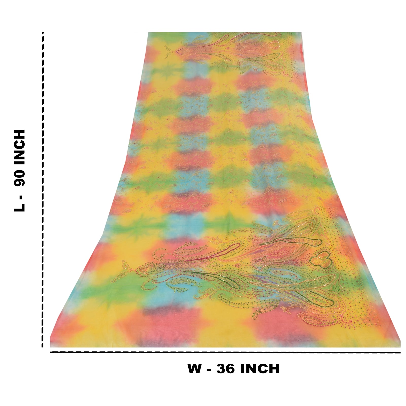 Sanskriti Vintage Multi Dupatta Long Stole Art Silk Hand Beaded Tie-Dye Scarves