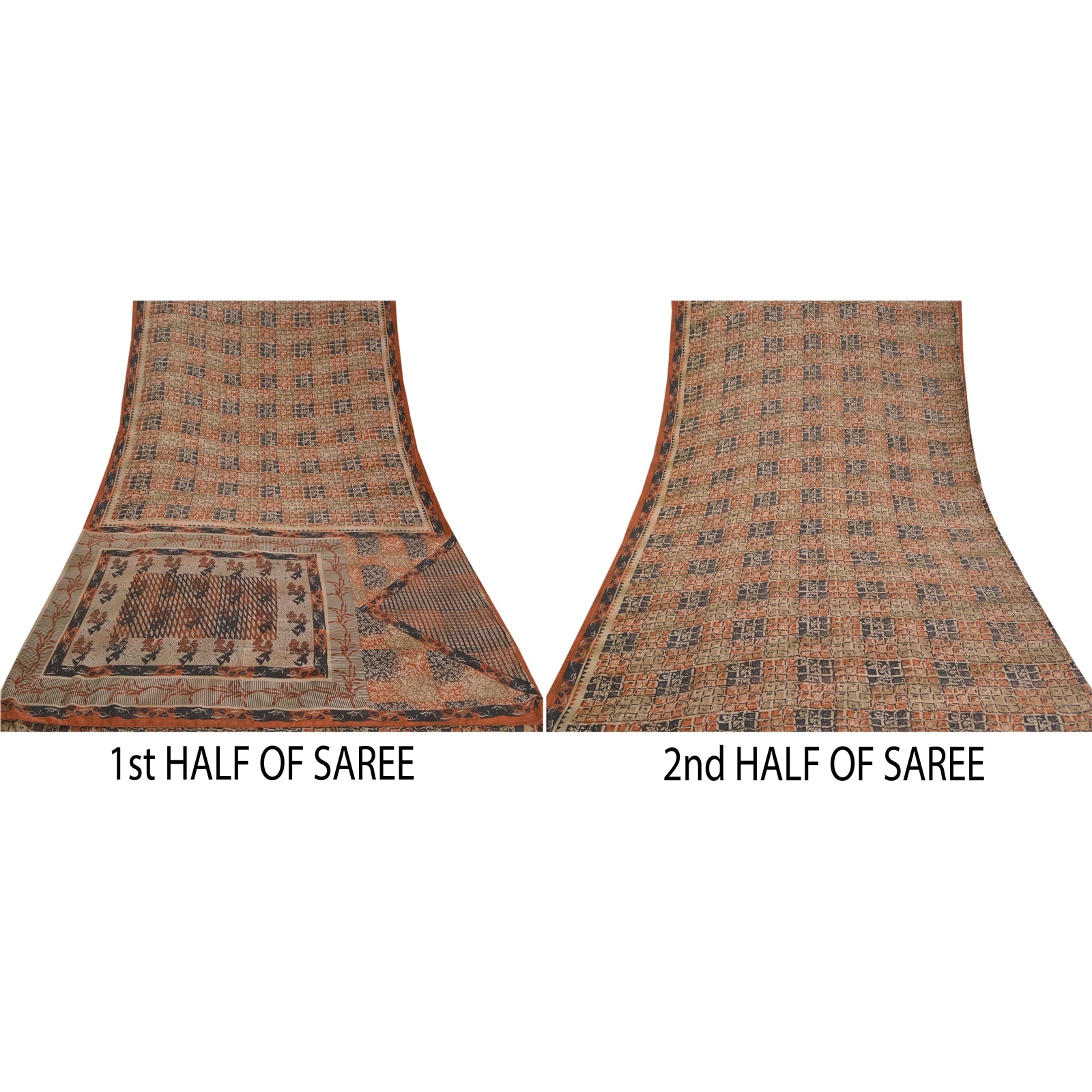 Sanskriti Vintage Multi Indian Sarees Pure Crepe Silk Printed Sari Craft Sustainable Fabric
