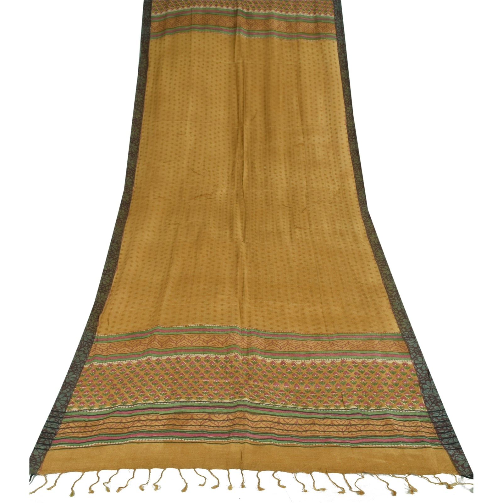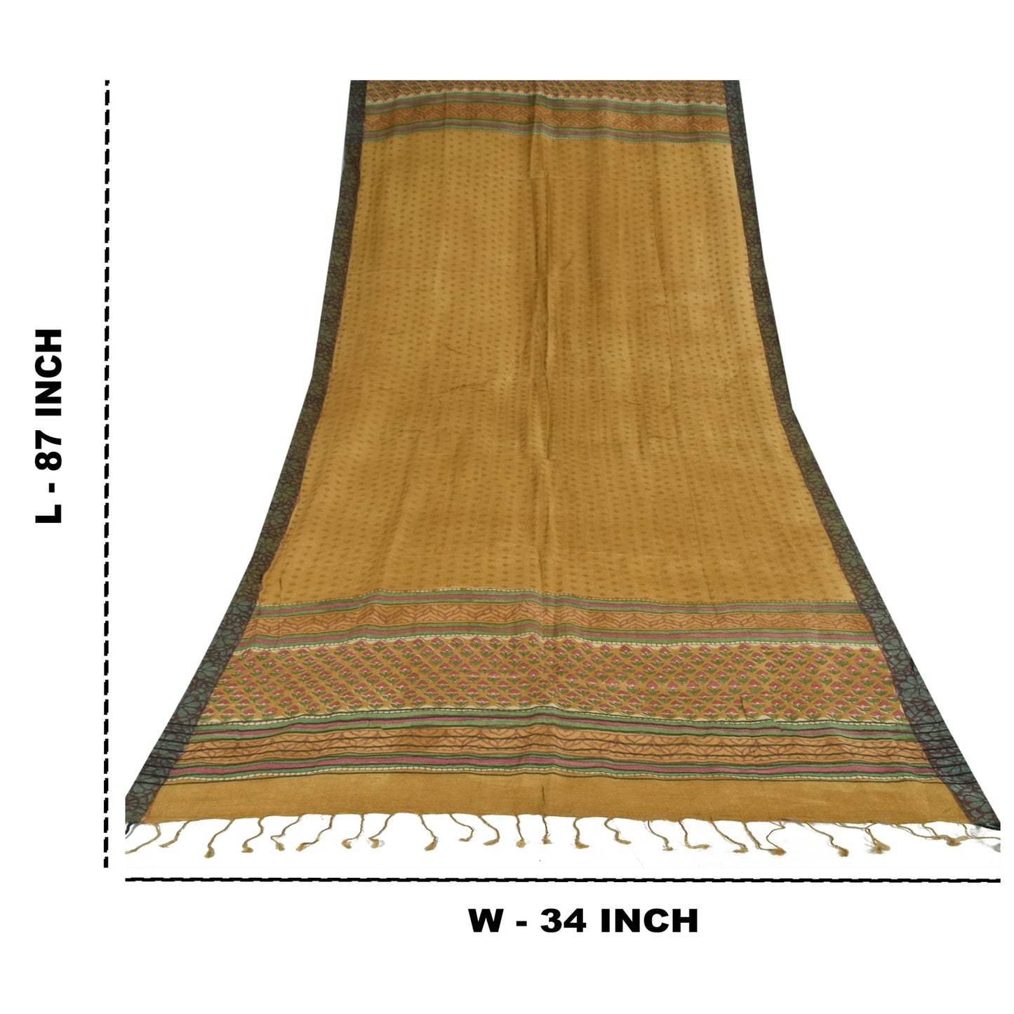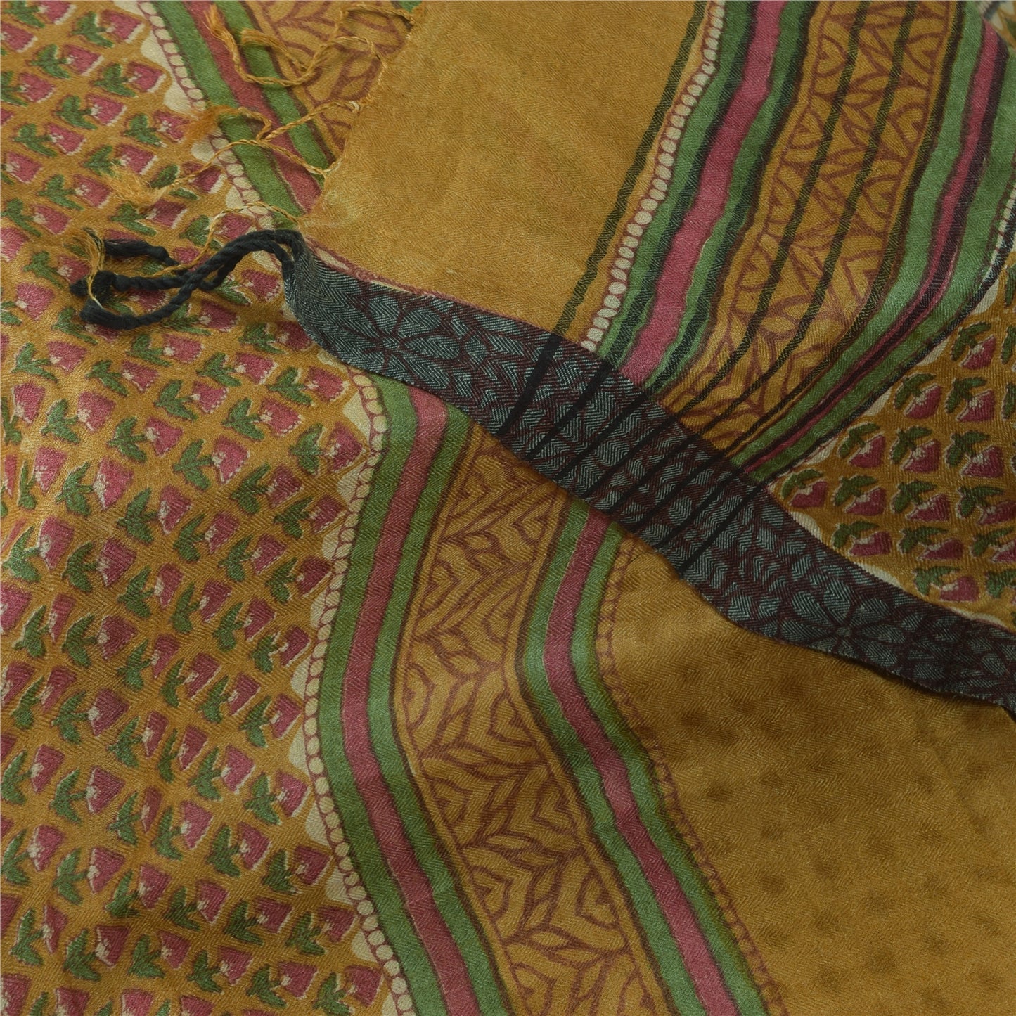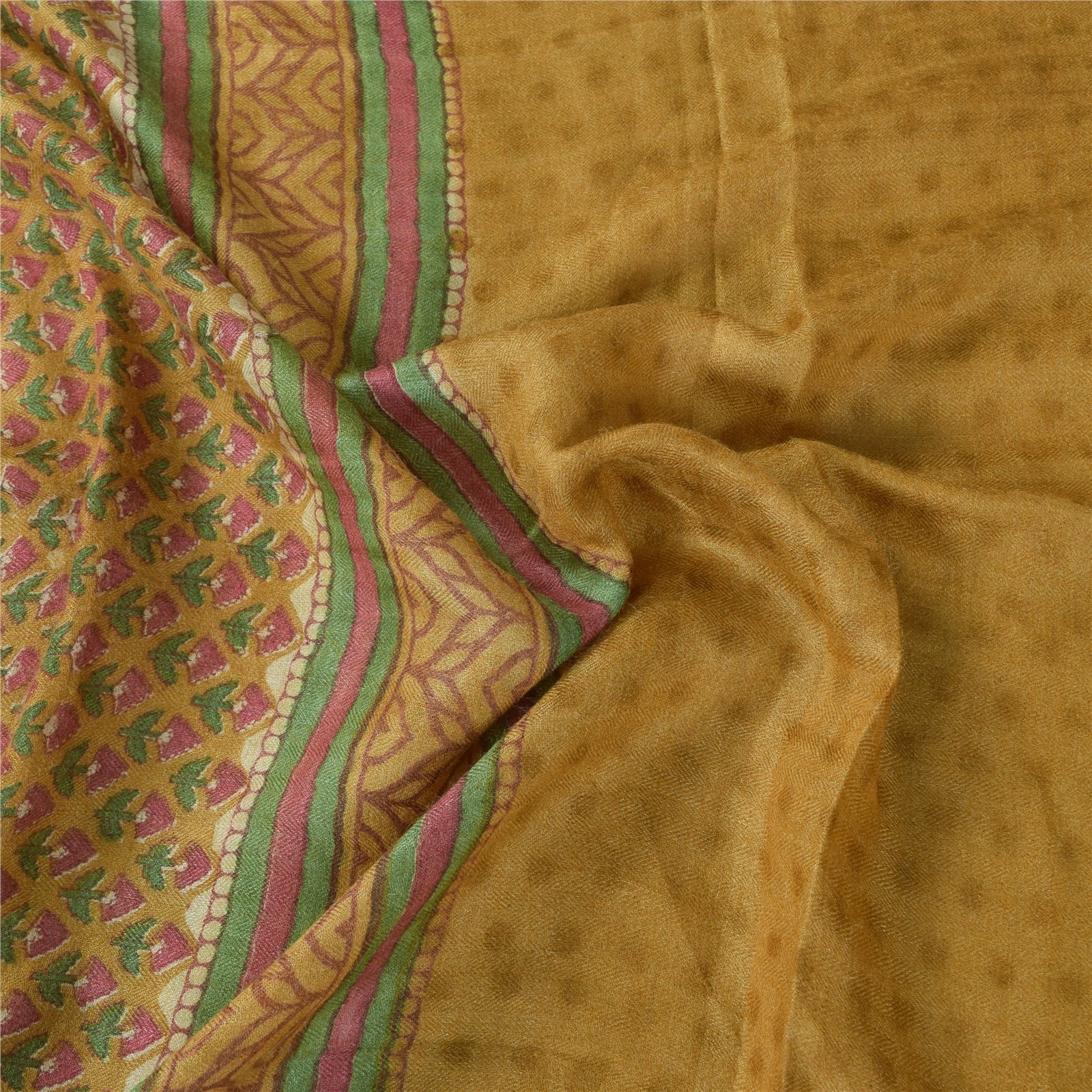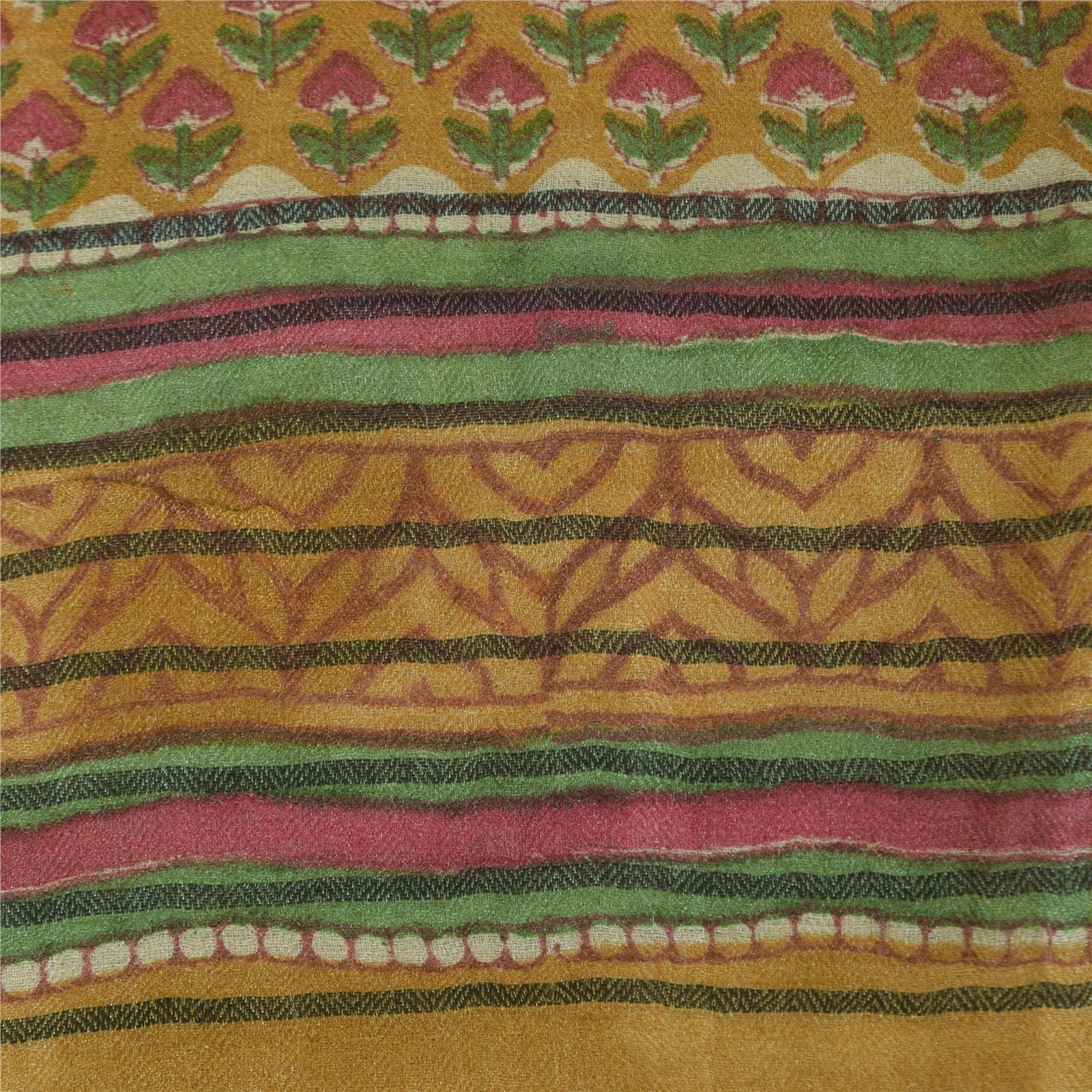 Sanskriti Vintage Mustard Dupatta Long Stole Pure Woolen Woven Printed Wrap Veil