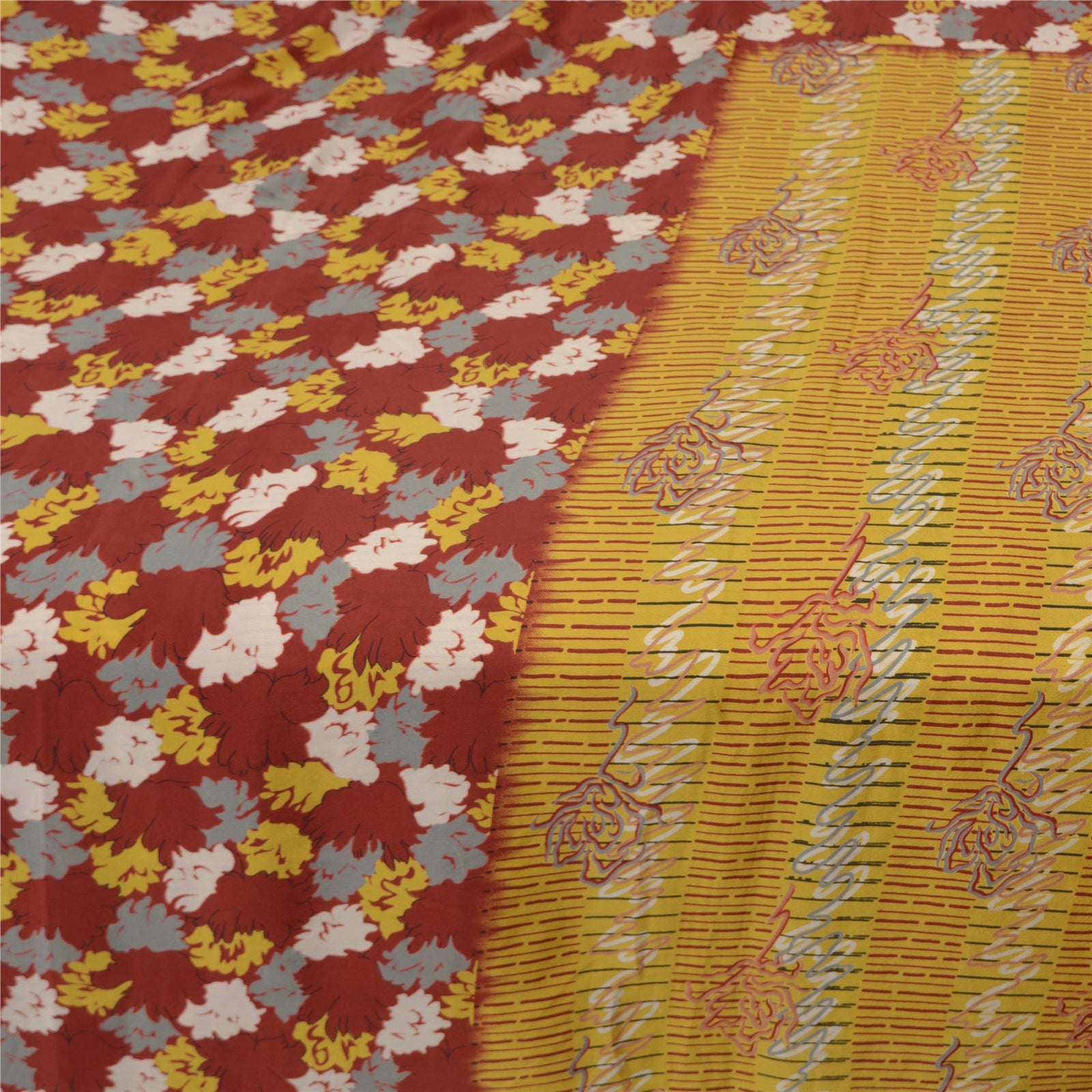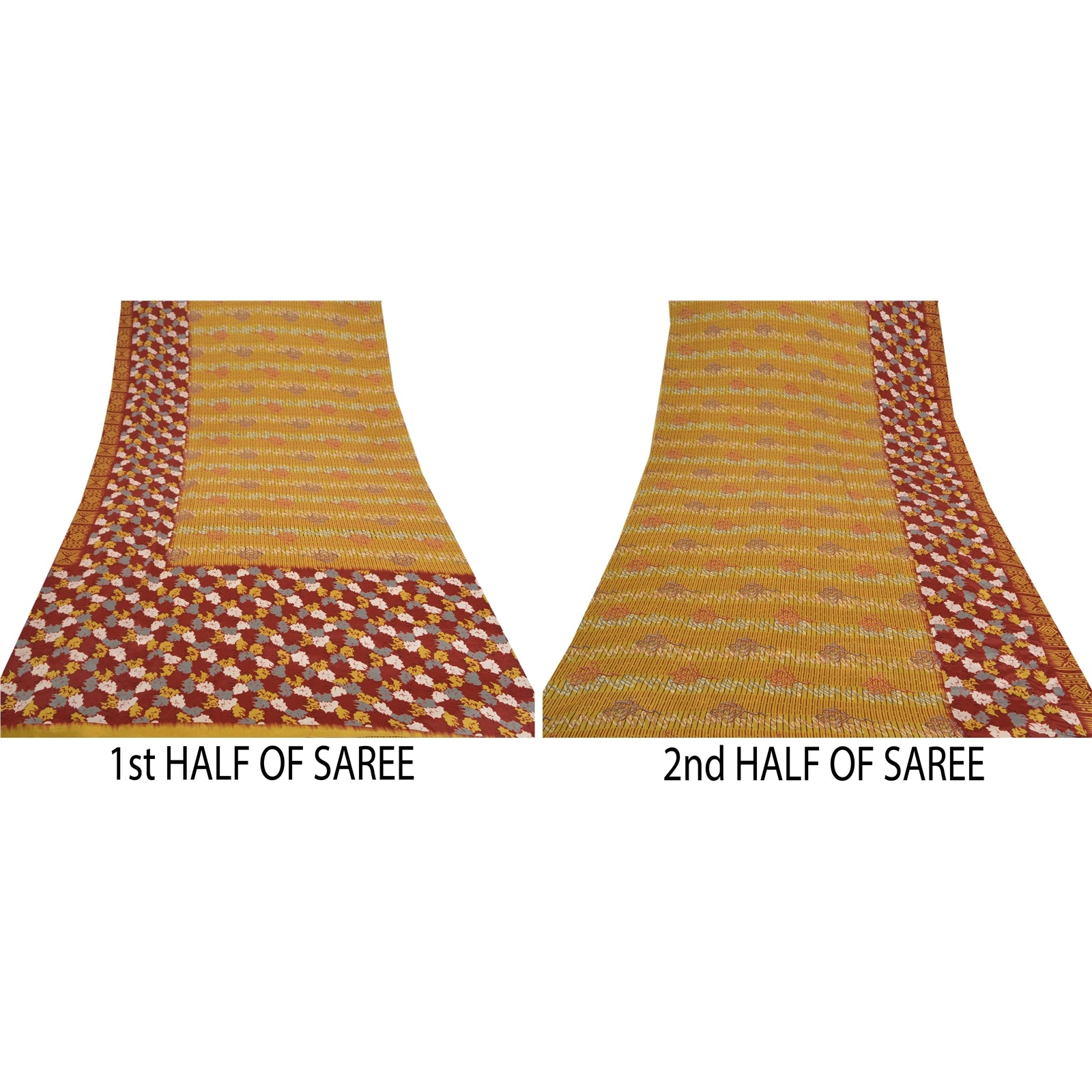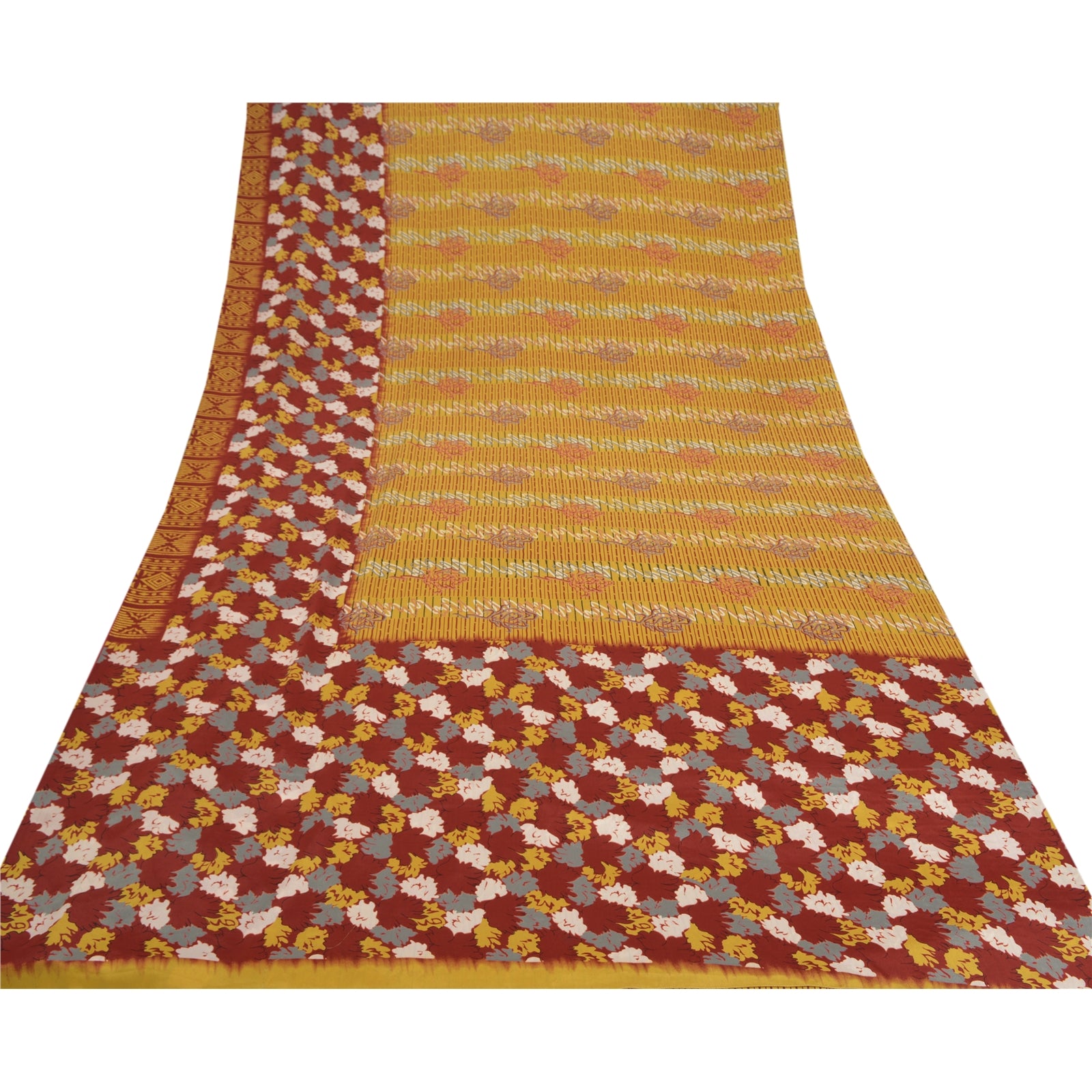 Sanskriti Vintage Mustard Sarees Moss Crepe Floral Printed Craft Sustainable Fabric Sari