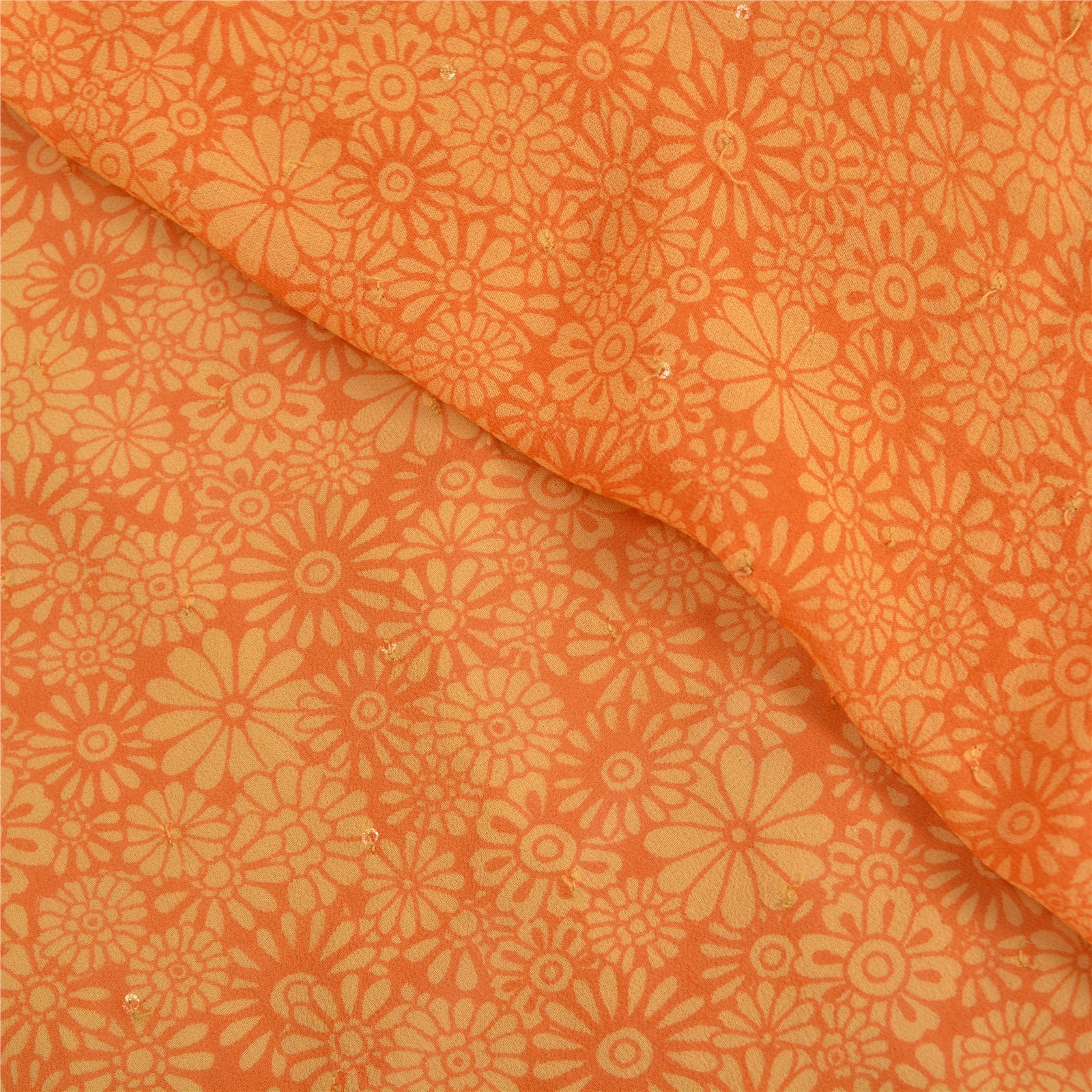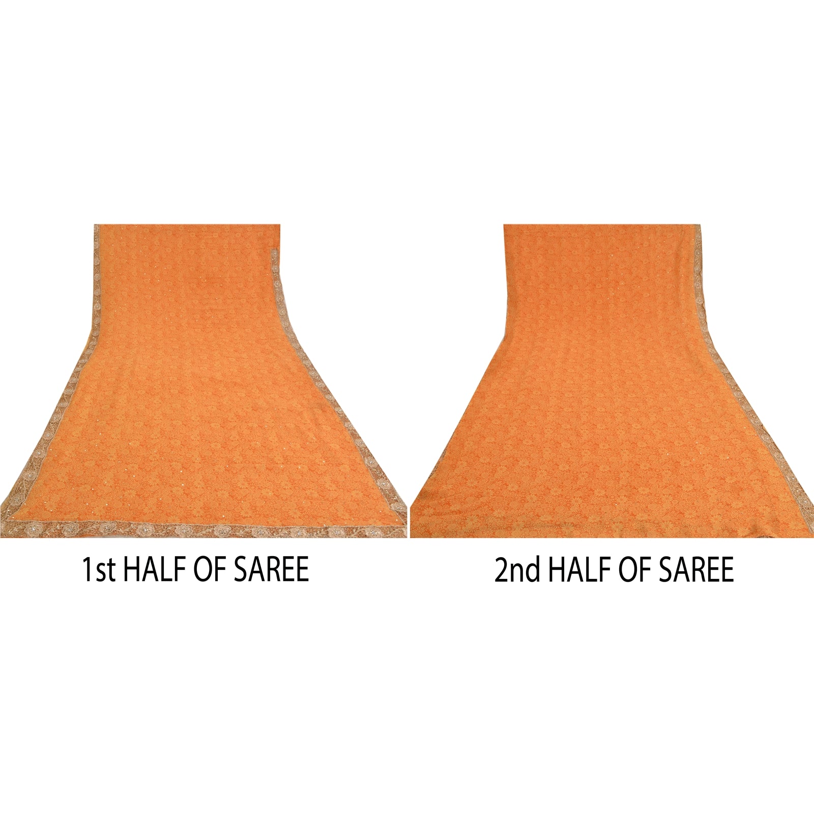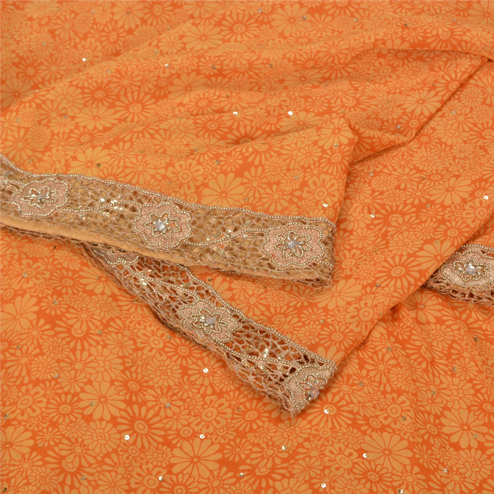 'THE ITEM COLOR OR SHADE MAY BE DARKER OR LIGHTER THAN THE PICTURE.' Beautiful orange colored pure georgette silk hand embroidered printed sari. Border has golden zari floral design, golden beads/sequins, white rhinestones with cut work. The center of the saree has printed floral design with sequins work. This saree can be used for various crafting ideas too. Use it for dress designing, as a throw, as window dressing, upholstery, table linen and much more. Let your creative juices flow. 'International buyers please note: Import duties, taxes, and charges are not included in the item price or postage cost. These charges are the buyer's responsibility. Please check with your country's customs office to determine what these additional costs will be prior to bidding or buying. Buyer will pay custom duty/tax. It is calculated and charged differently by every country. As a seller I do not have any control over it. VAT or sales tax is calculated by the platform at the time of checkout. Customs charge is payable at the time of delivery.'