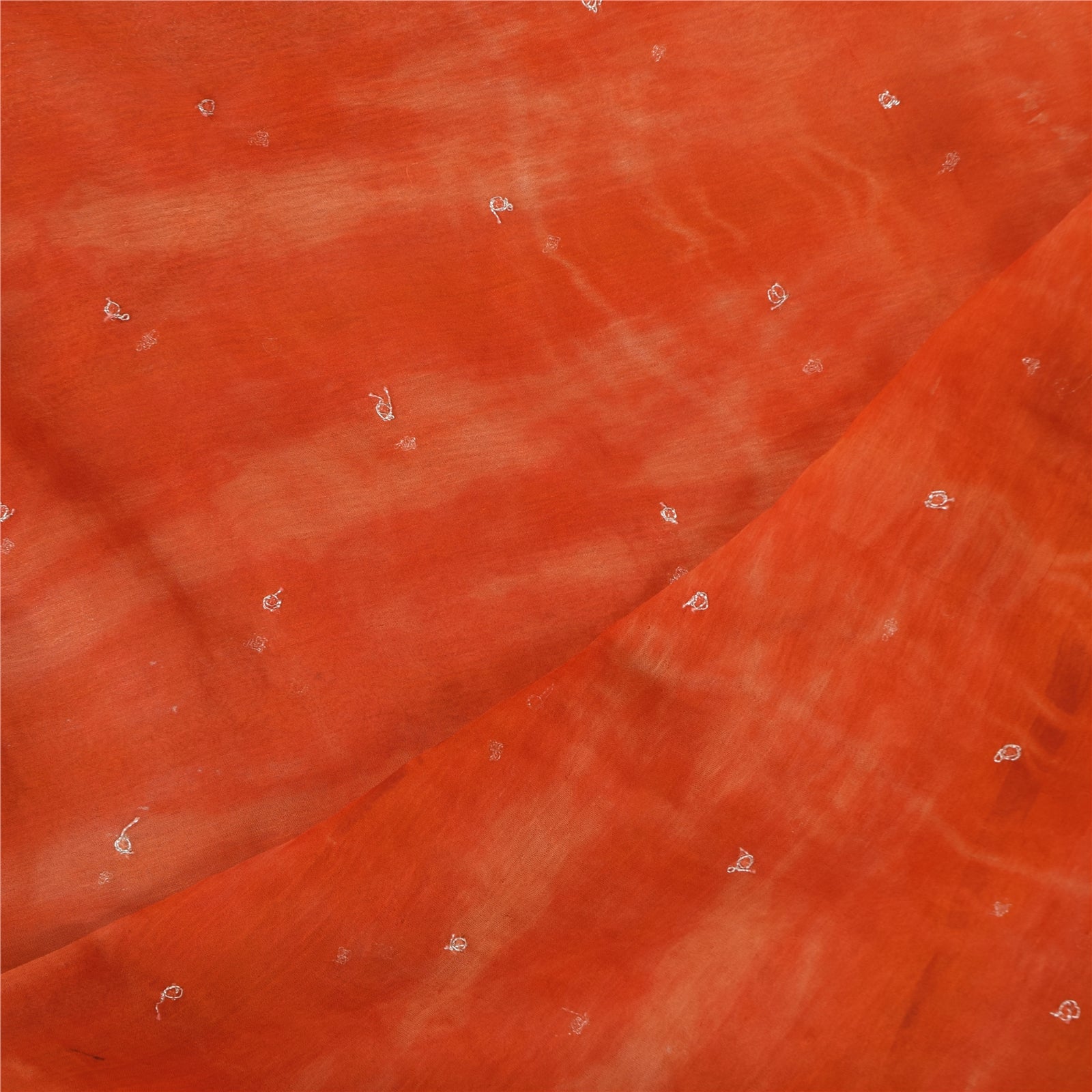 Sanskriti Vintage Orange Dupatta Long Stole Pure Chiffon Hand Embroidered Hijab